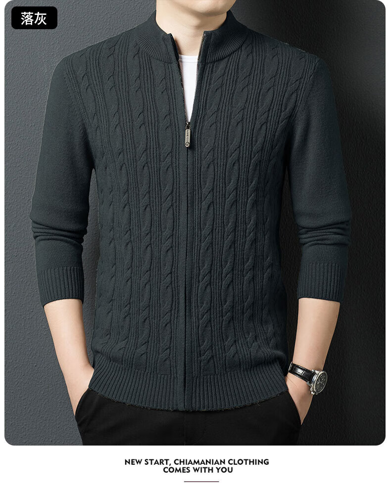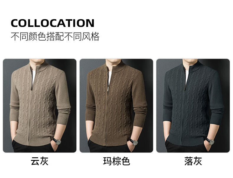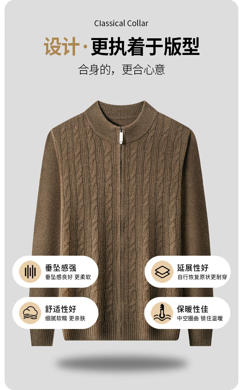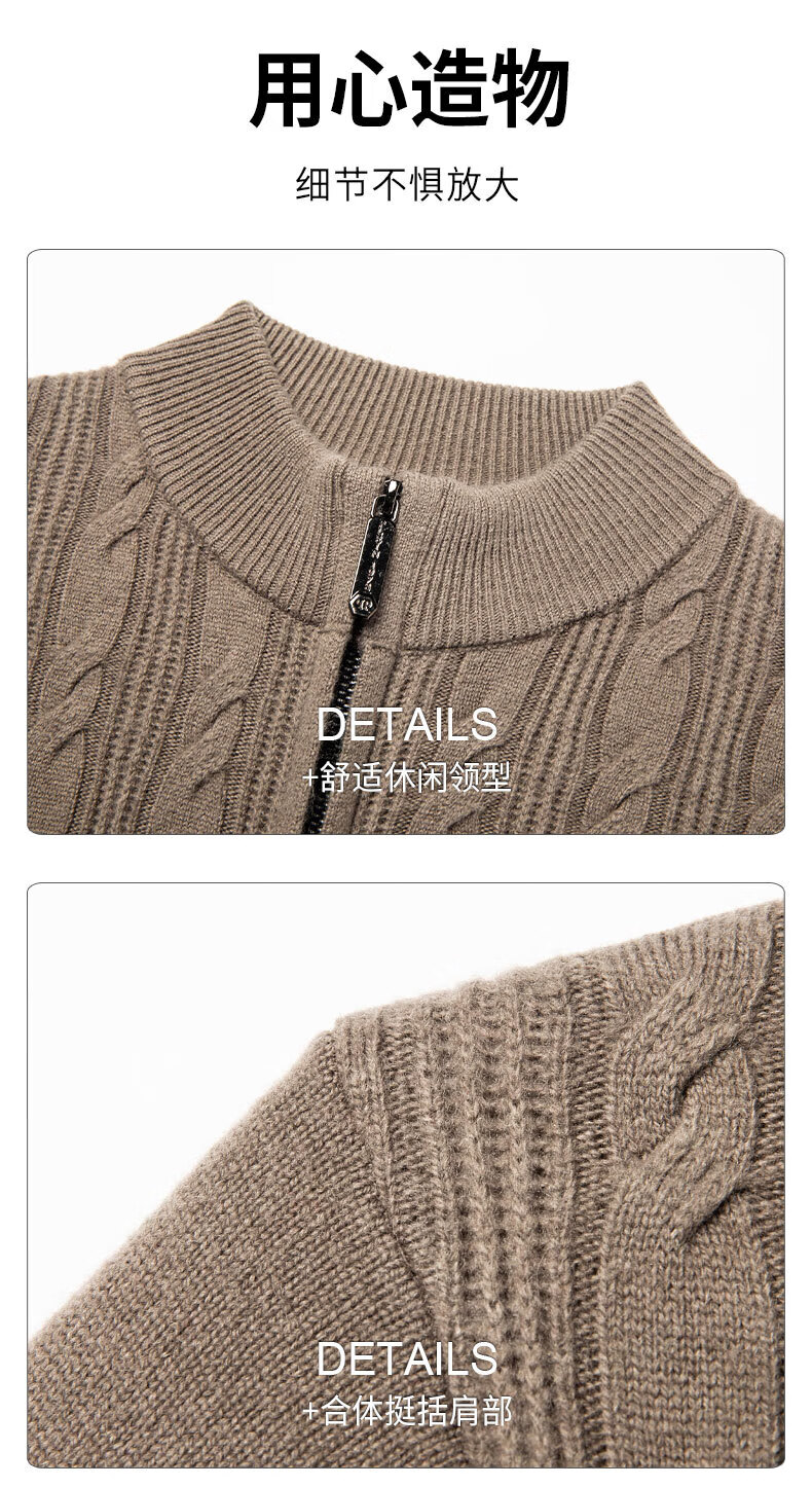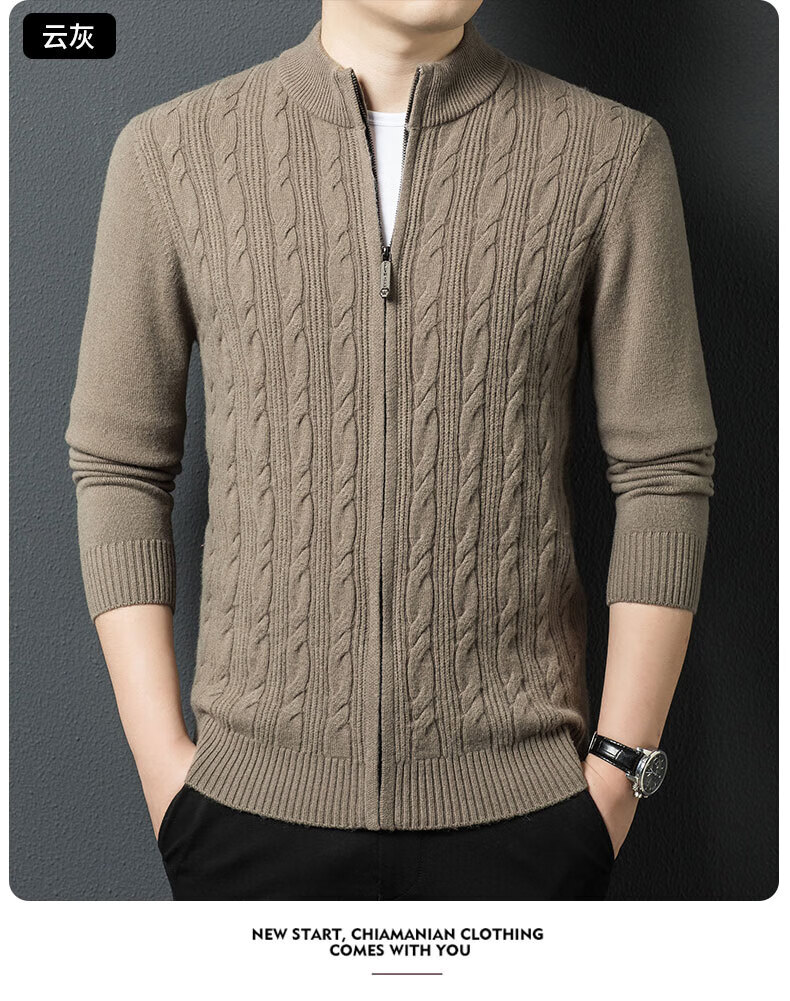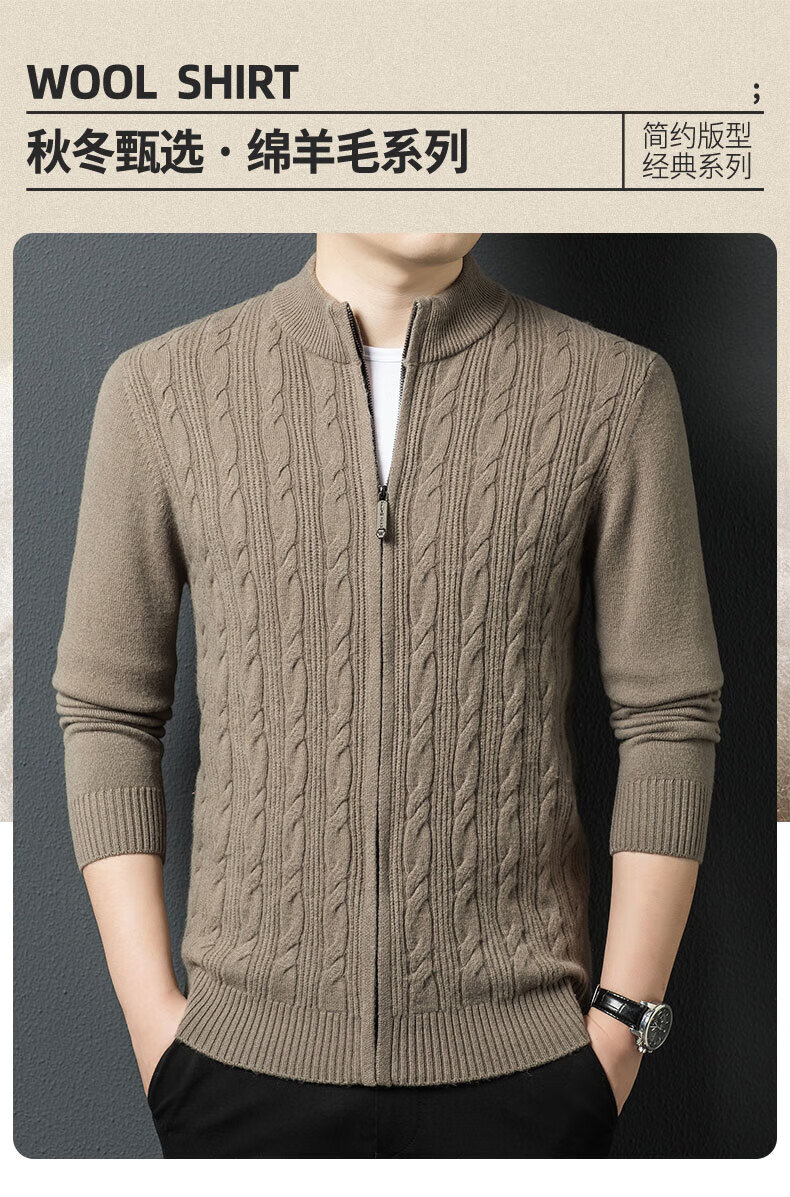 SHANSHAN杉杉加厚款100%纯羊毛衫男士针织开衫毛衣秋冬季上衣男装休闲外套 云灰【高档半高领绵羊毛外套】 XL(180/96A)