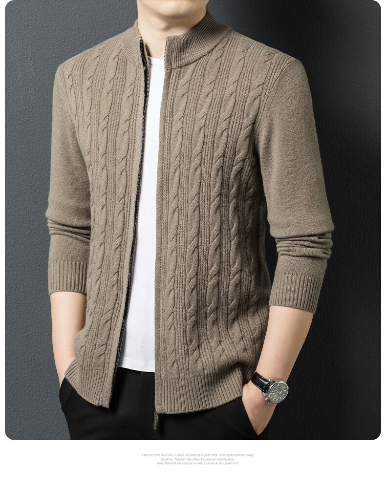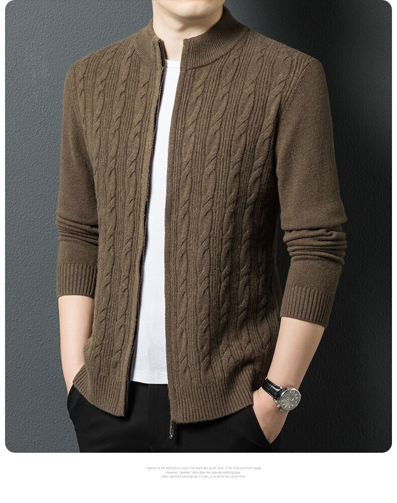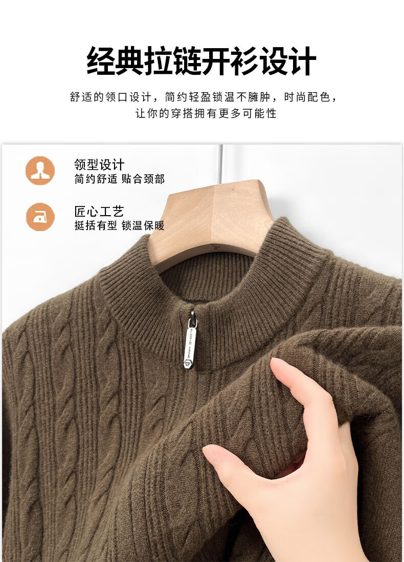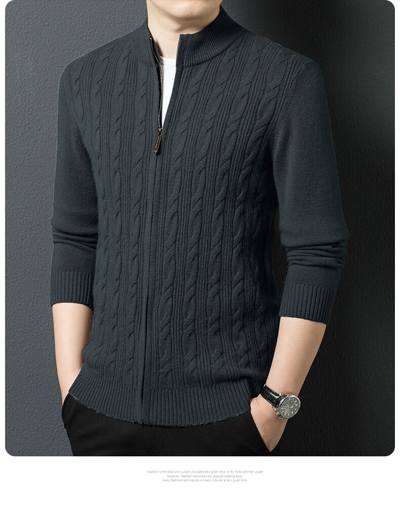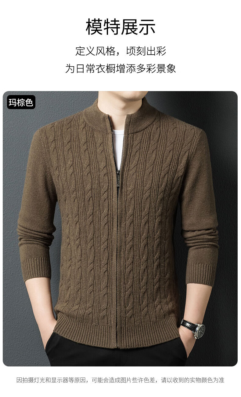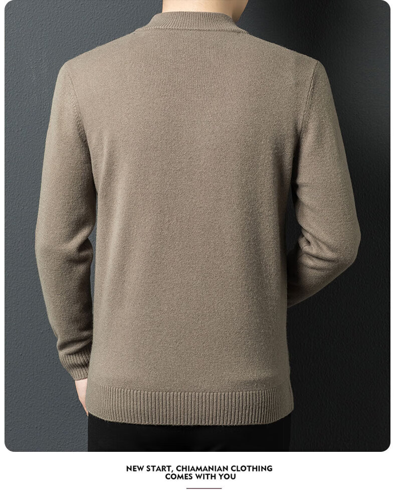 SHANSHAN杉杉加厚款100%纯羊毛衫男士针织开衫毛衣秋冬季上衣男装休闲外套 云灰【高档半高领绵羊毛外套】 XL(180/96A)
