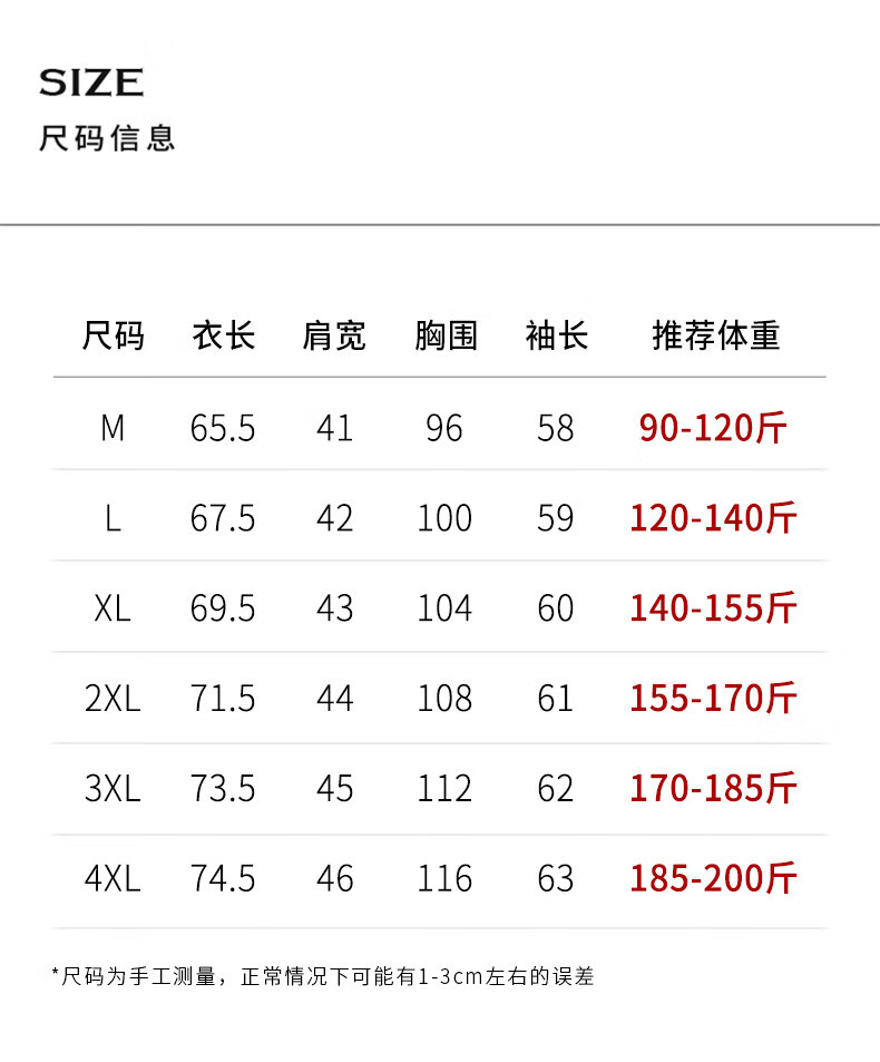 China (cm) 165 / 88-90 170 / 96-98 175 / 108-110 180 / 118-122 185 / 126-130