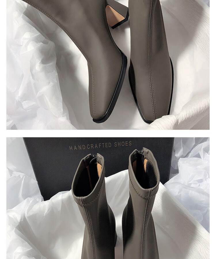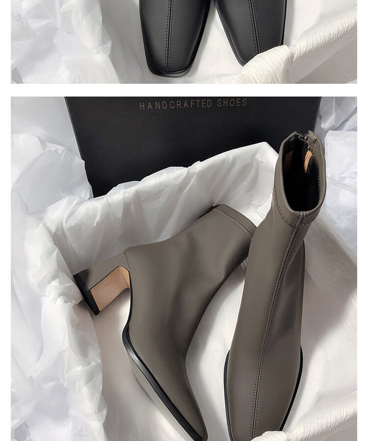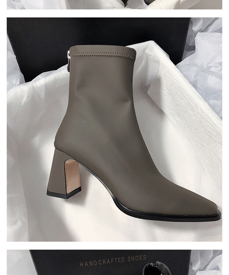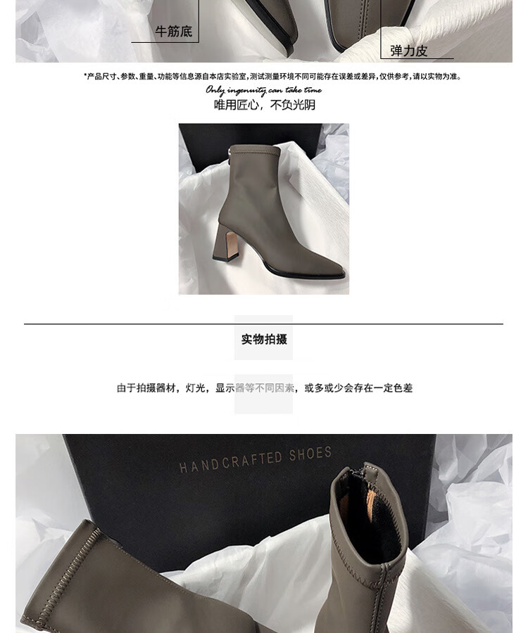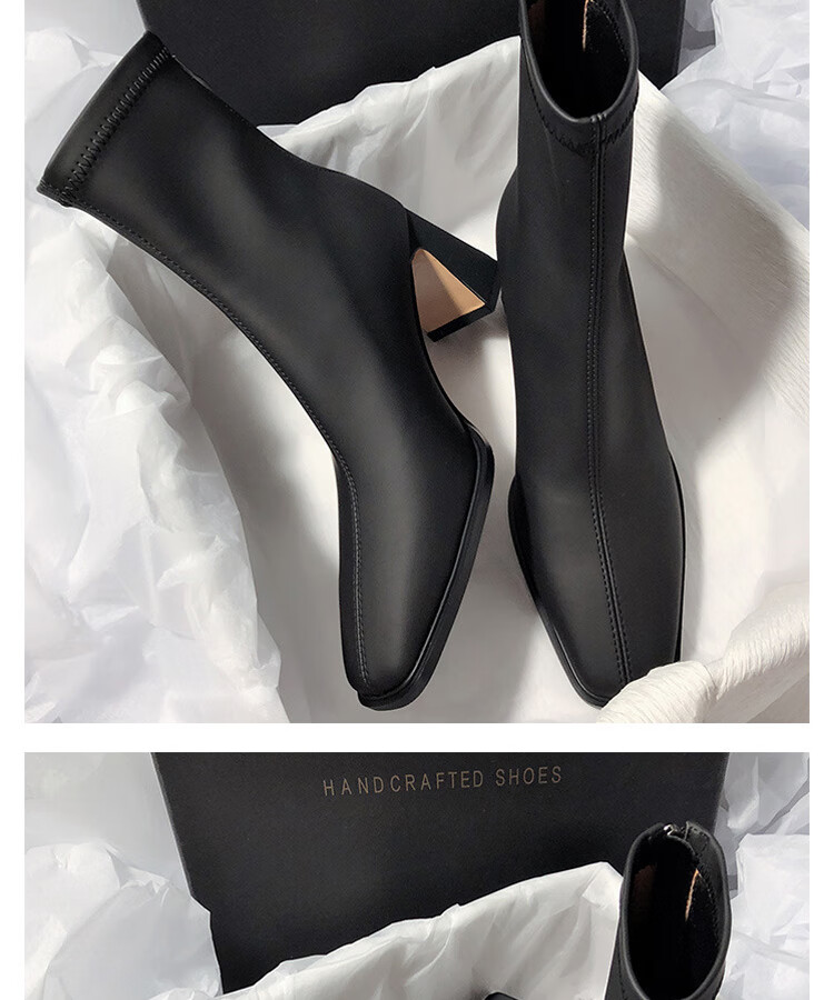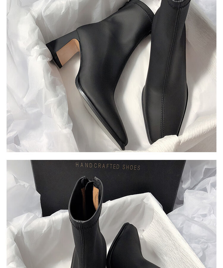 眺德高女靴春秋新款尖头高跟短筒皮靴时尚百搭简约时装靴瘦瘦靴子女 黑色 单层 7cm 37