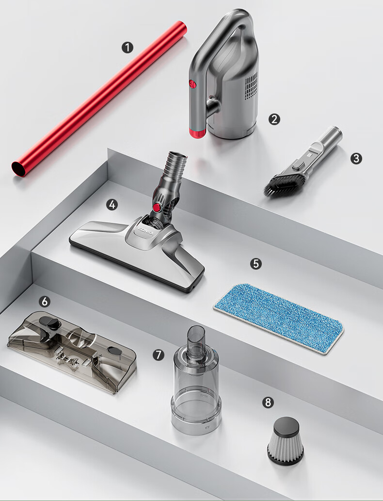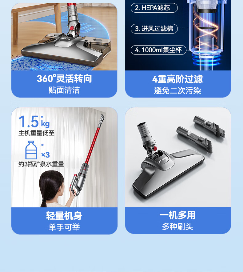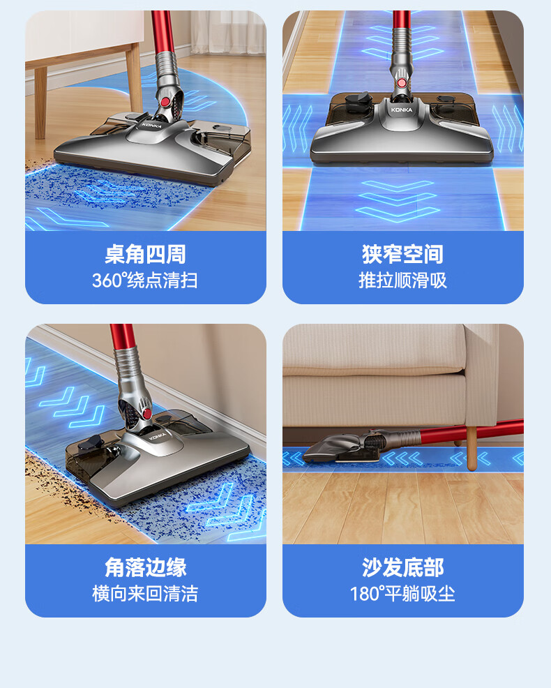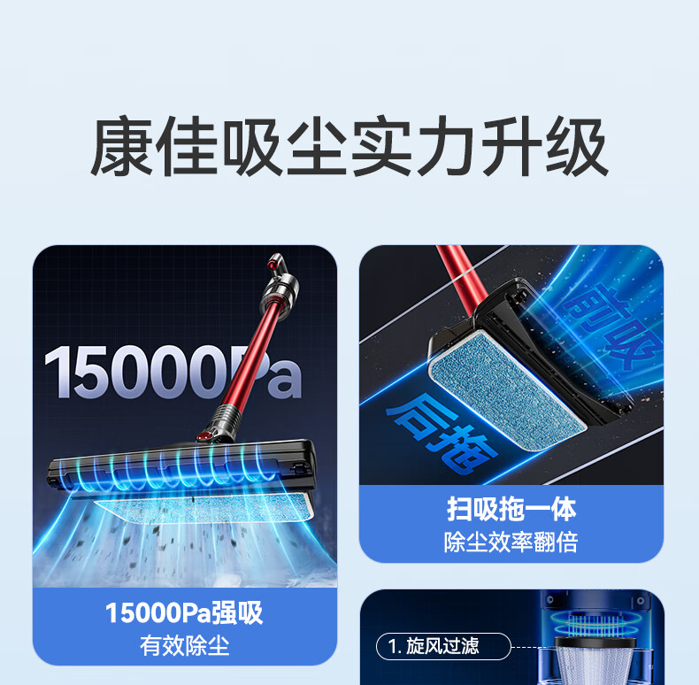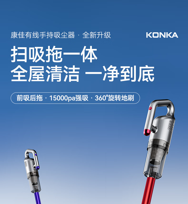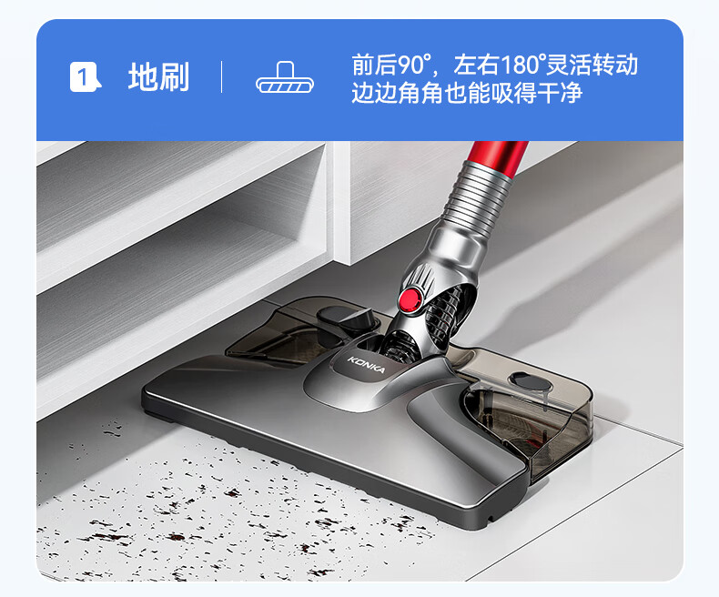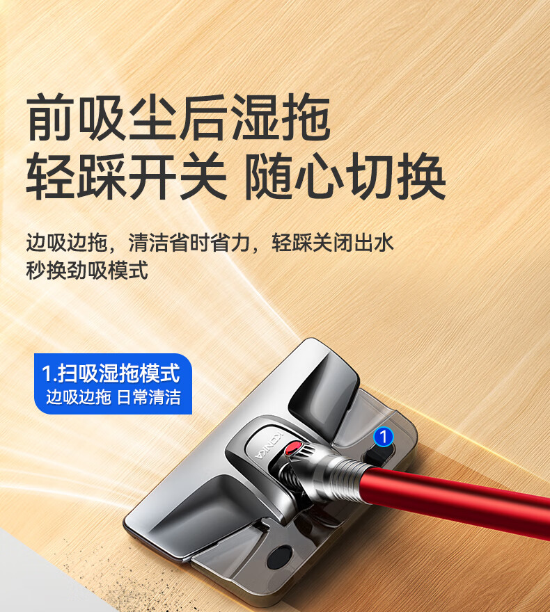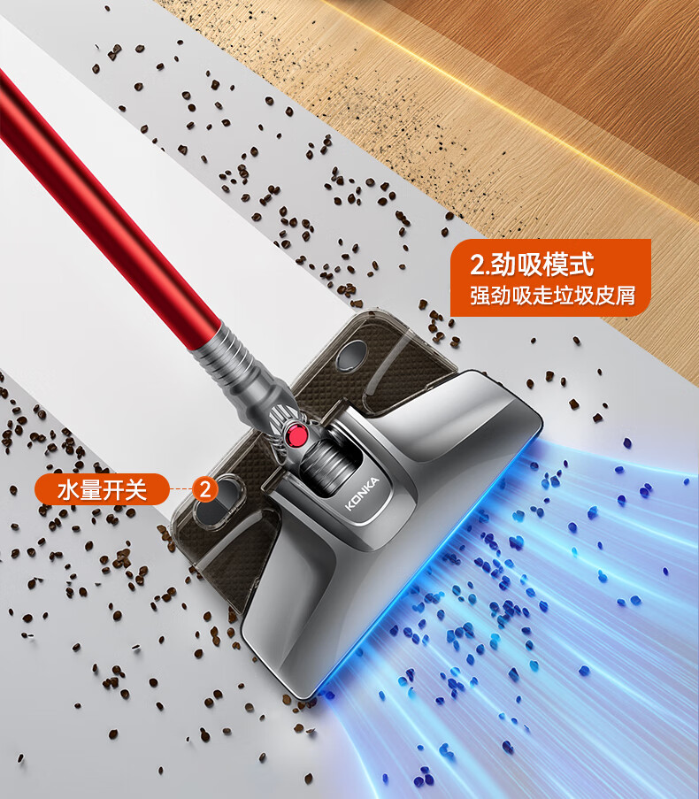 康佳吸尘器家用轻音大吸力大功率干湿两用吸拖一体手持推杆洗地机-B 【旗舰款-带湿拖水箱】红色-扫地/吸尘/拖地一体机