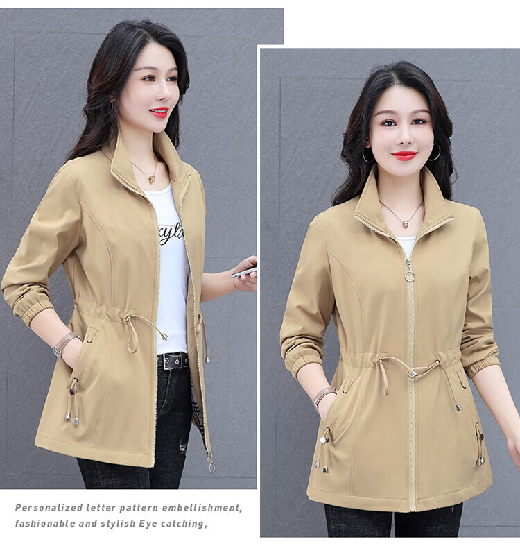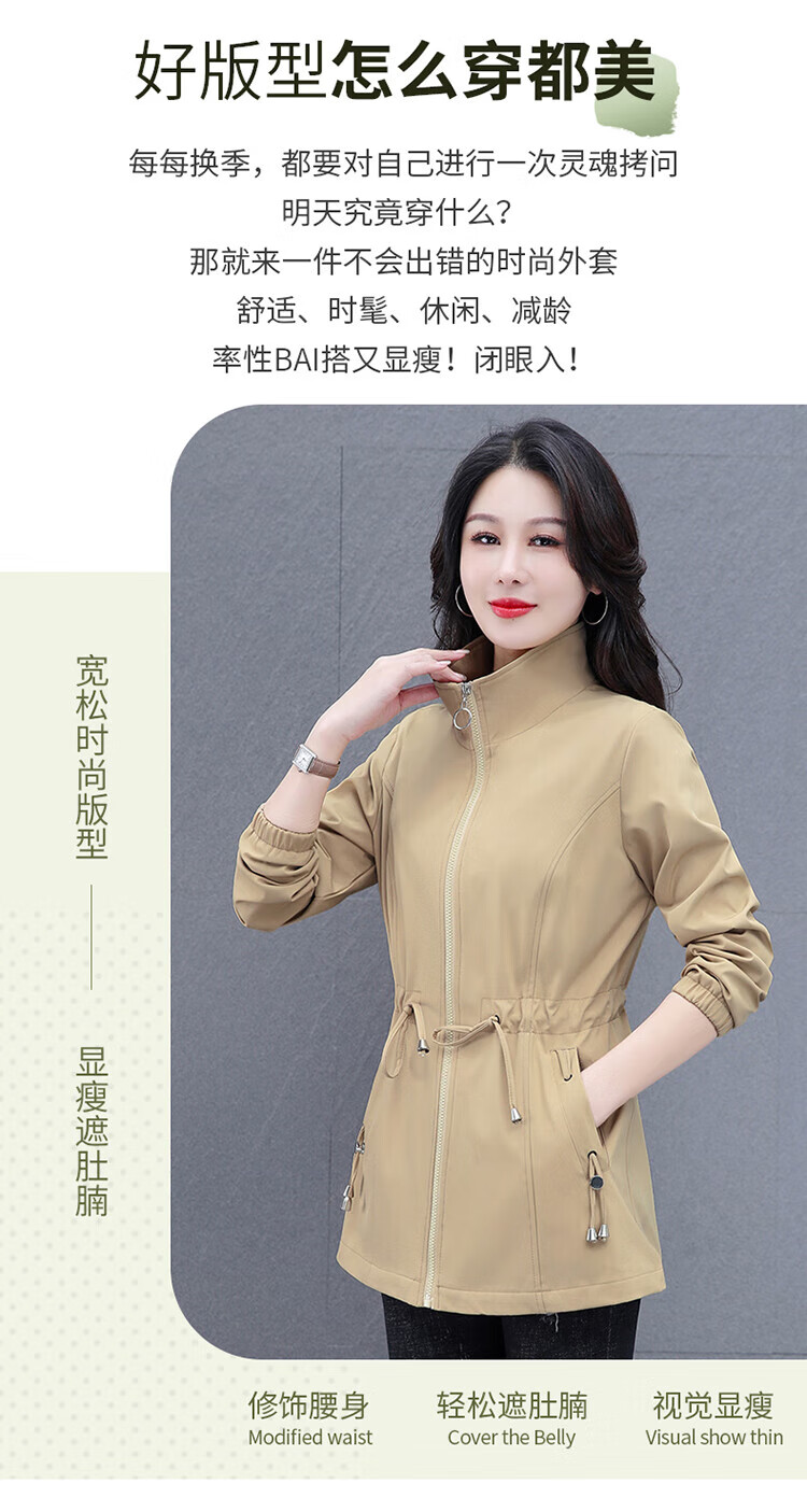 俞兆林(YUZHAOLIN)品牌轻薄中长款风衣外套女春秋季2025新款中年时尚女装休闲夹克女 卡其 2XL (建议125-140斤)