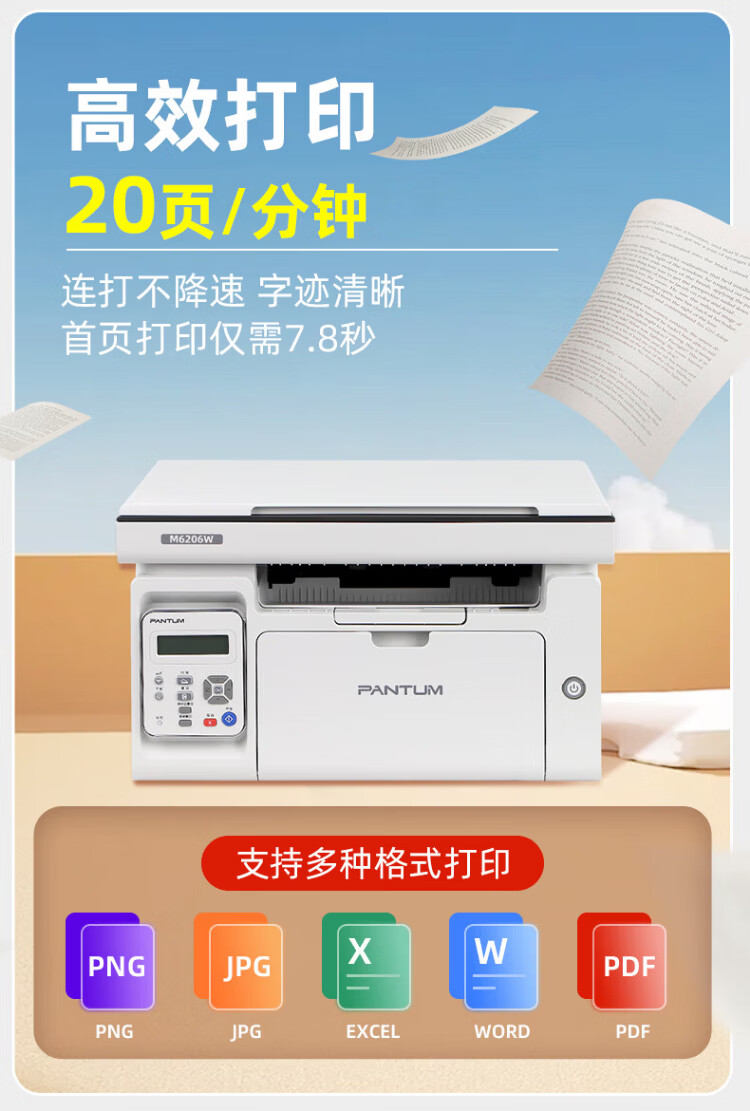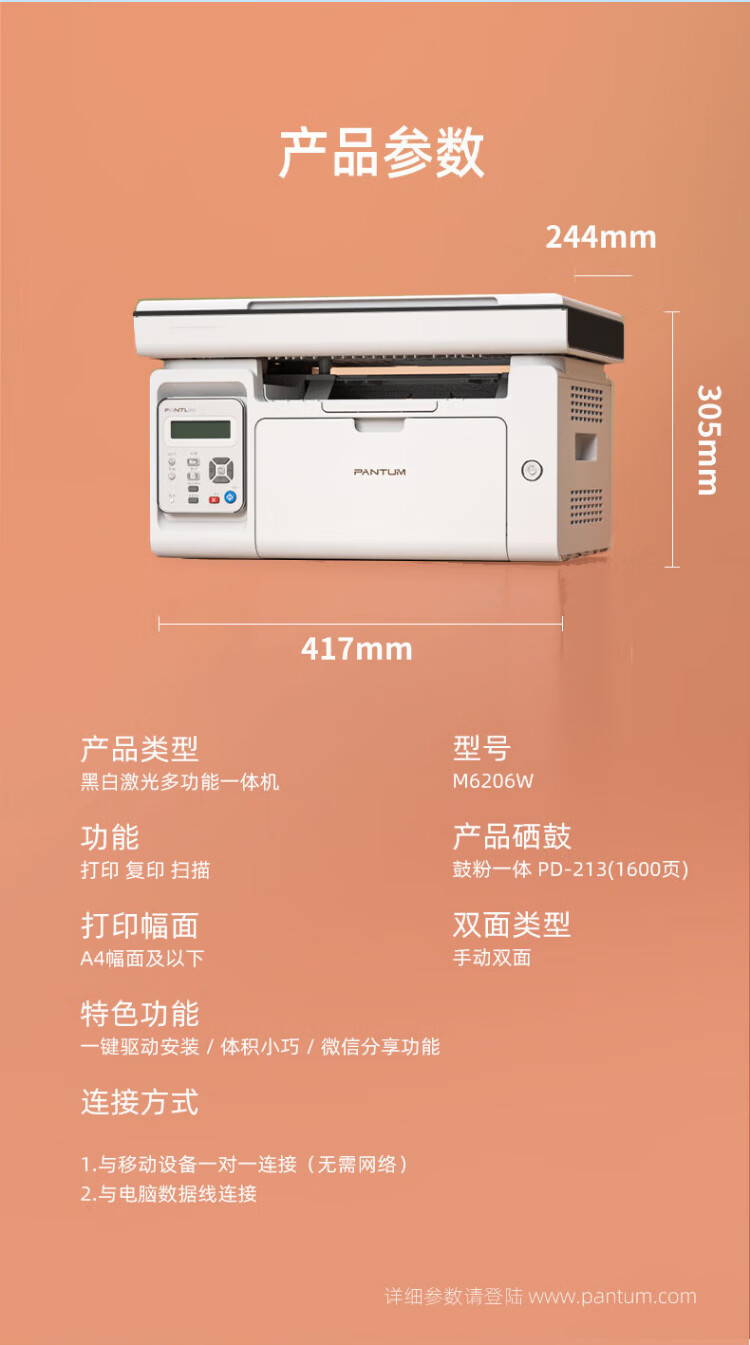 Pantum M6206W black and white laser printer copy and scan all-in-one office dedicated student home small A4 document homework mobile phone wireless wifi multi-function copier M6206W white wireless connection + printing copy scanning package one