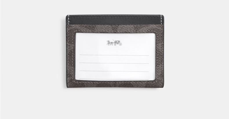 蔻驰(COACH)【新年礼物】奥莱男士经典标志老花纤巧型证件卡包零钱包 棕黄色/黑色