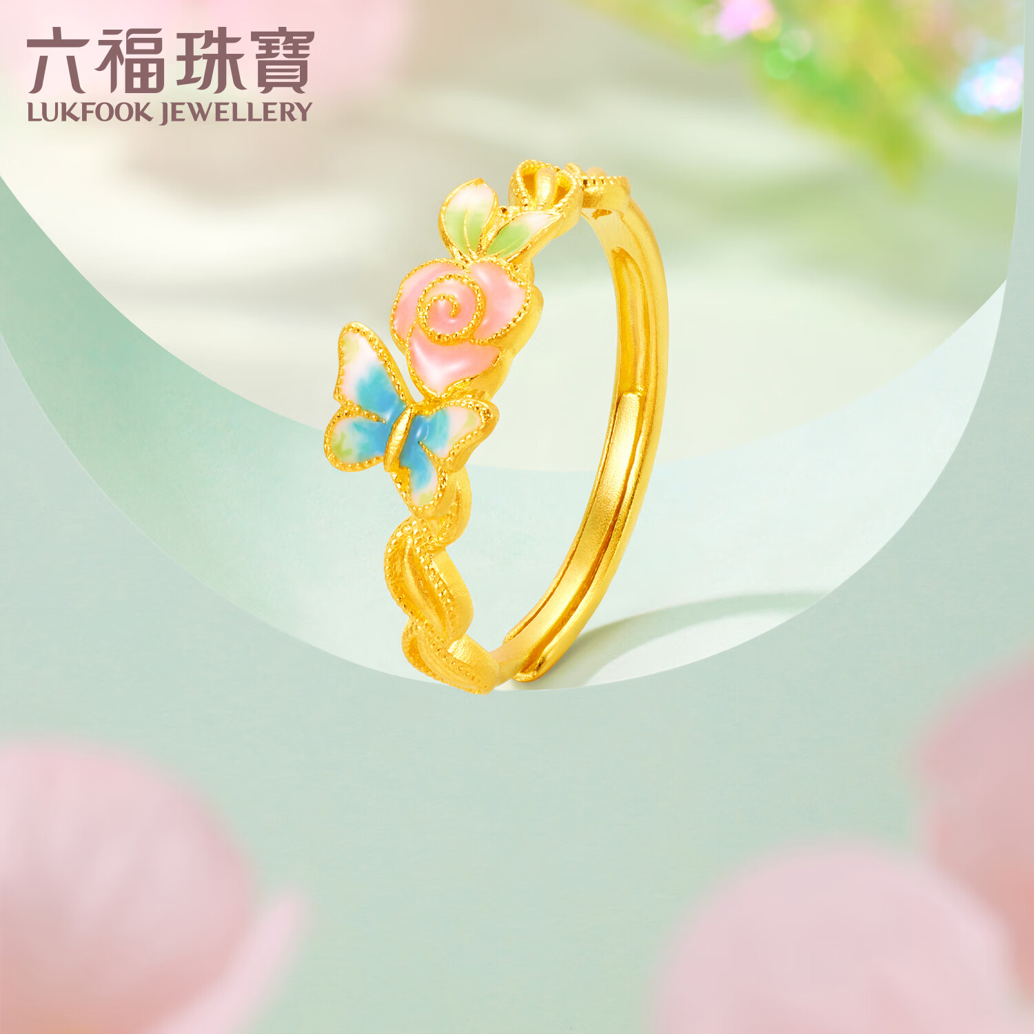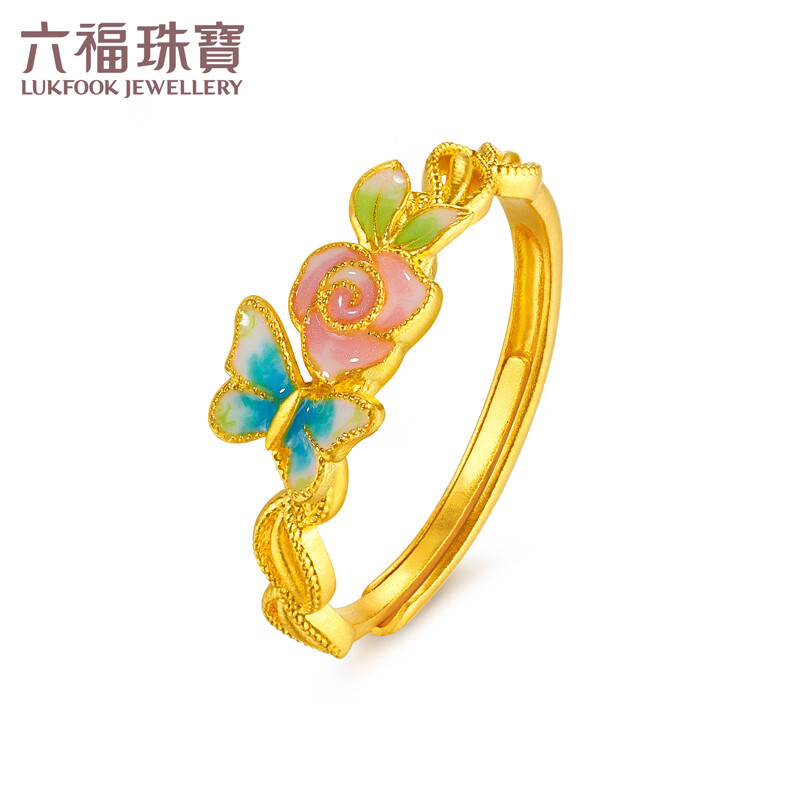 六福珠宝福满传家足金蝶舞馨香鎏彩工艺黄金戒指活口戒 计价 G39G0002DS 3.03克(含工费627元)