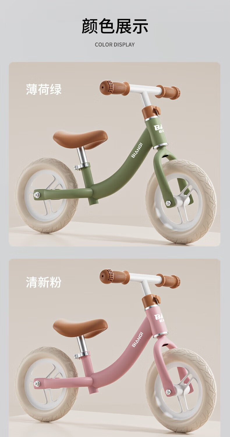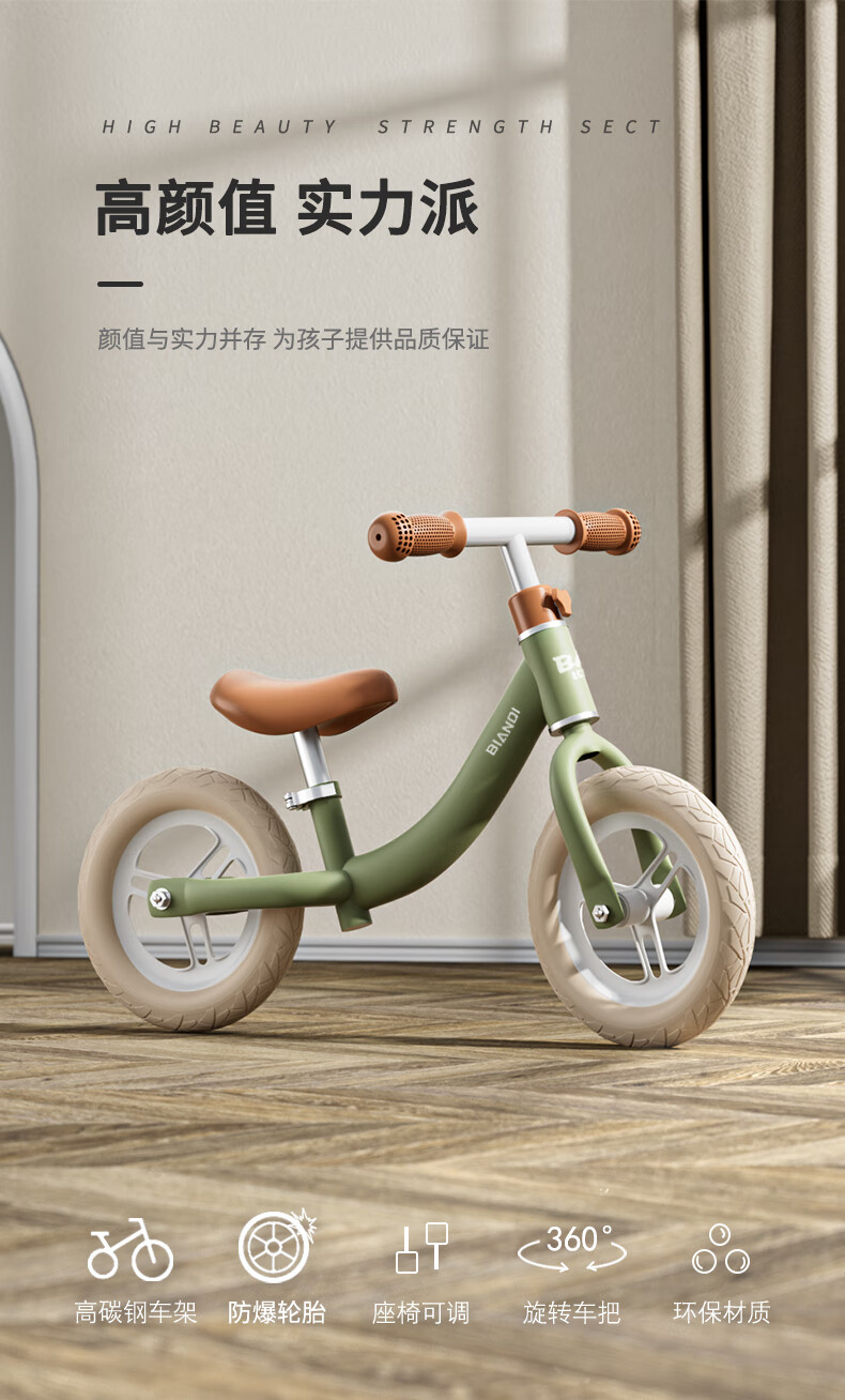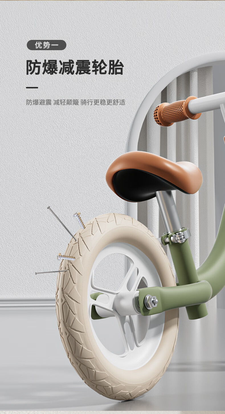 【全网爆款】儿童平衡车无脚踏自行车2-3-6岁小孩玩具礼物滑行车 12寸 绿色黑发泡轮 80-110cm