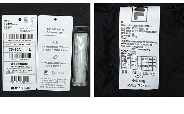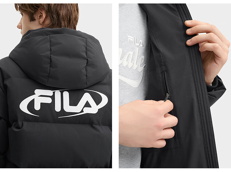 斐乐斐乐官方情侣款羽绒服2024冬新款时尚休闲舒适连帽保暖外套 正黑色-BK 180/100A/XL