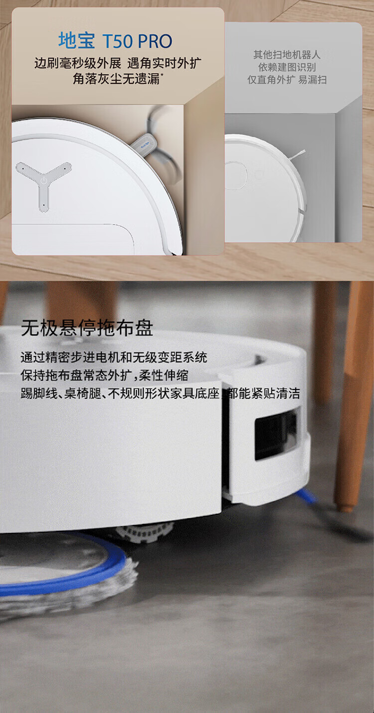Robot barredor Ecovacs T50PRO, servicio con subsidio nacional y precio garantizado, lavadora de pisos, barrido y trapeado limpieza automática integrada, lavado y trapeado con agua arriba y abajo totalmente automático modelo con tanque de agua integrado T50PRO, disfruta de descuentos previa consulta