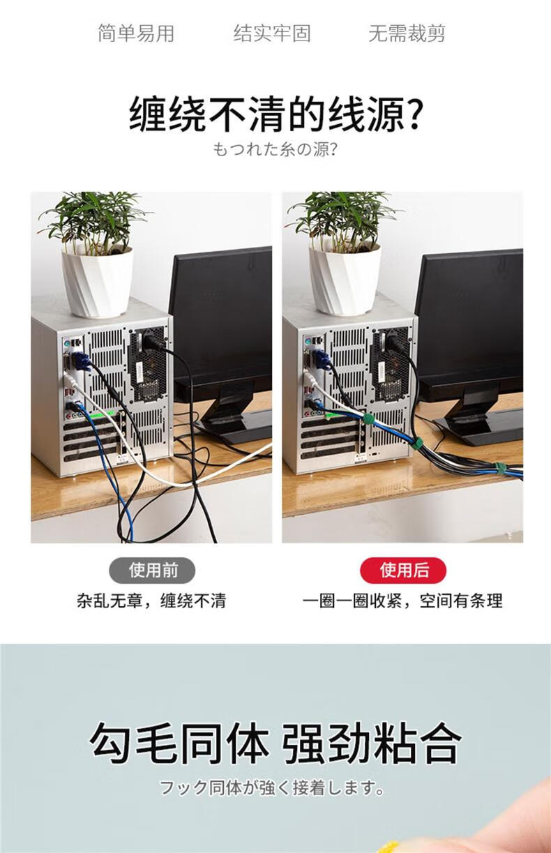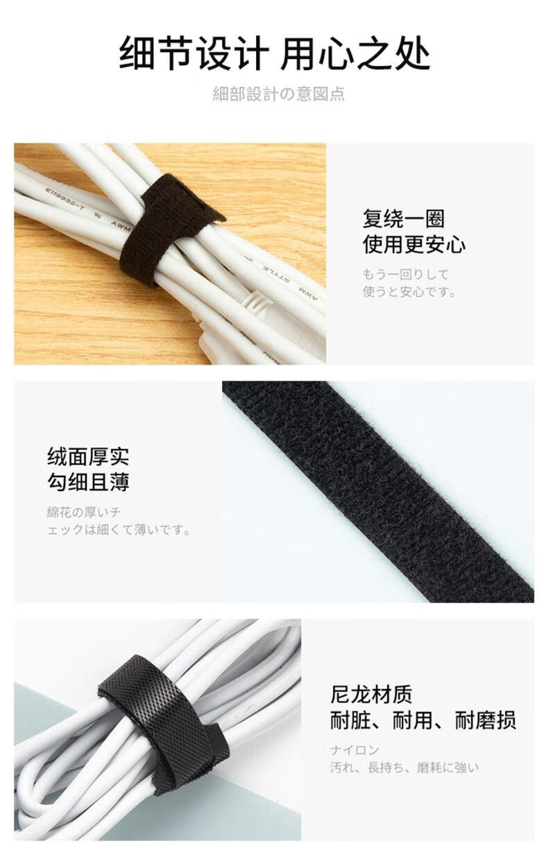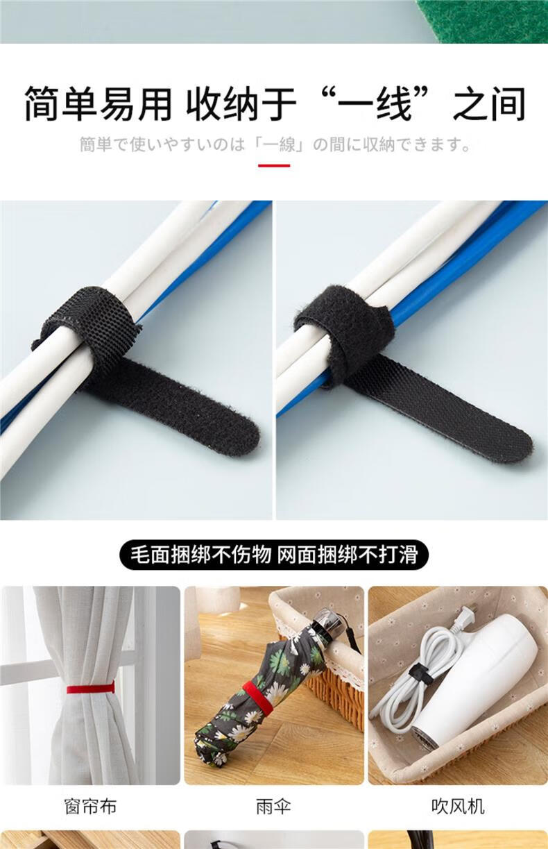 魔术贴扎线带数据线充电线电脑线收纳固定束线器家用理线走线神器 混色60条装 无规格
