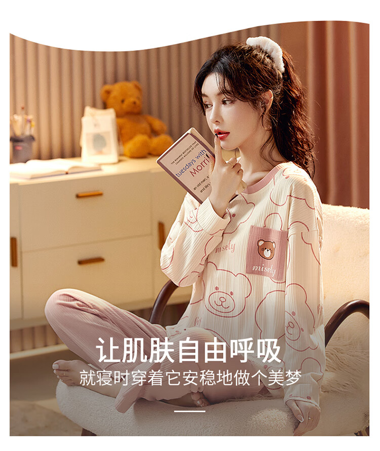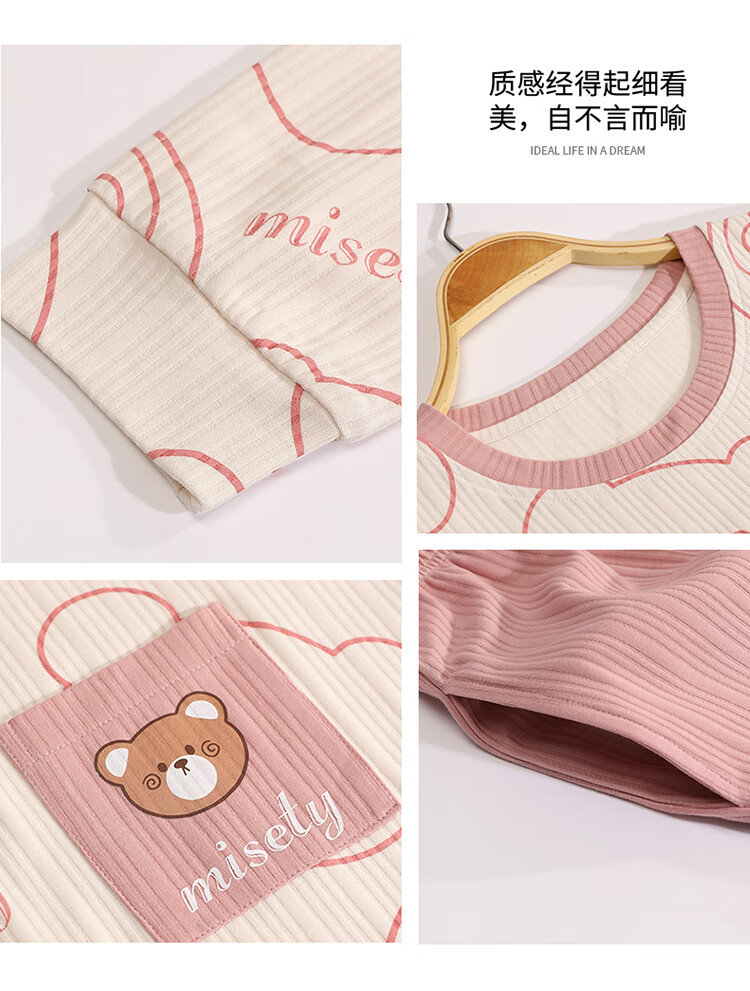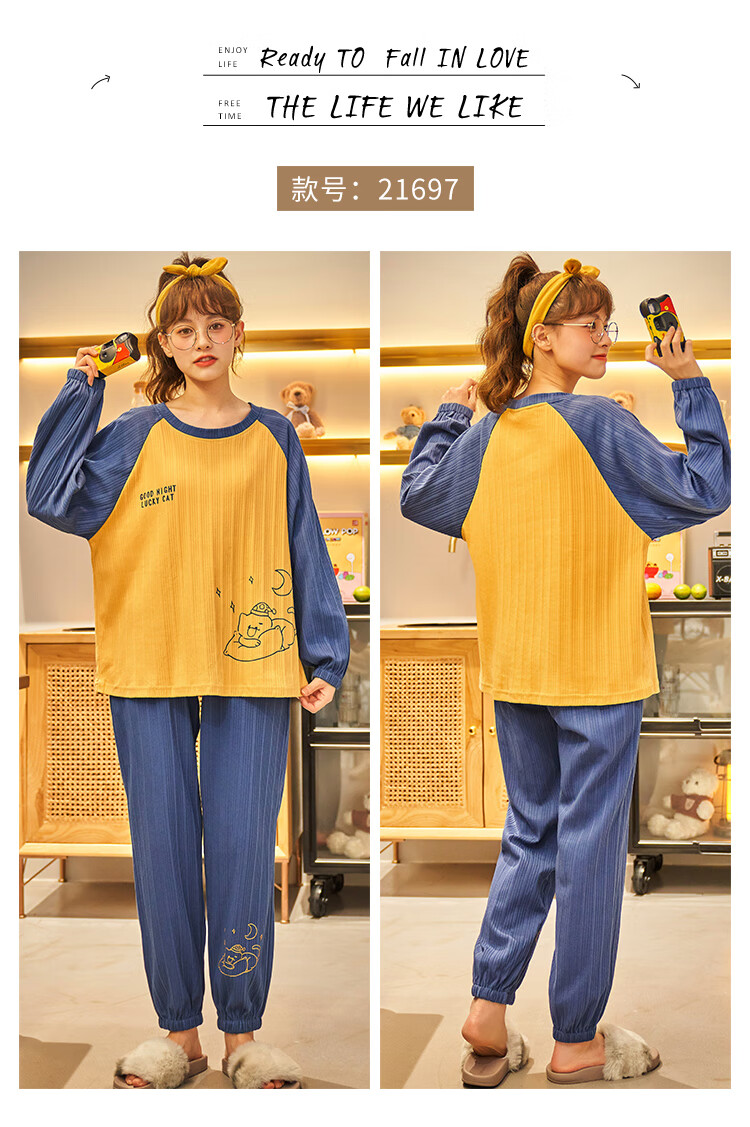 恒源祥春秋睡衣女款纯.棉收口收脚长袖少女初中学生小个子束脚裤套装 长袖 G9928粉老鼠 L 标准女【95-115斤】