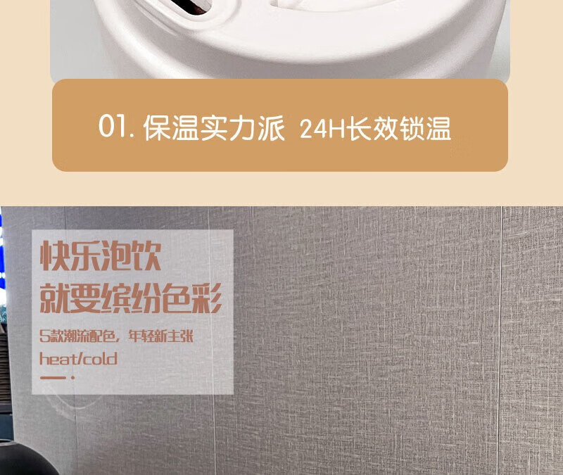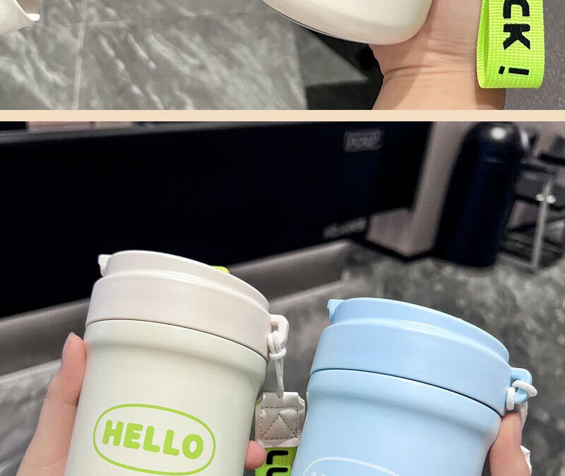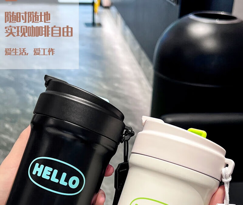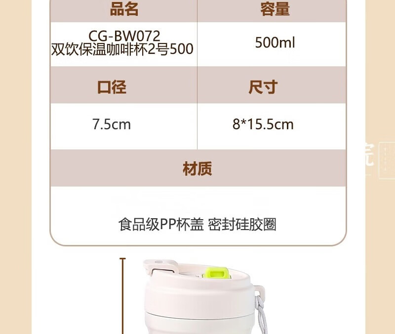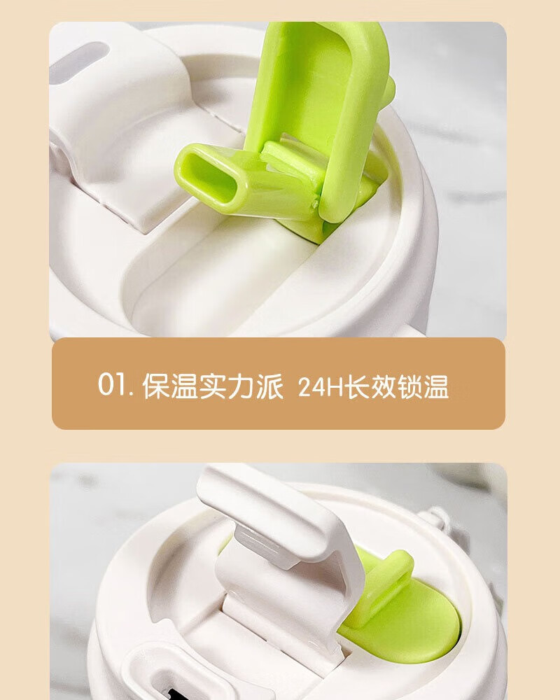 GROOT高颜值316不锈钢咖啡保温杯学生水杯大容量吸管杯子礼品定制logo 月光白 500ml