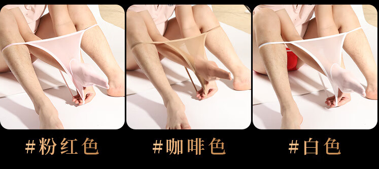 Z男士撸自内裤男士全透明内裤性感超薄油亮丝滑低腰丁字裤大码枪 粉红色 L码【开口款】80-130斤