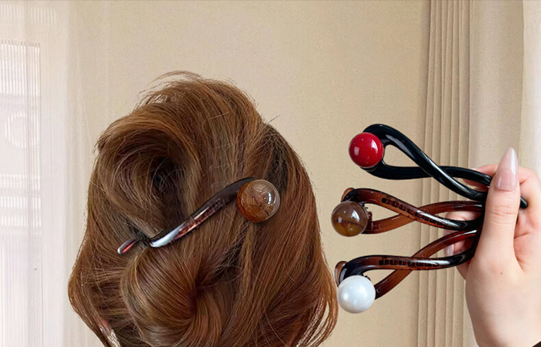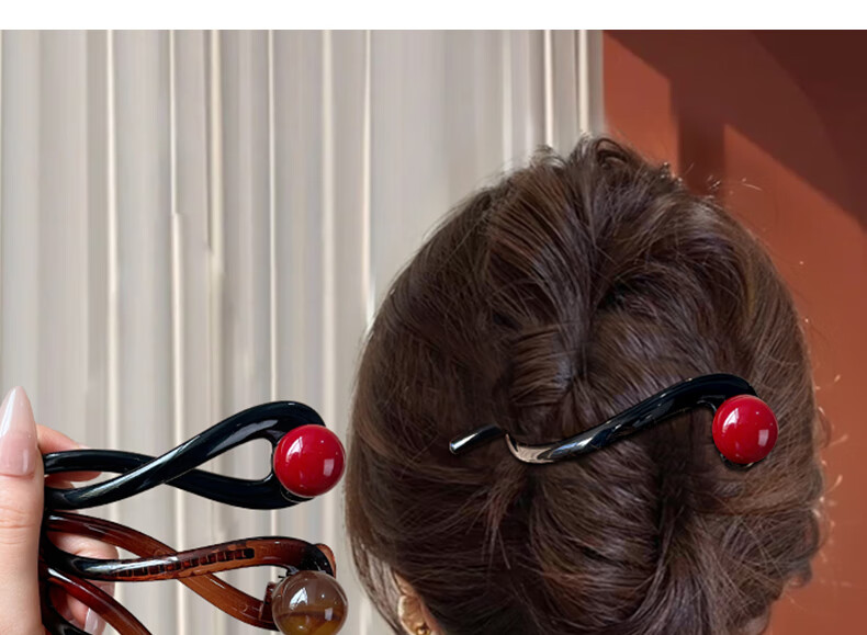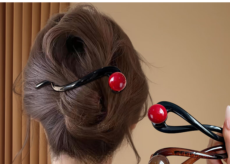 Zuoou Perlen-Haarnadel, Ein-Wort-Clip für Damen, Hinterkopf-Haar-Twist-Clip, 2025, neuer High-End-Haifisch-Clip, Haarspange, Haar-Accessoire, Schwarz + rote Perle