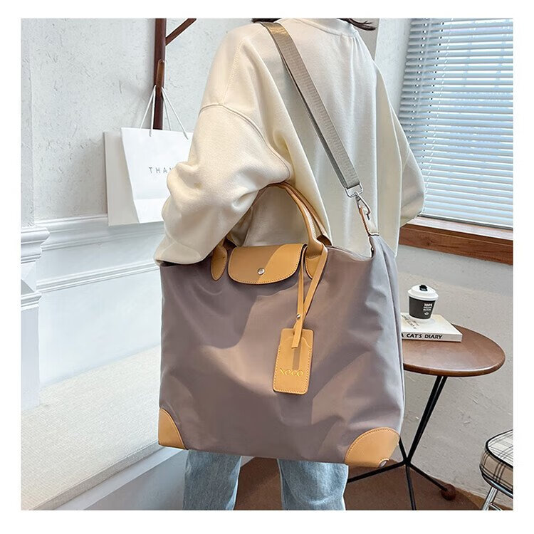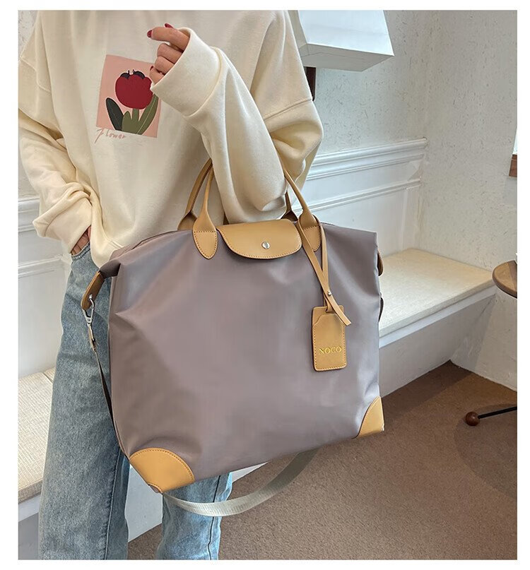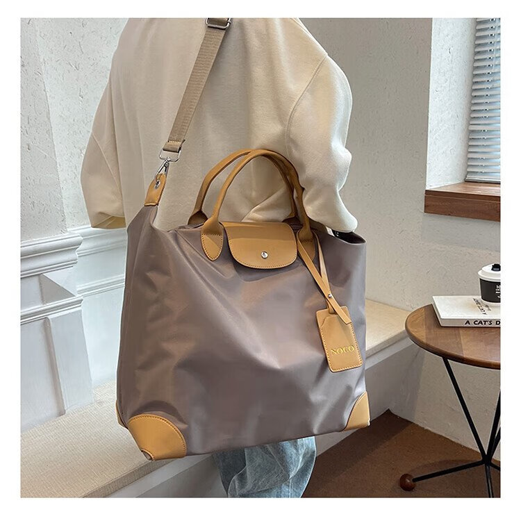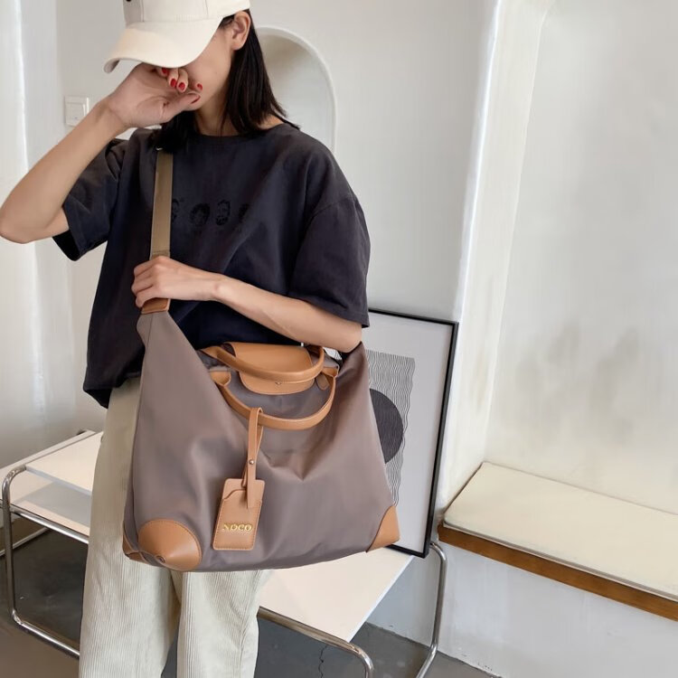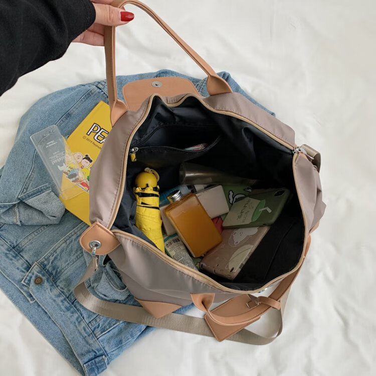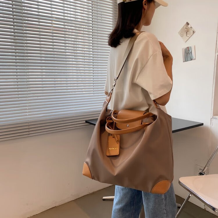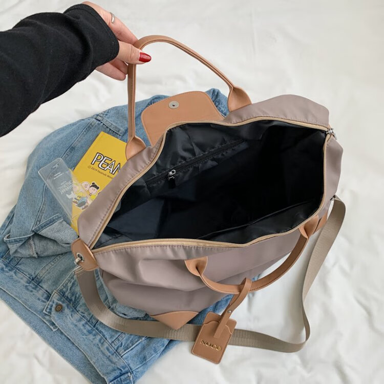 茉詺旅行收纳包防水牛津布健身包出差短途行李包单肩斜跨大容量运动包 健身旅行包【卡其】