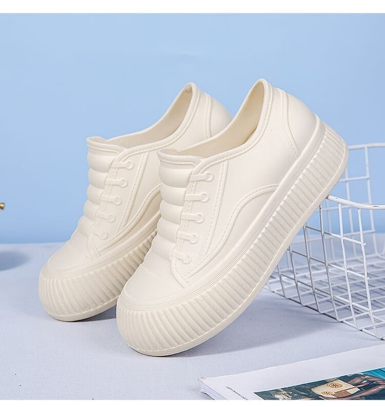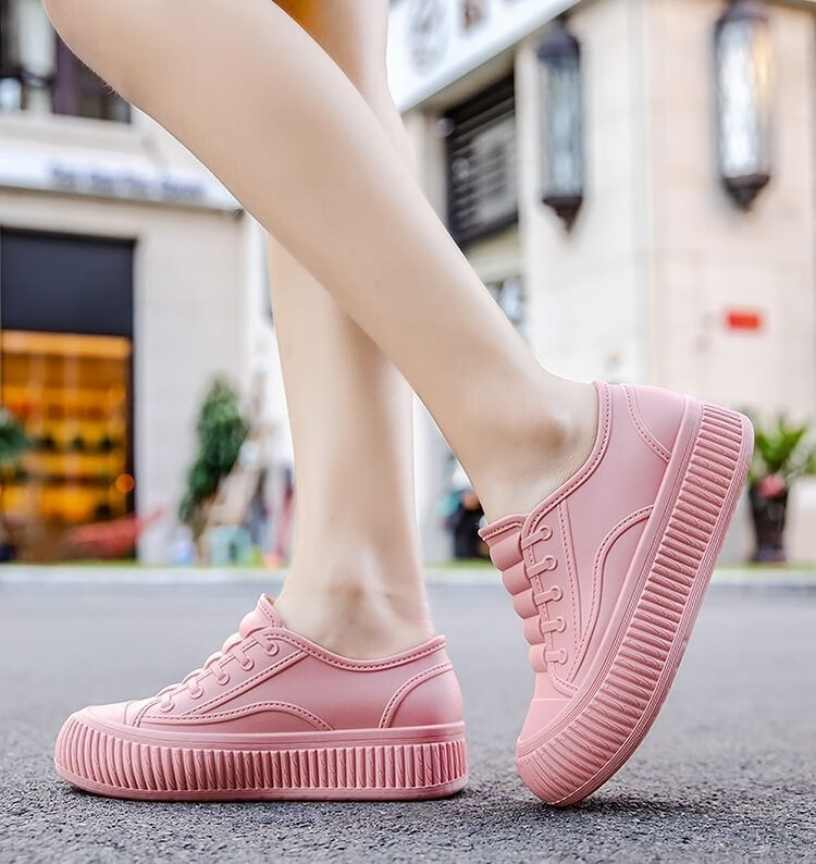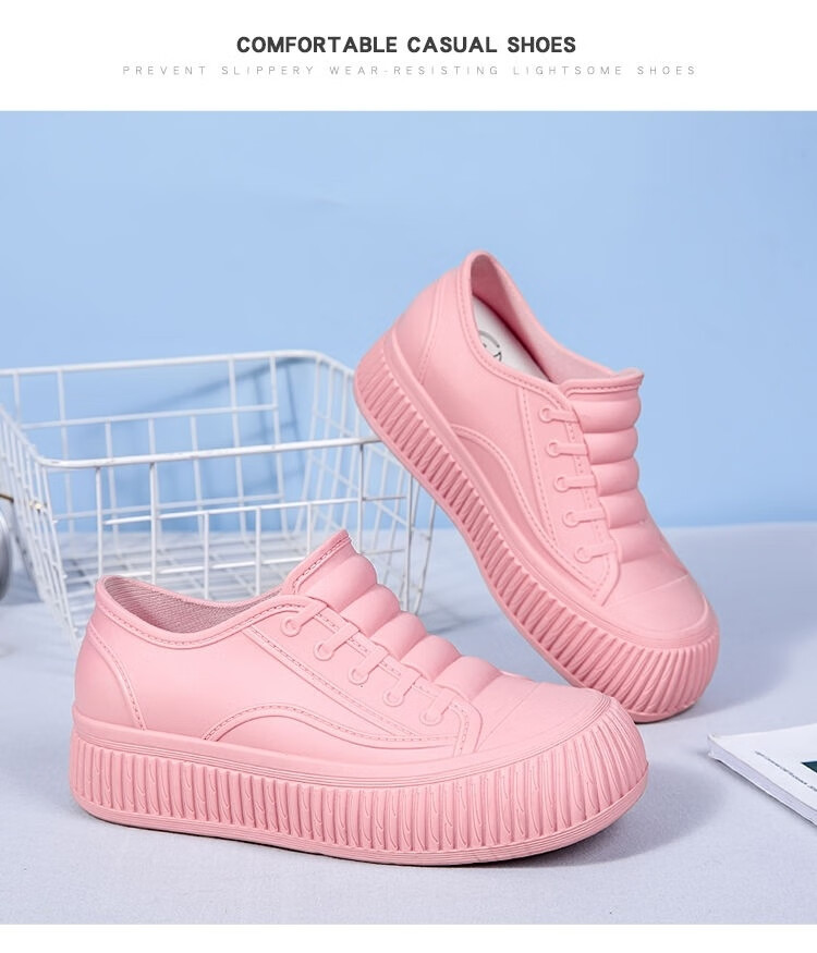 淇丝蔓时尚雨鞋女士低帮内增高防水鞋浅口耐磨厚底短筒防滑雨靴厨房胶鞋 粉色单鞋【标准码】无棉 36