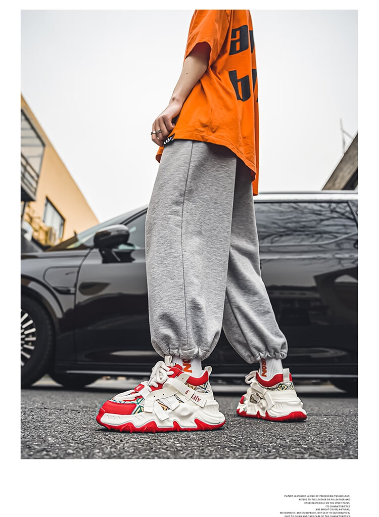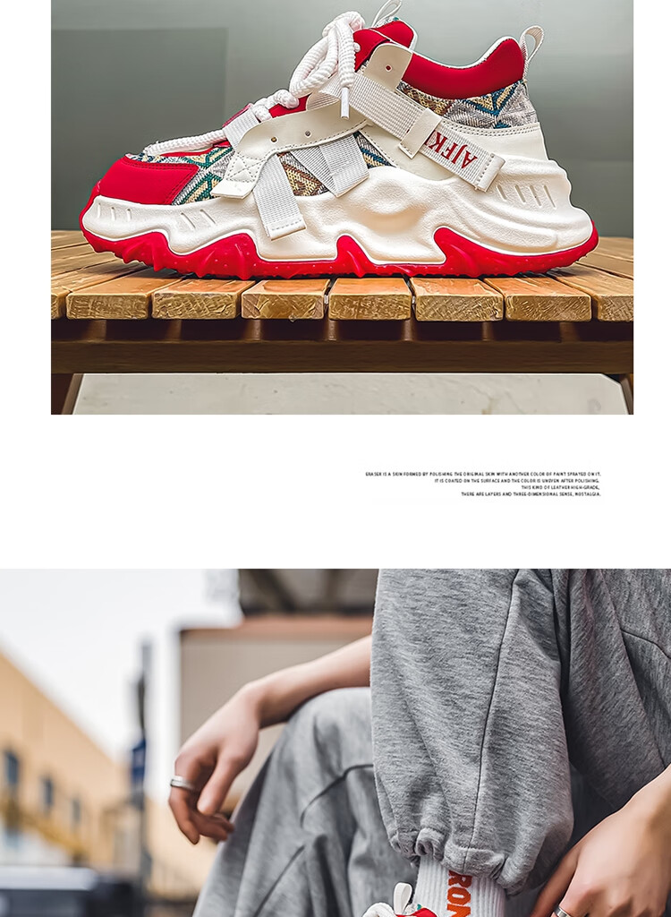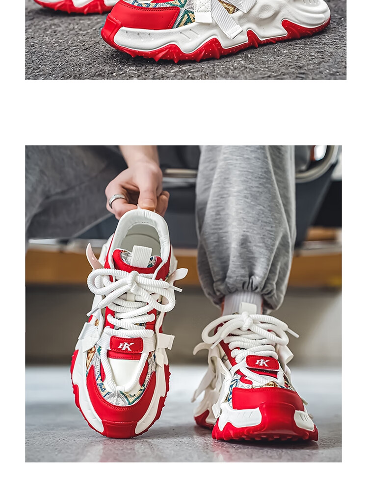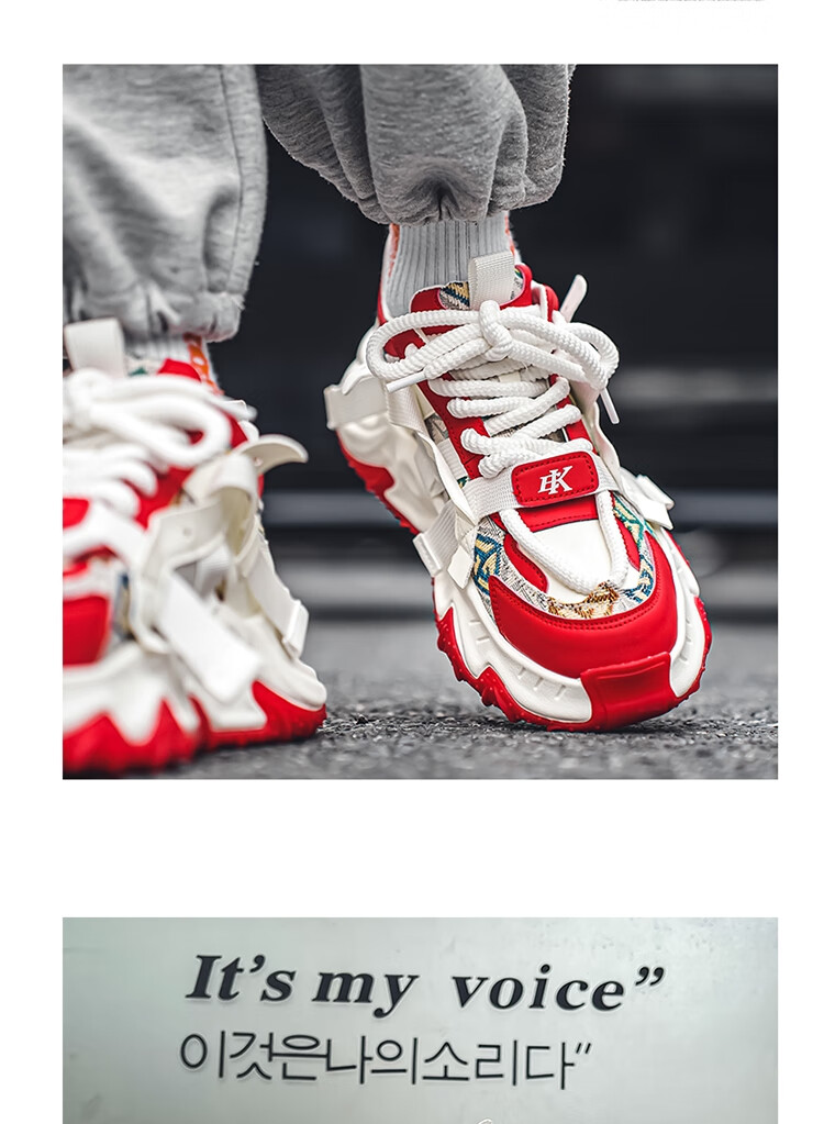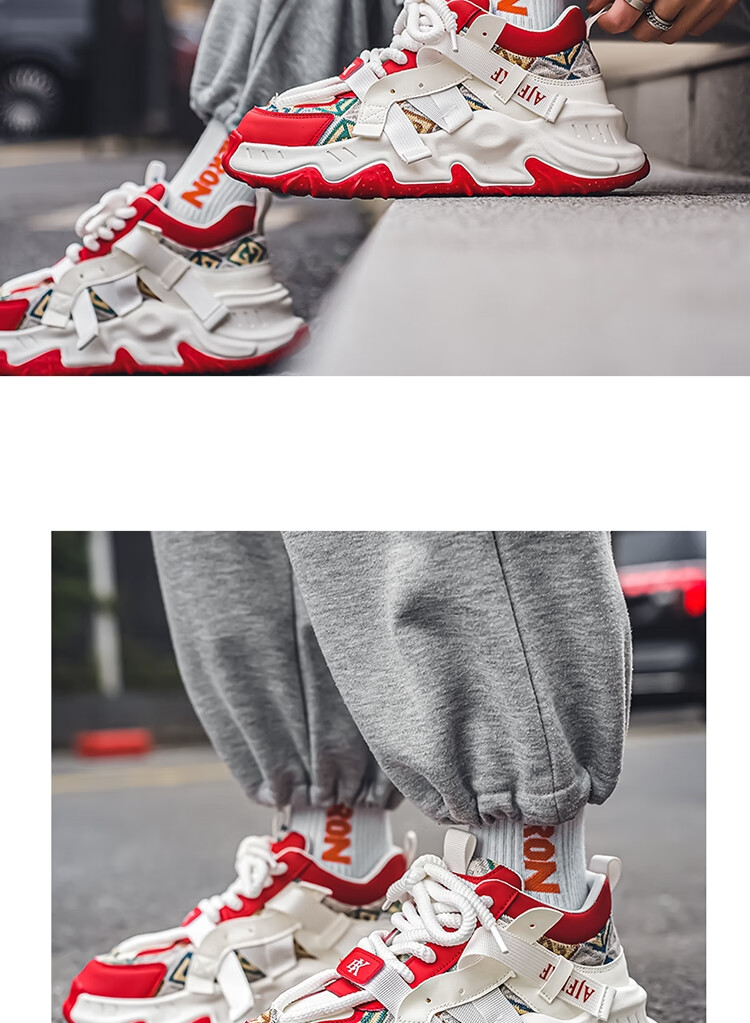 东方骆驼男鞋冬季2025新款潮流高级感青少年运动增高厚底休闲老爹潮鞋子男 红色 42