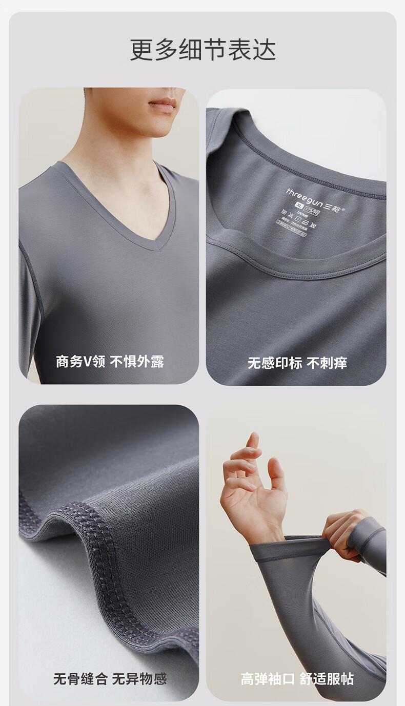 Three Guns 70S High Count Herrenunterwäsche, dünne, reine Baumwolle, Herbstkleidung und Herbsthosen, Baumwolle, warmer Kelleranzug für Herren, antistatisch, Herbst und Winter, Spezialweiß (Rundhalsanzug), 2XL (180), empfohlen 150–175 Jin Jin entspricht 0,5 kg