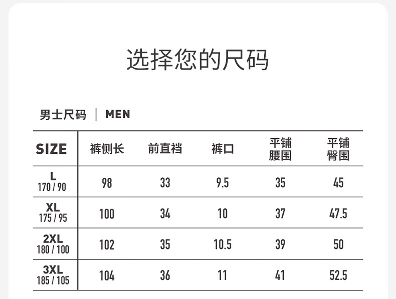 China (cm) 165 / 88-90 170 / 96-98 175 / 108-110 180 / 118-122 185 / 126-130
