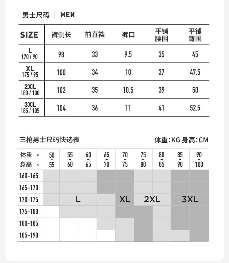 China (cm) 160-165/84-86 165-170 / 88-90 167-172 / 92-96 168-173 / 98-102 170-176 / 106-110