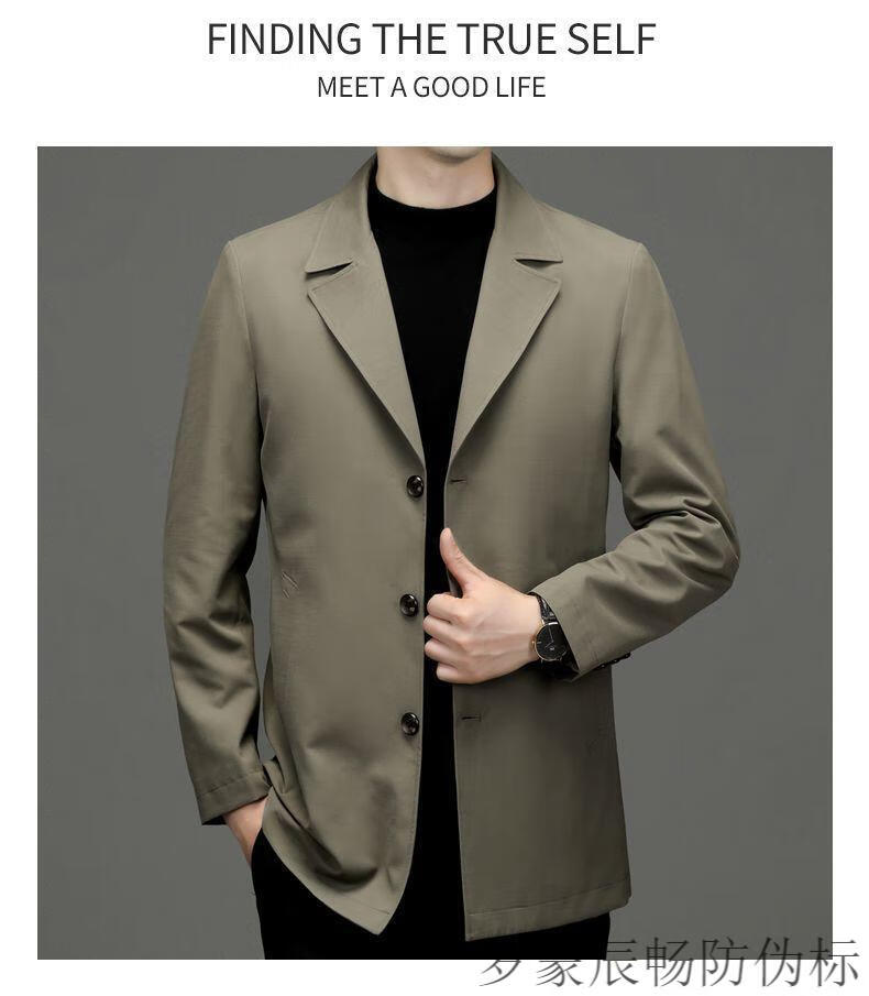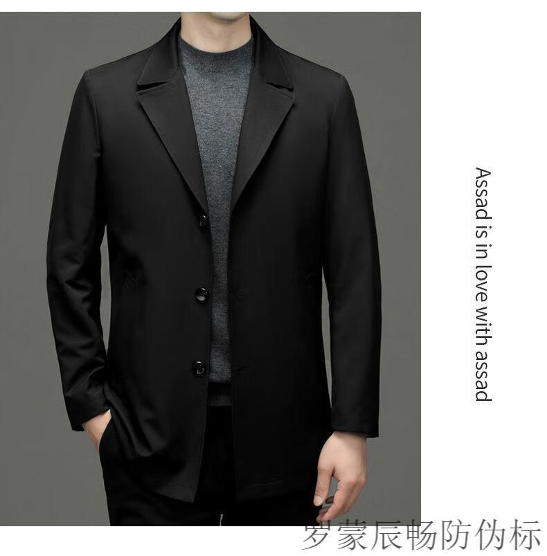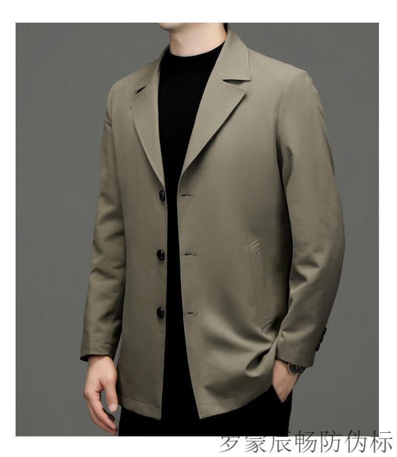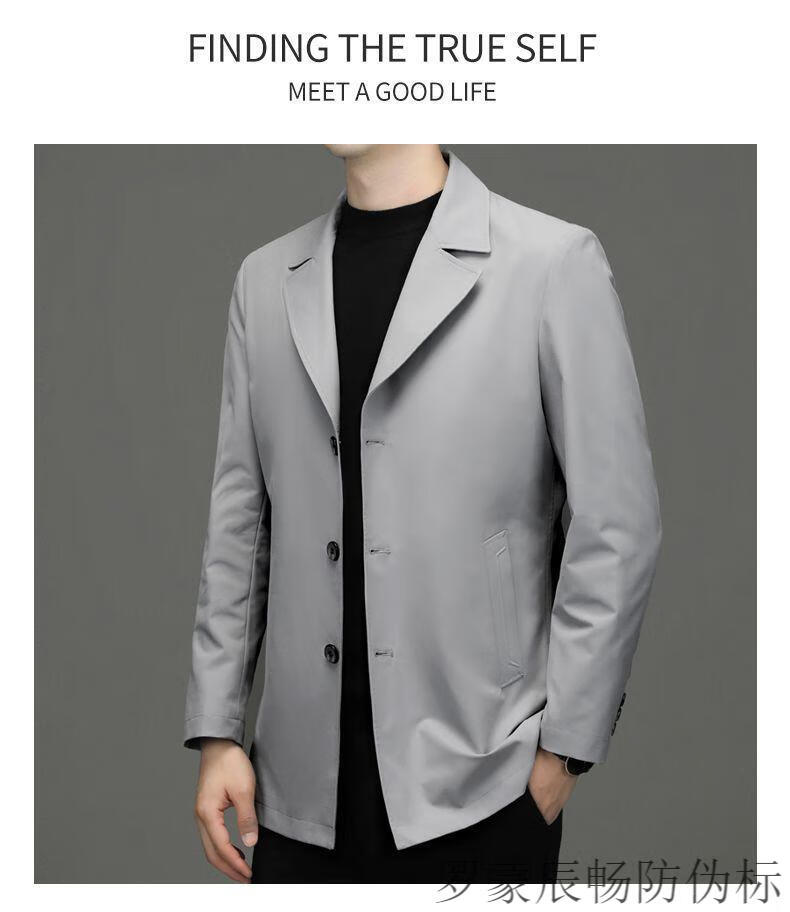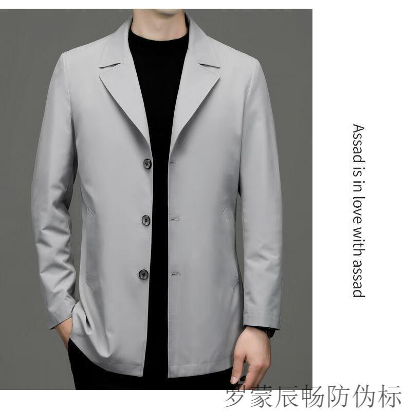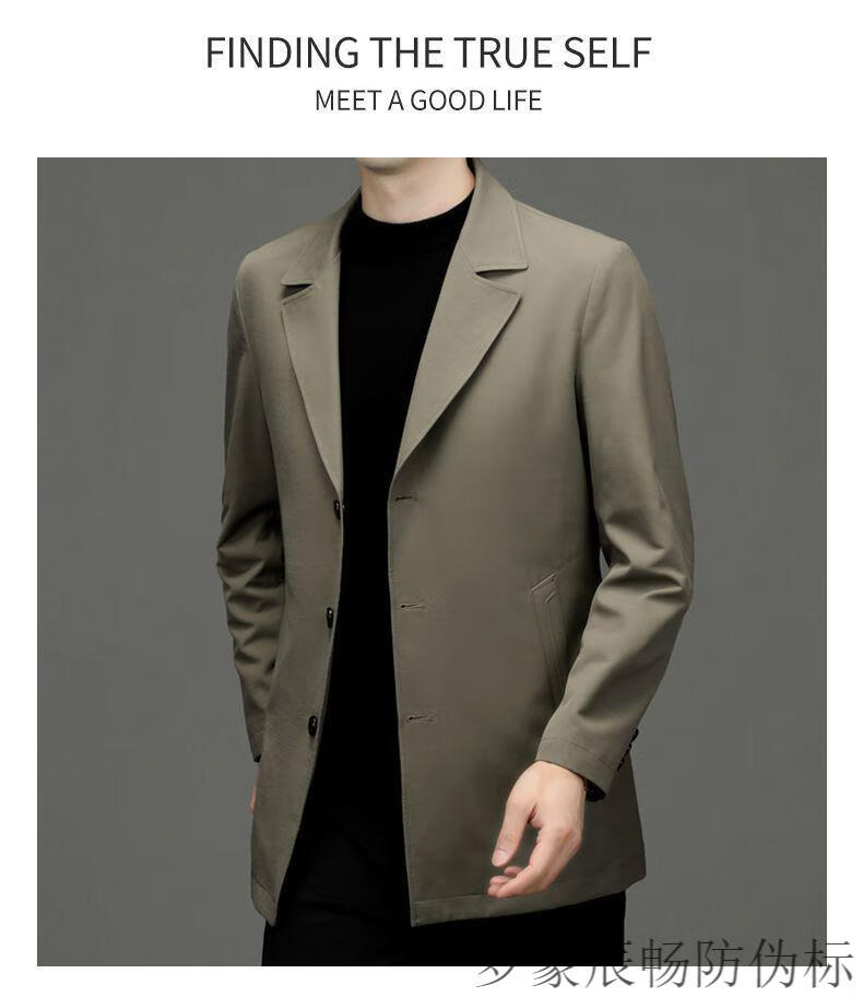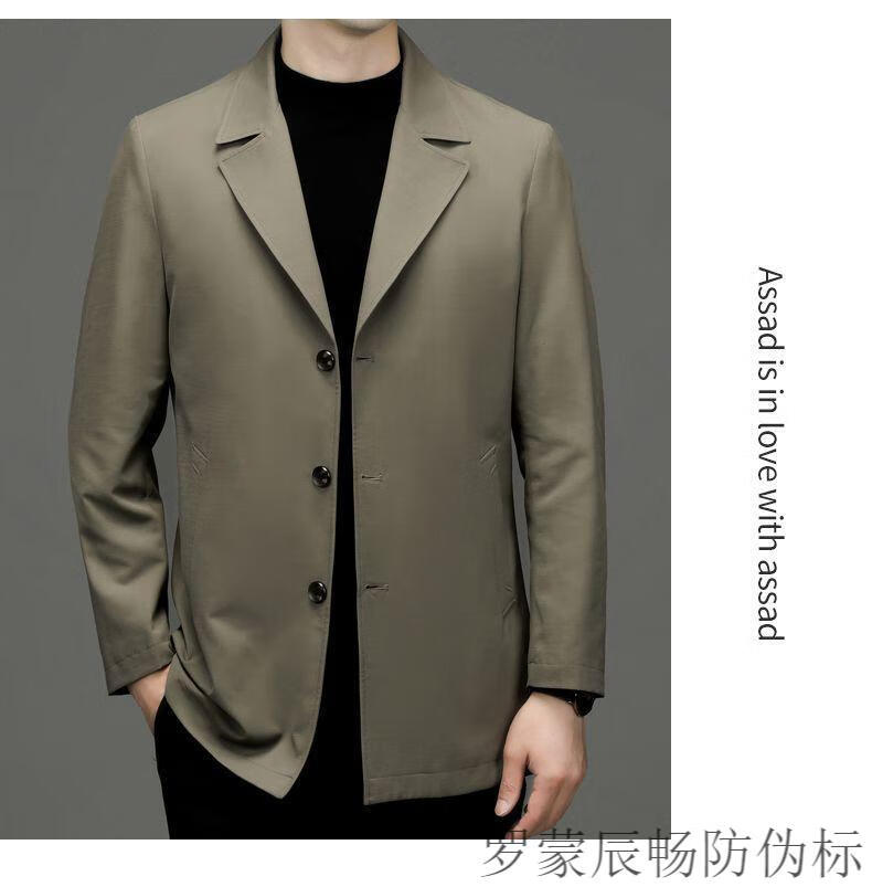 ROMON's new business windbreaker casual men's 2025 spring mid-length loose large size suit top men's jacket men's khaki 2XL (recommended 150-170Jin Jin equals 0.5 kg)