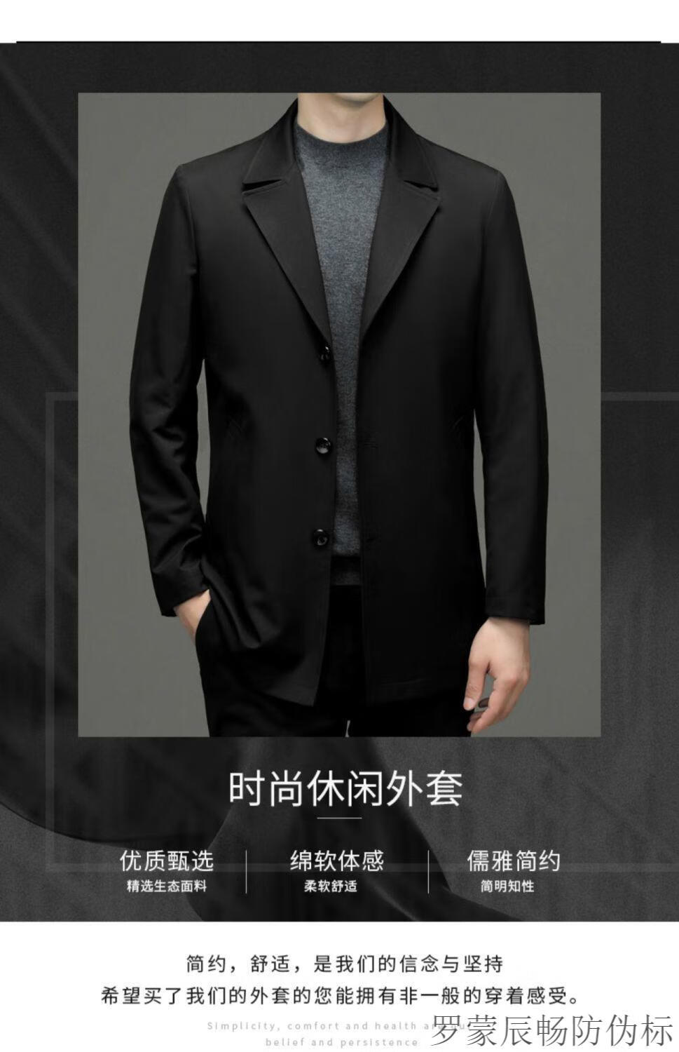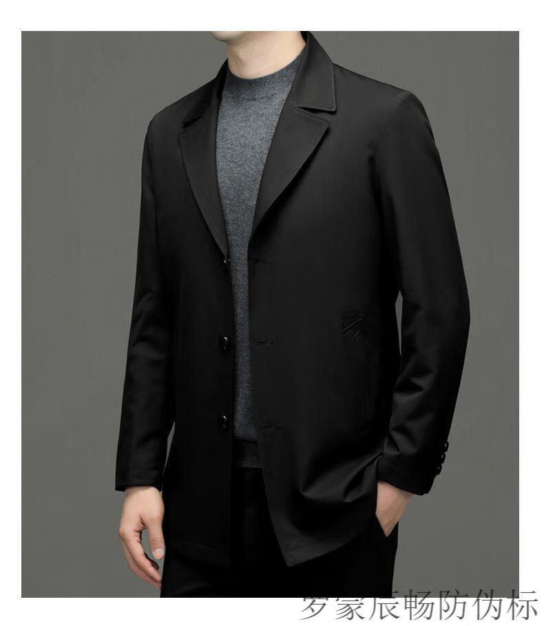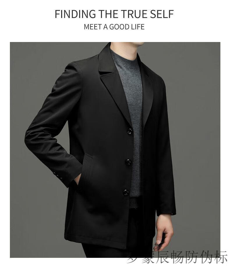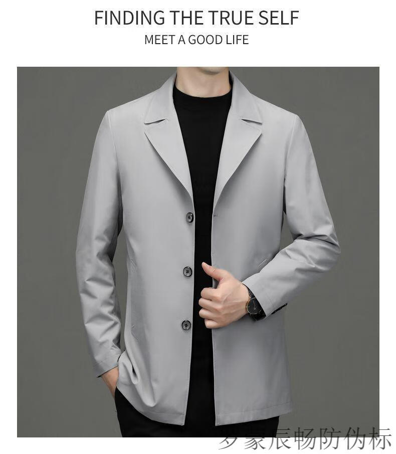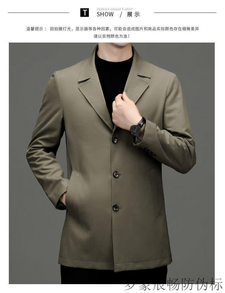 ROMON's new business windbreaker casual men's 2025 spring mid-length loose large size suit top men's jacket men's khaki 2XL (recommended 150-170Jin Jin equals 0.5 kg)