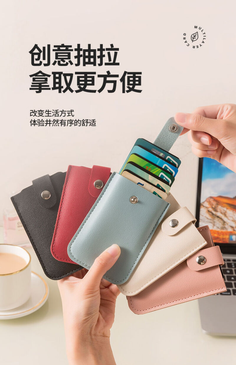 Pull-out card holder, ID card protective cover, bank card holder, multiple card slots, portable ultra-thin small card holder, black 1 piece