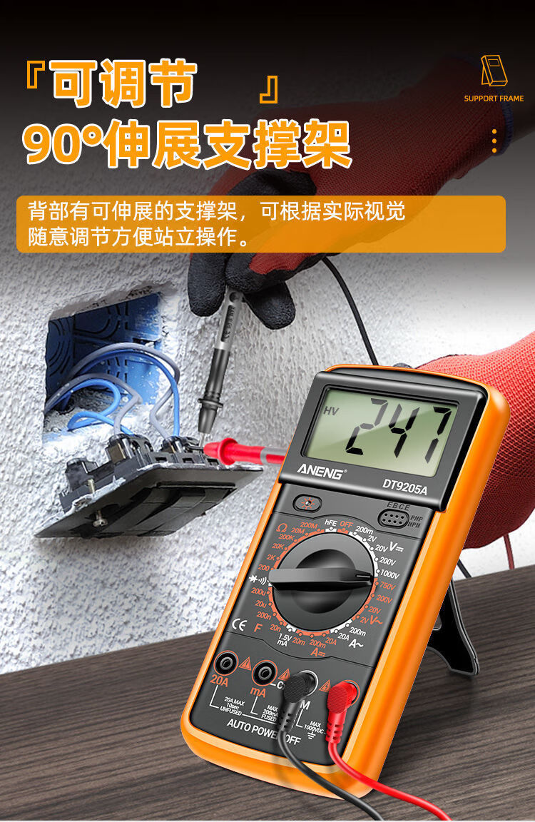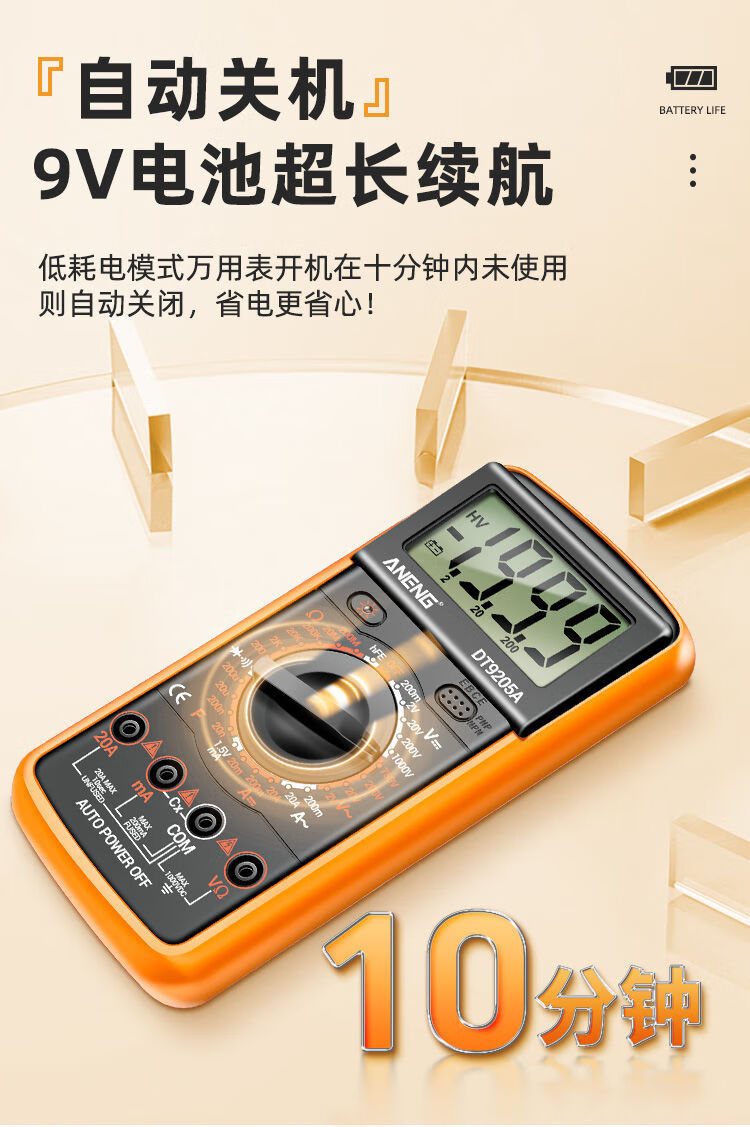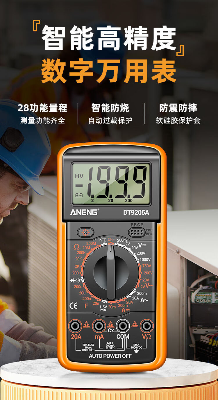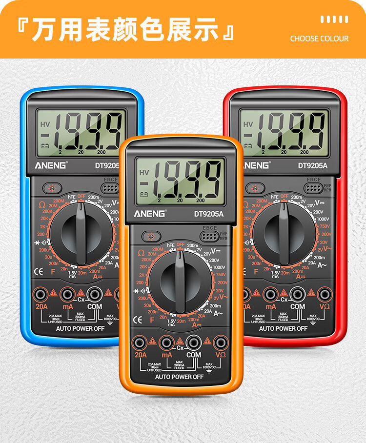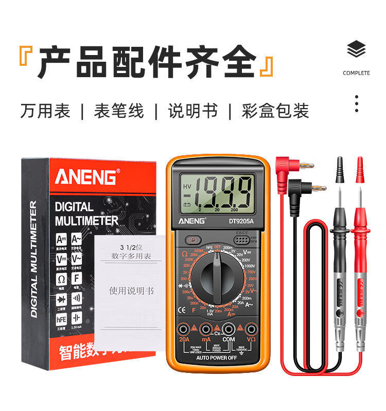 炫咔仕数字万用表高精度电工维修电压电流万用电表智能防烧表9205A 830B【无蜂鸣】 标配【万用表+表笔+9V电池】