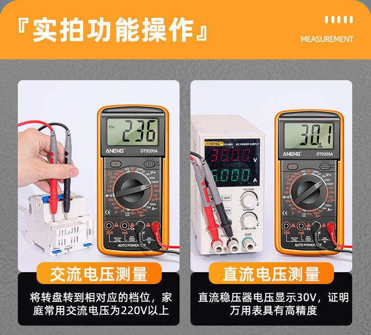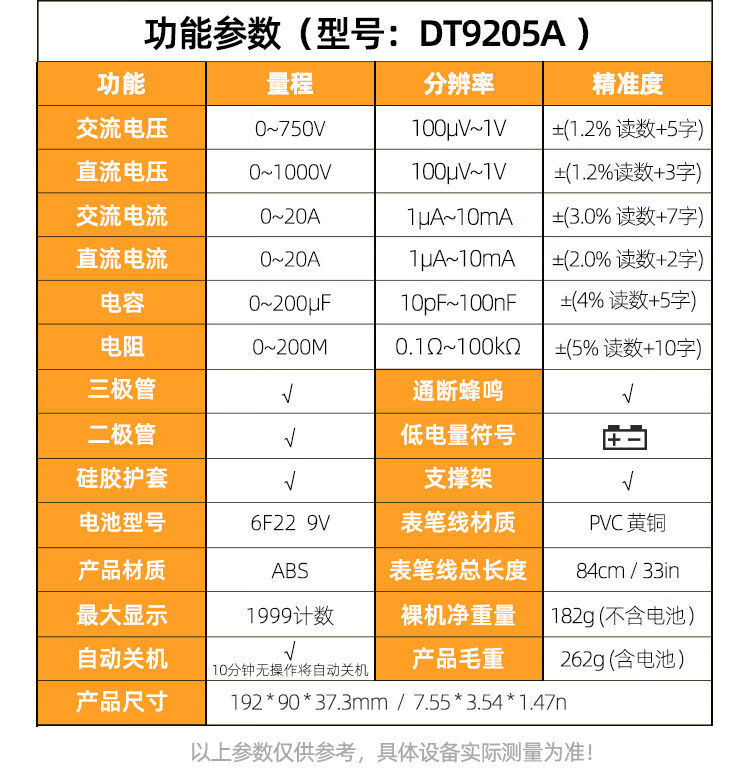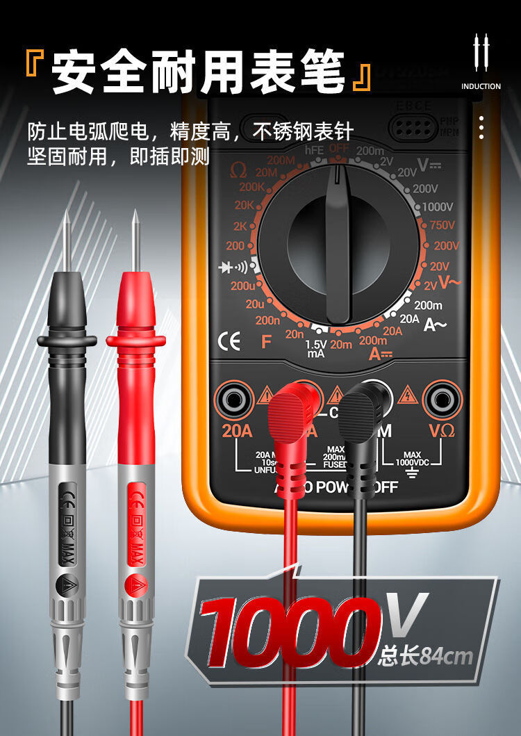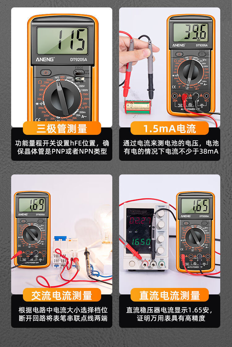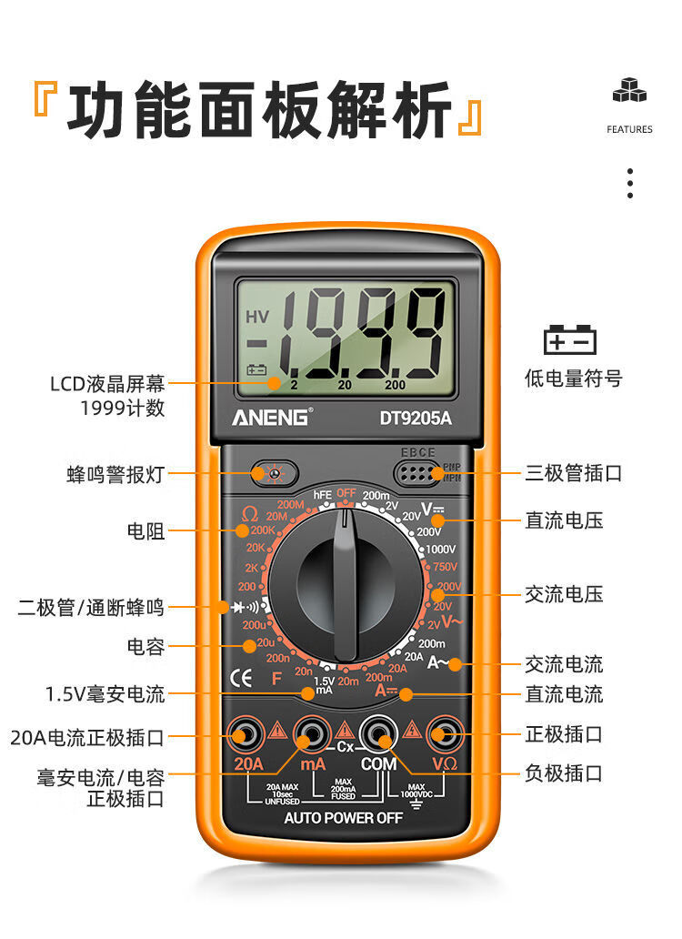 炫咔仕数字万用表高精度电工维修电压电流万用电表智能防烧表9205A 830B【无蜂鸣】 标配【万用表+表笔+9V电池】