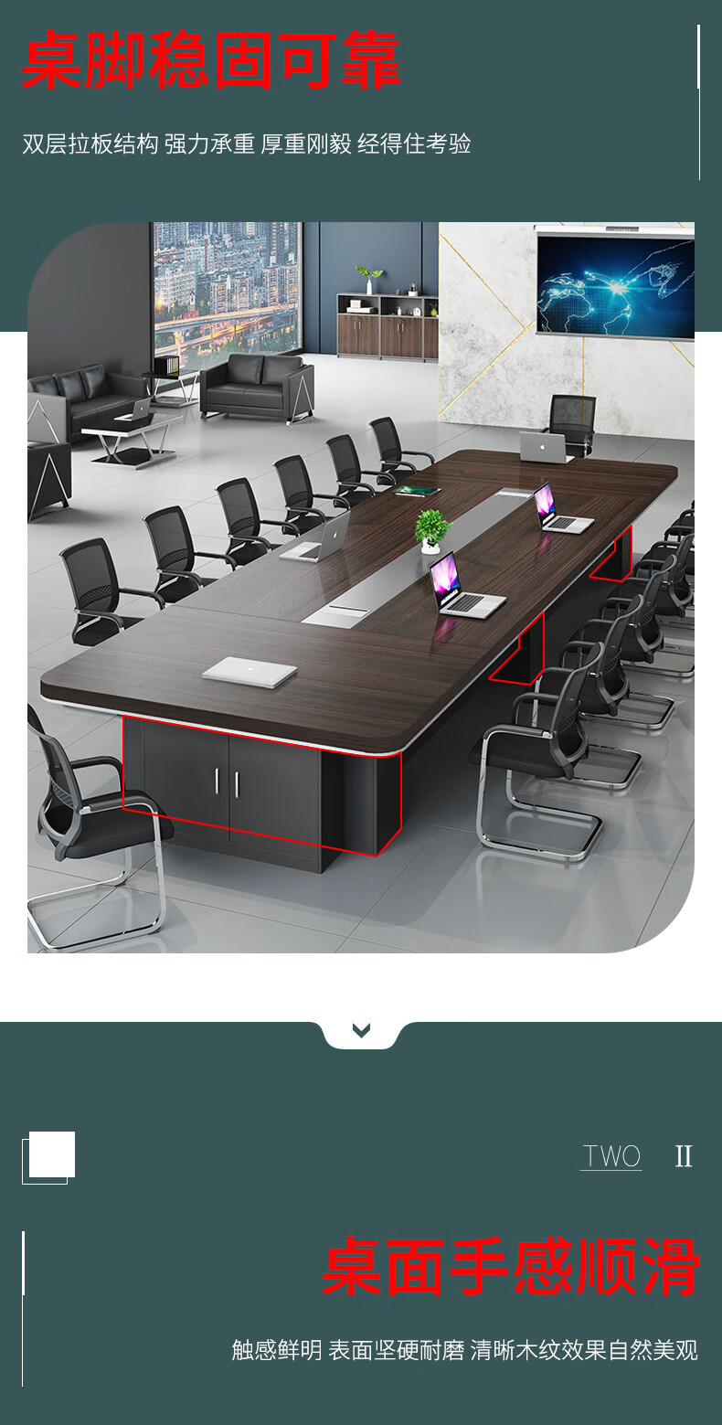 Litang large conference table conference room high-end long table simple modern light luxury office negotiation reception table and chair combination 1392 people have selected 4.5 meters + 16 matching chairs