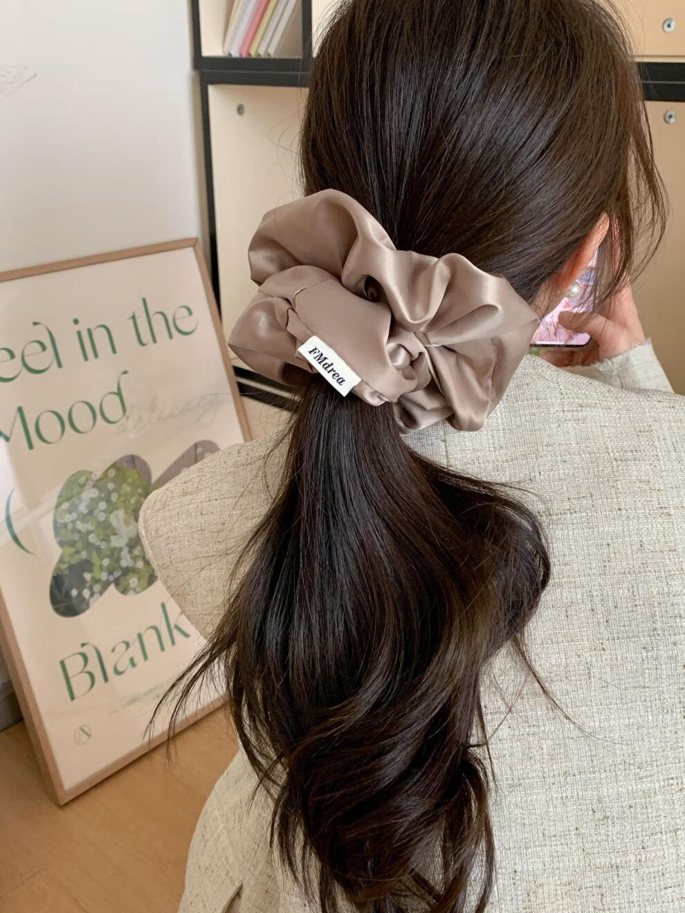 Abak einfacher, extra großer Satin-Haargummi aus Schweinedarm, hochwertiger, langlebiger Fettdarmring, koreanischer Stil, Super-Fee-Haarschmuck, Haarseil 3892-3-Khaki, extra großer Satin-Haargummi
