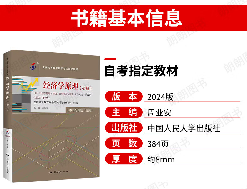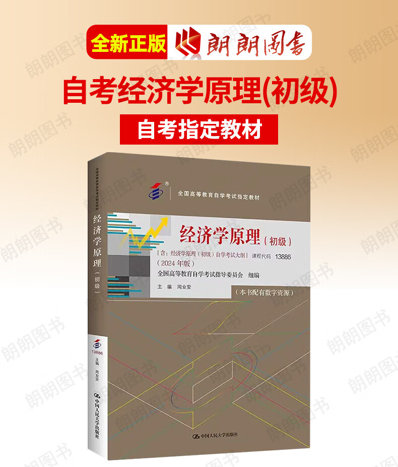 【官方正版】自考教材13886经济学原理(初级) 周业安2024版中国人民大学出版社自学考试大纲指定专用书籍高等成人教育送电子历年真题仰读图书 13886【24版教材】1本