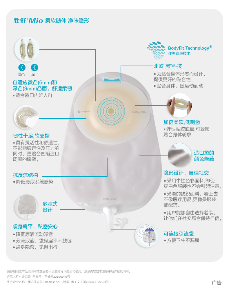 康乐保【康乐保】胜舒Mio一件式微凸/深凸尿路造口袋/16867 1盒/10个16837微凸透明袋(可剪孔径10-4