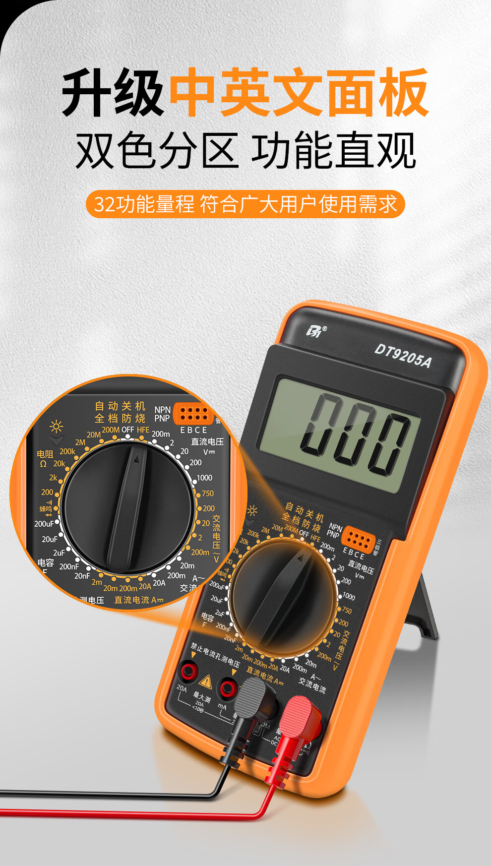 OUOETY高精度数字万用表防烧表电工专用智能维修便携式交直流万用表 HB-DT9205A标配