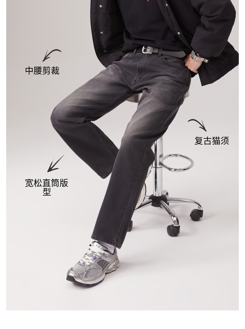 Levi's李维斯冬暖系列男士551Z直筒宽松休闲怀旧复古保暖牛仔裤 黑色 32 (32)