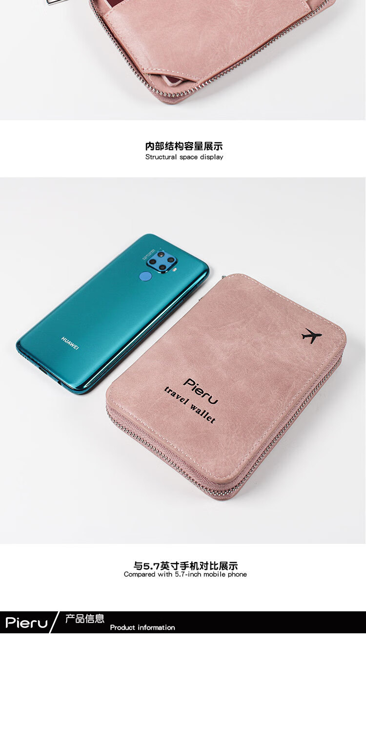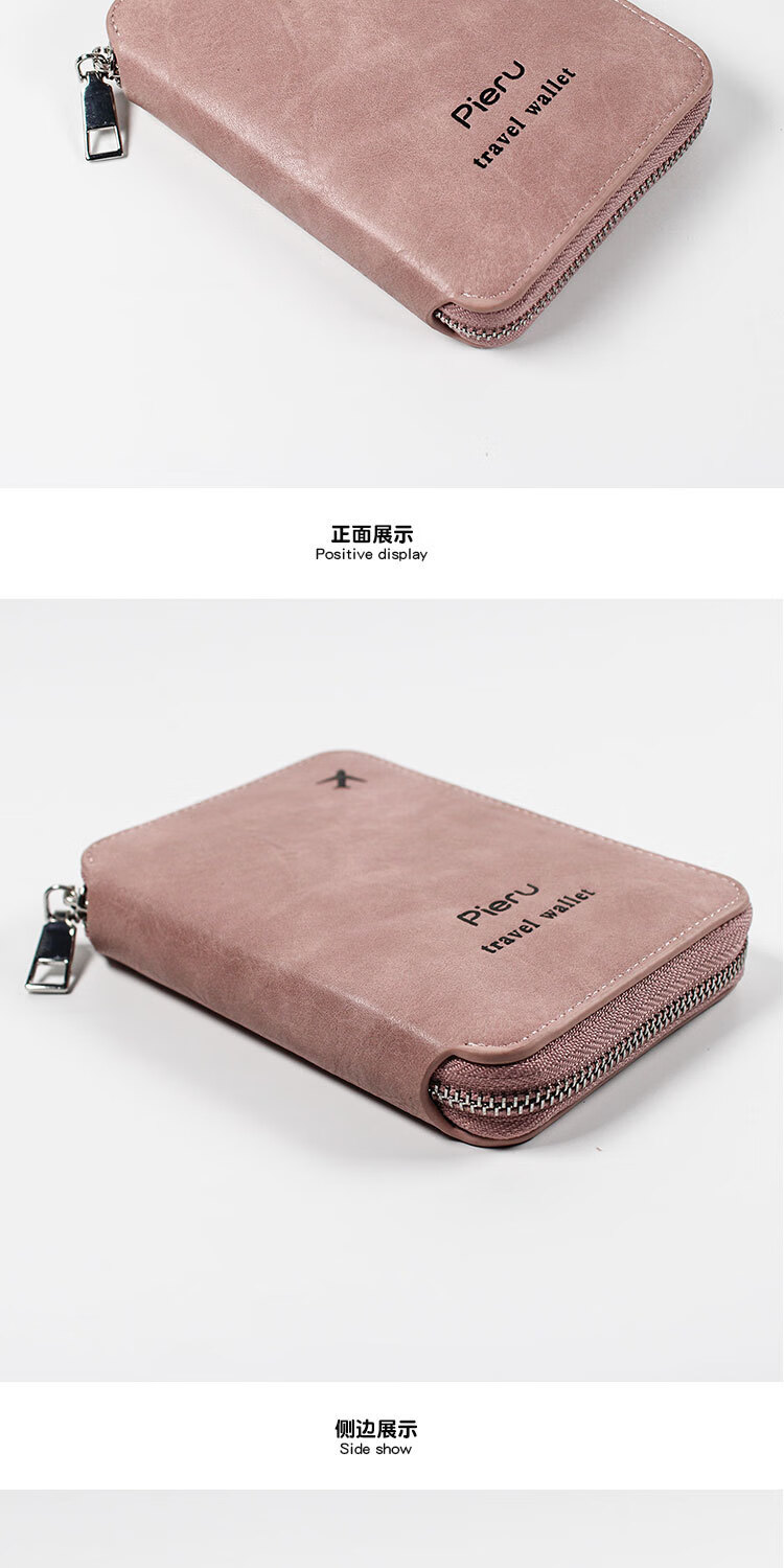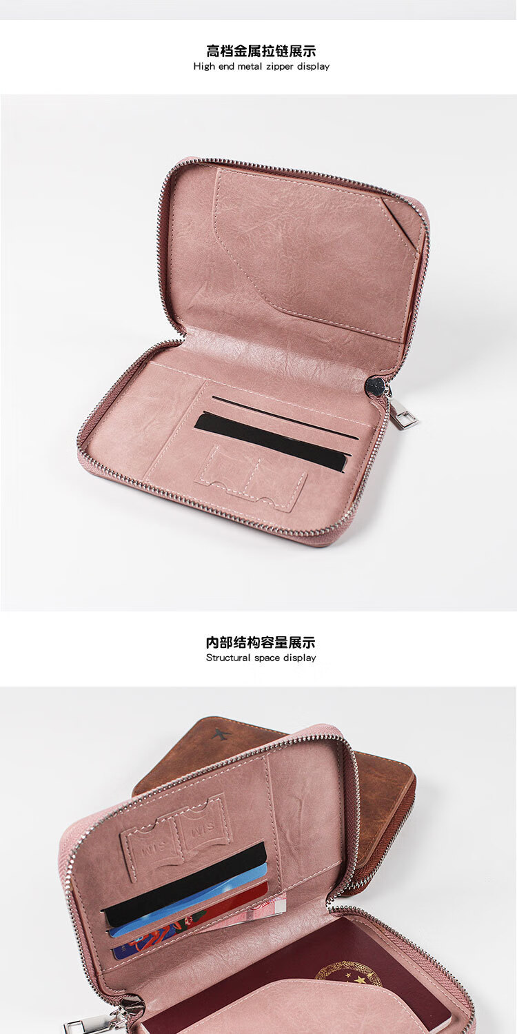 GPHF日本多功能防盗刷护照夹证件卡包旅行拉链机票男女士钱包护照包套 粉色1