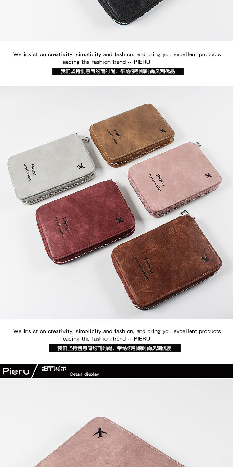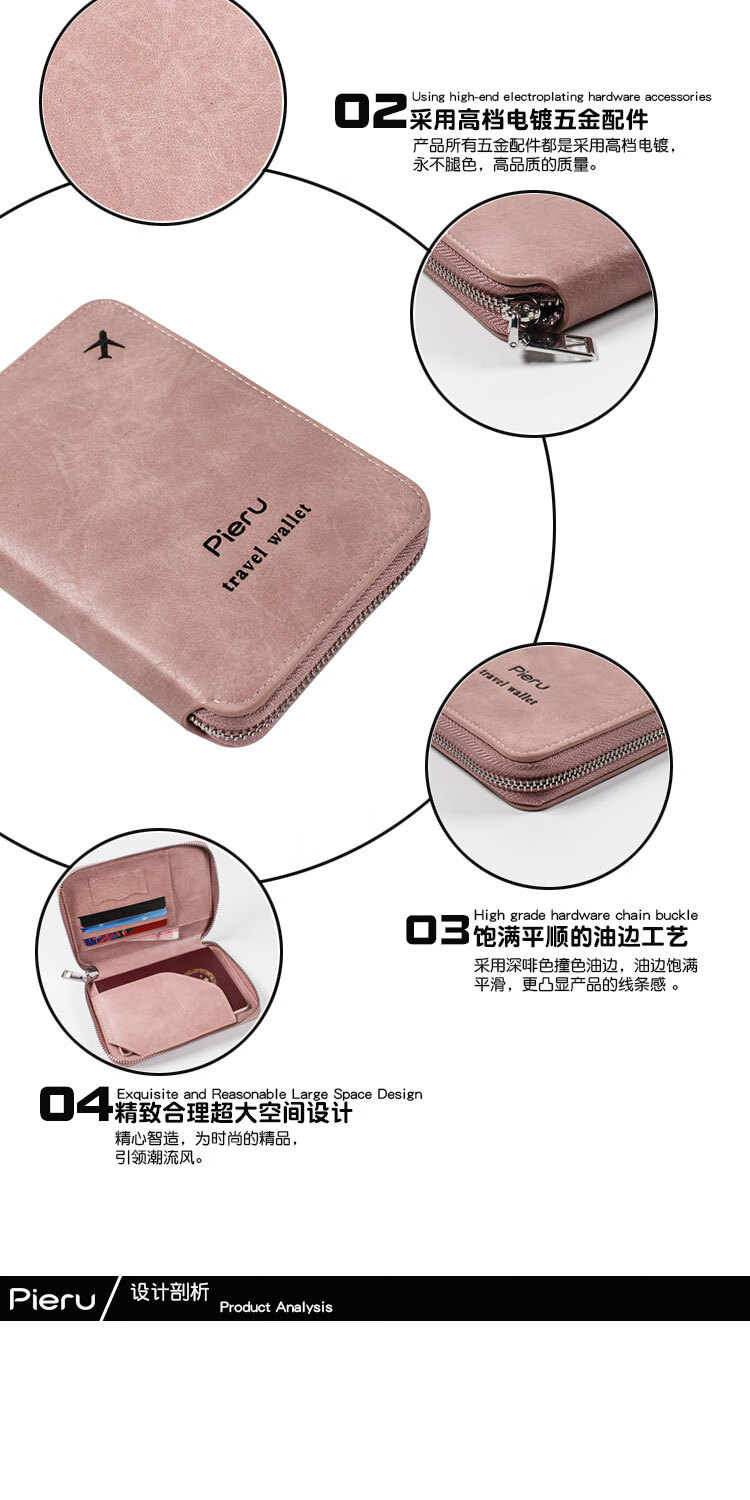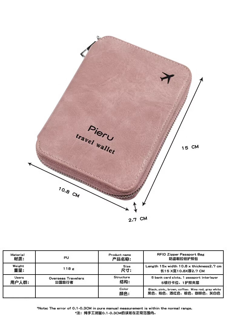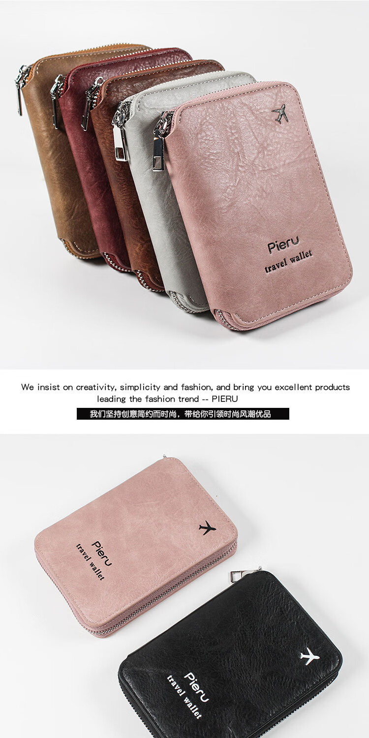 GPHF日本多功能防盗刷护照夹证件卡包旅行拉链机票男女士钱包护照包套 粉色1