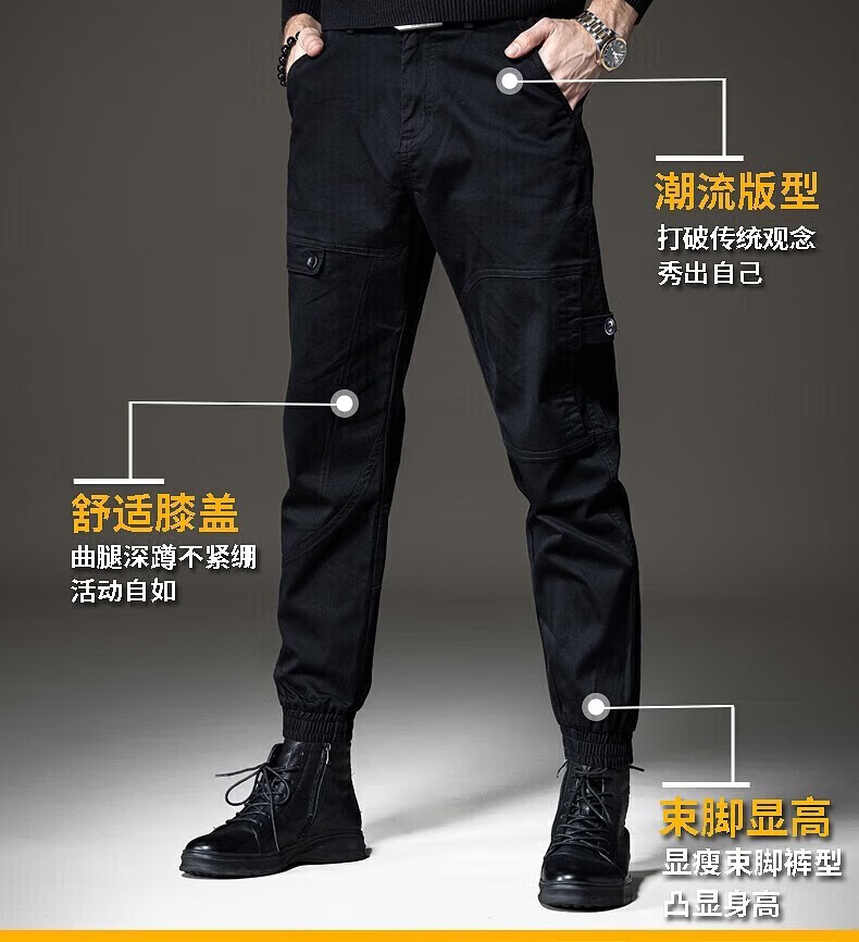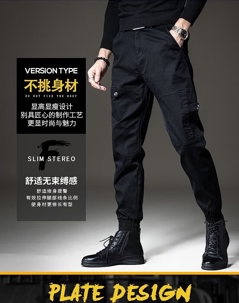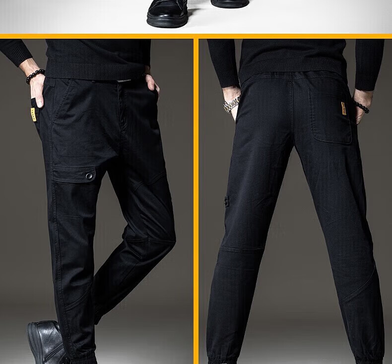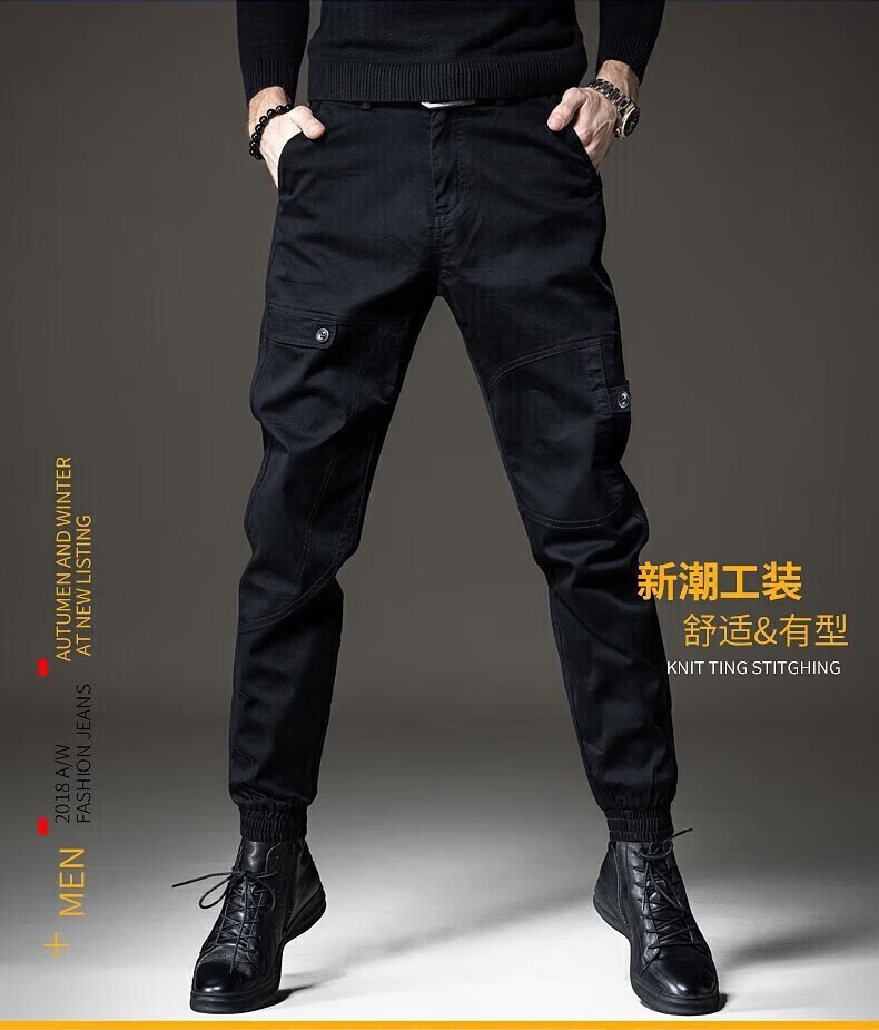 新百伦春秋季高端工装休闲裤男宽松大码男士潮牌哈伦直筒束脚裤子男 黑色 常规 3XL (适合175-190斤)