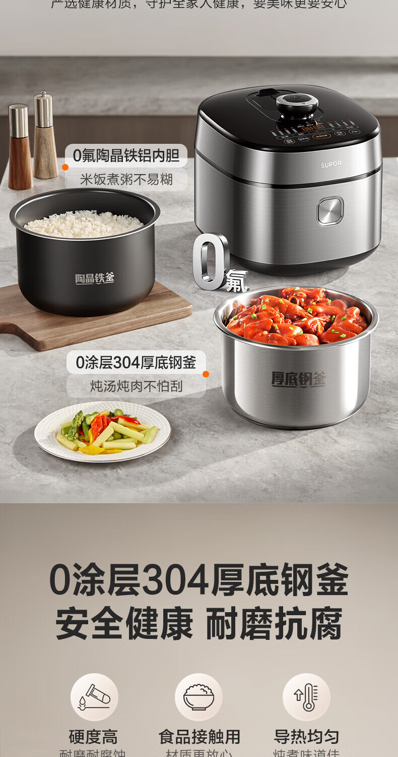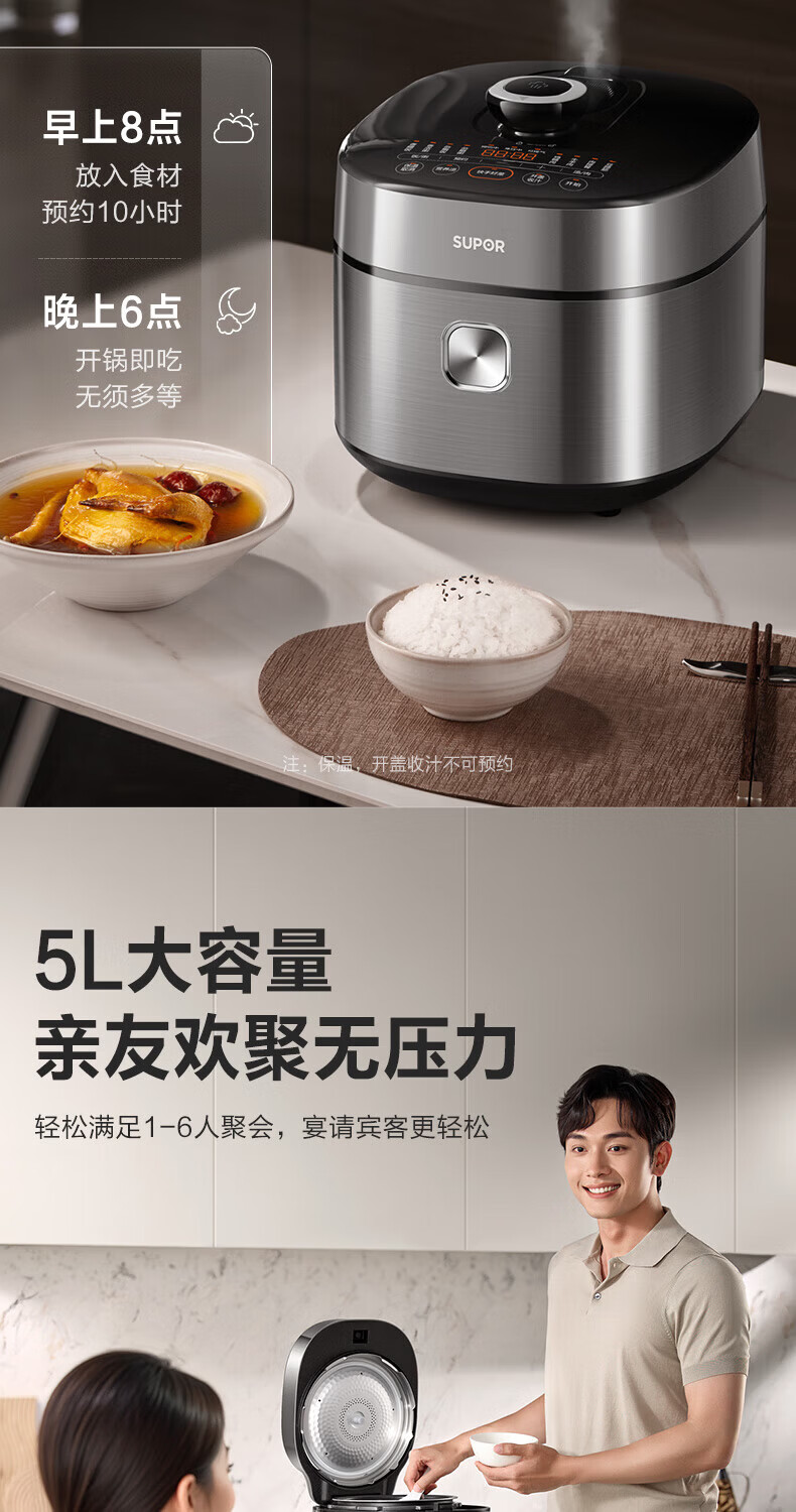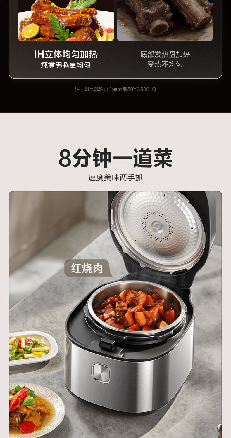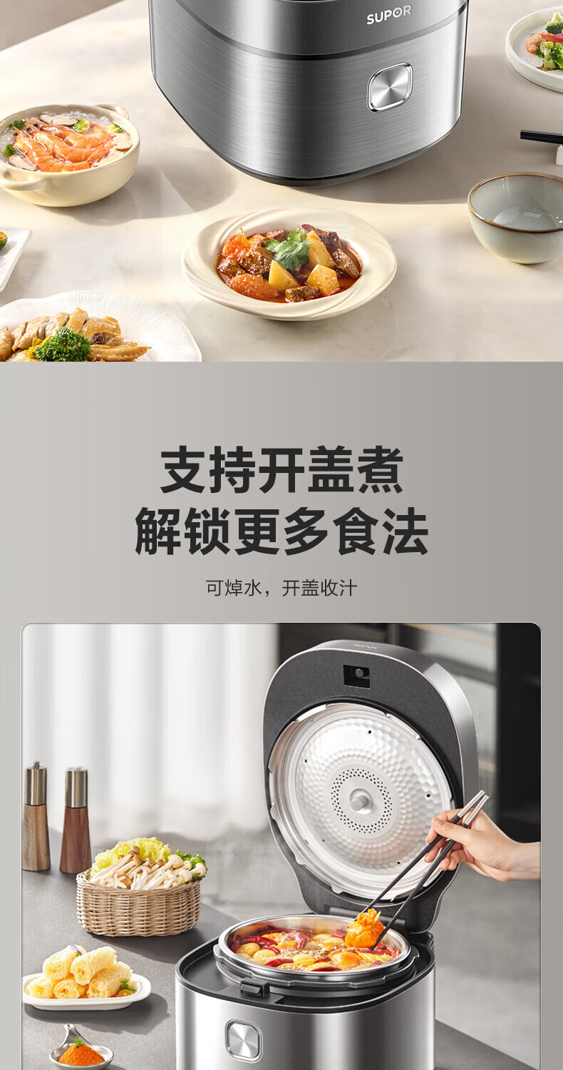 苏泊尔(SUPOR)小方厨IH电压力锅5L智能预约8分钟快速菜0涂层0氟电饭煲猛火高压锅4-6人家用 SY-50YC5010/ 5L /0涂层内胆