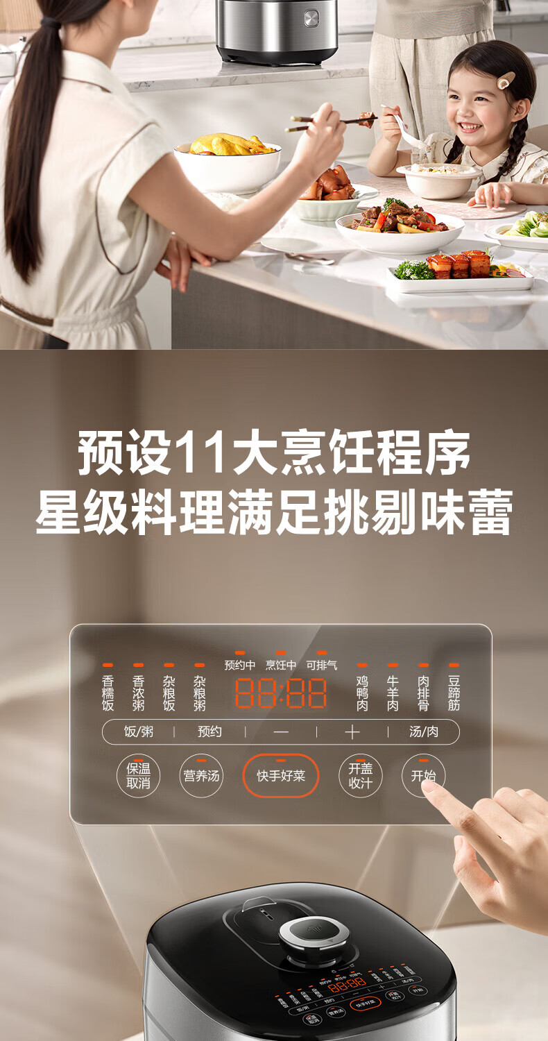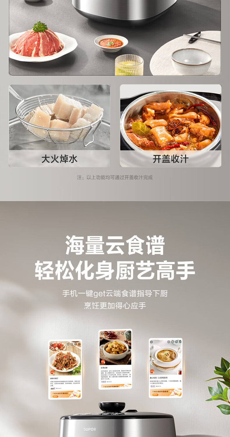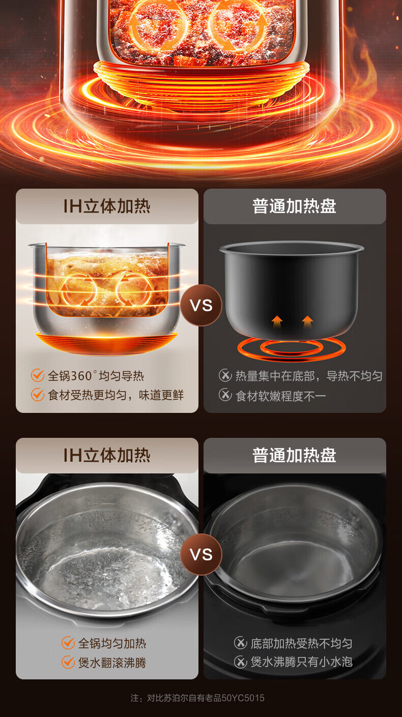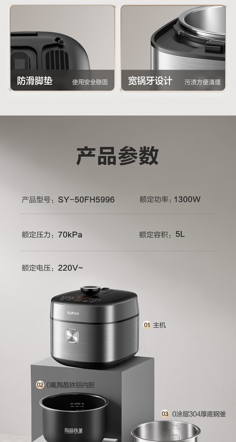 苏泊尔(SUPOR)小方厨IH电压力锅5L智能预约8分钟快速菜0涂层0氟电饭煲猛火高压锅4-6人家用 SY-50YC5010/ 5L /0涂层内胆