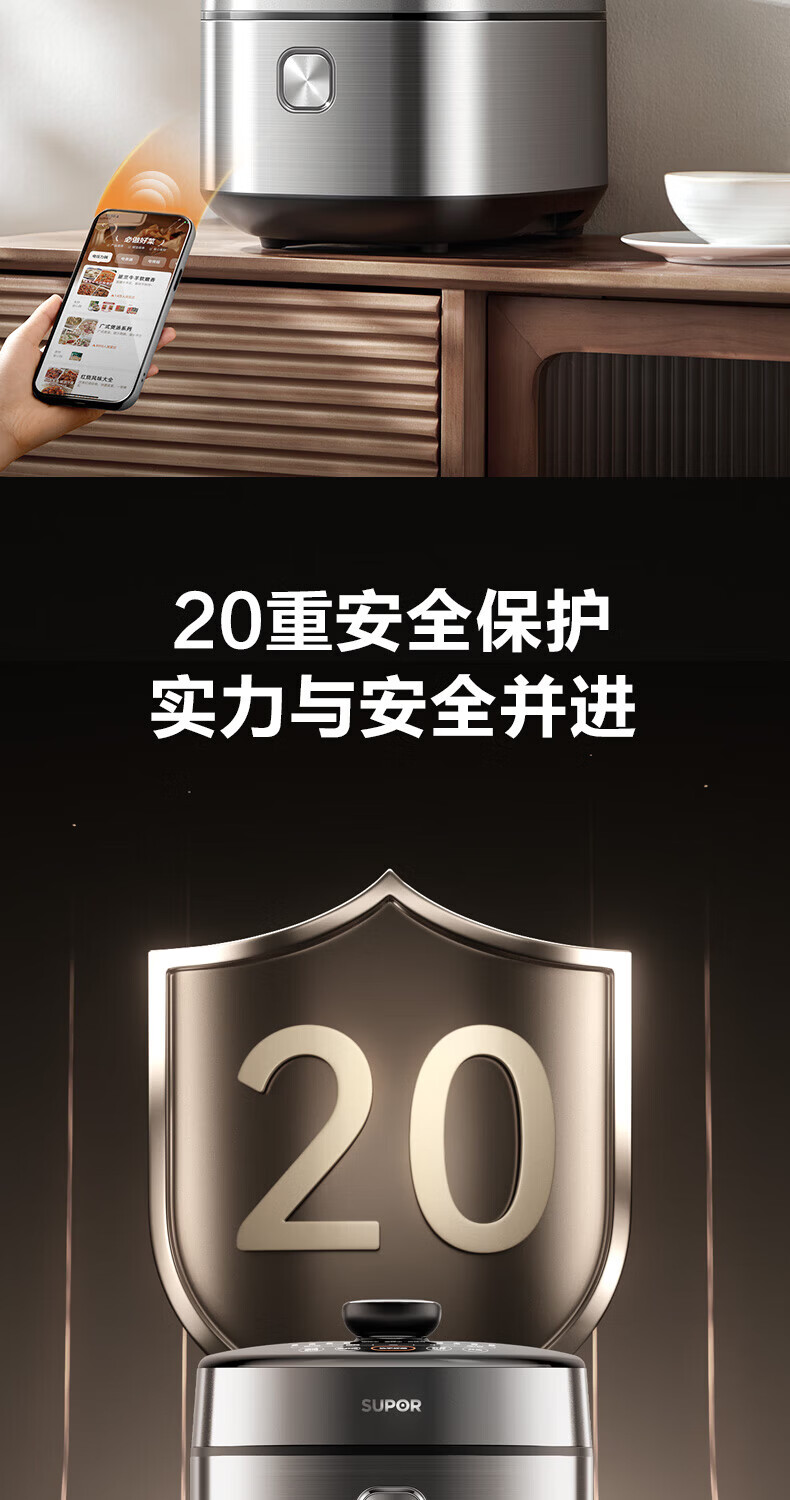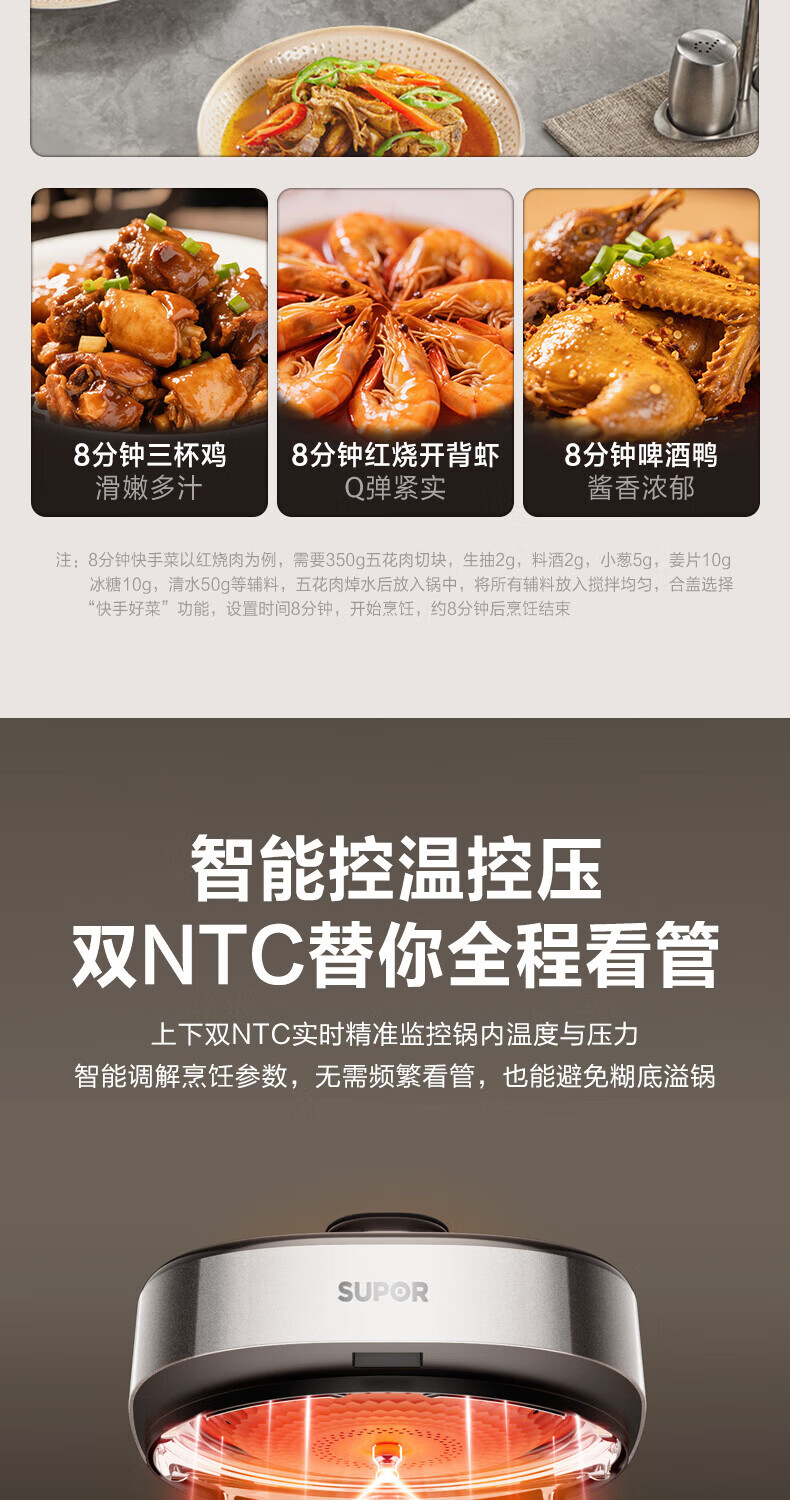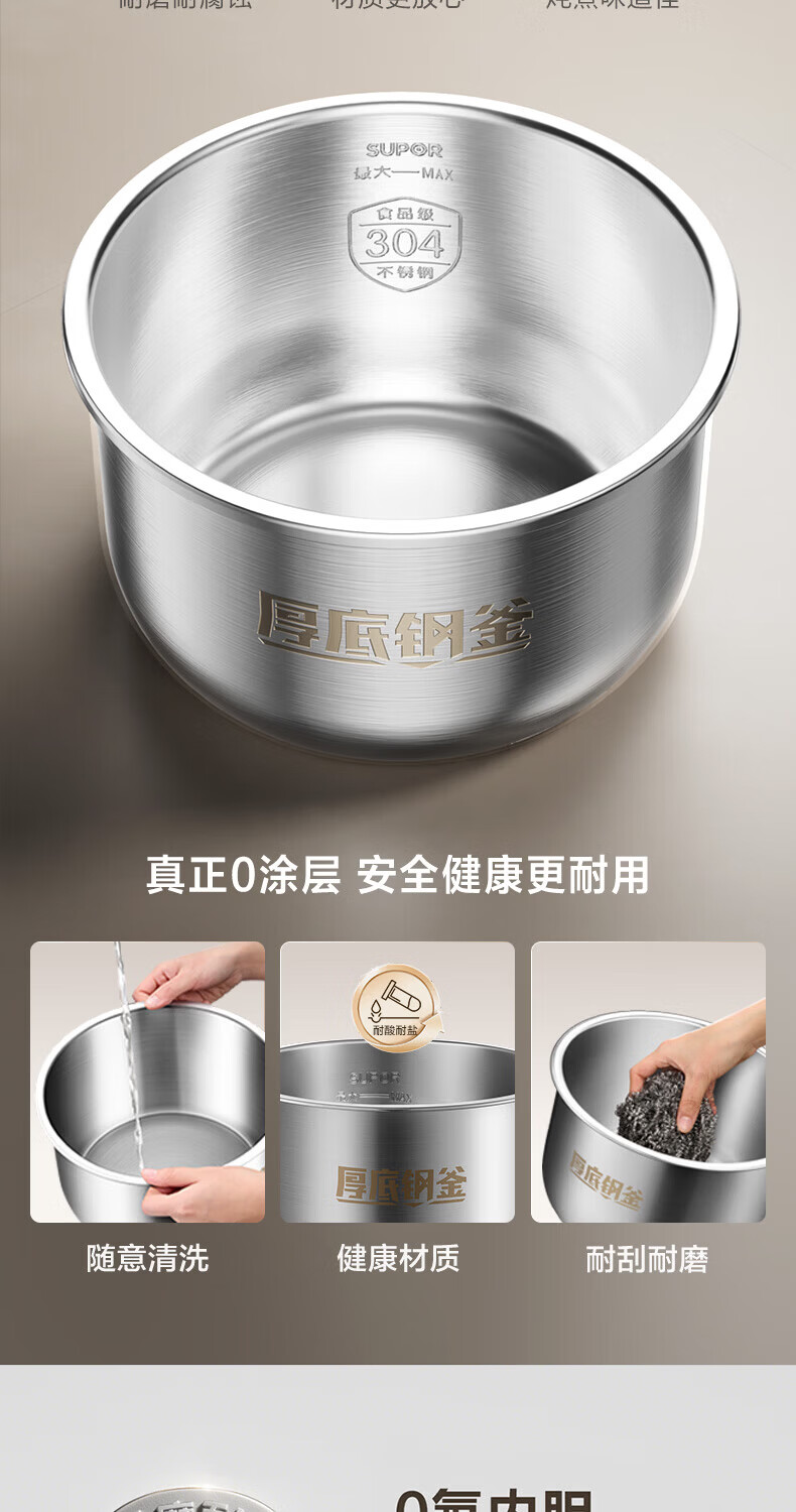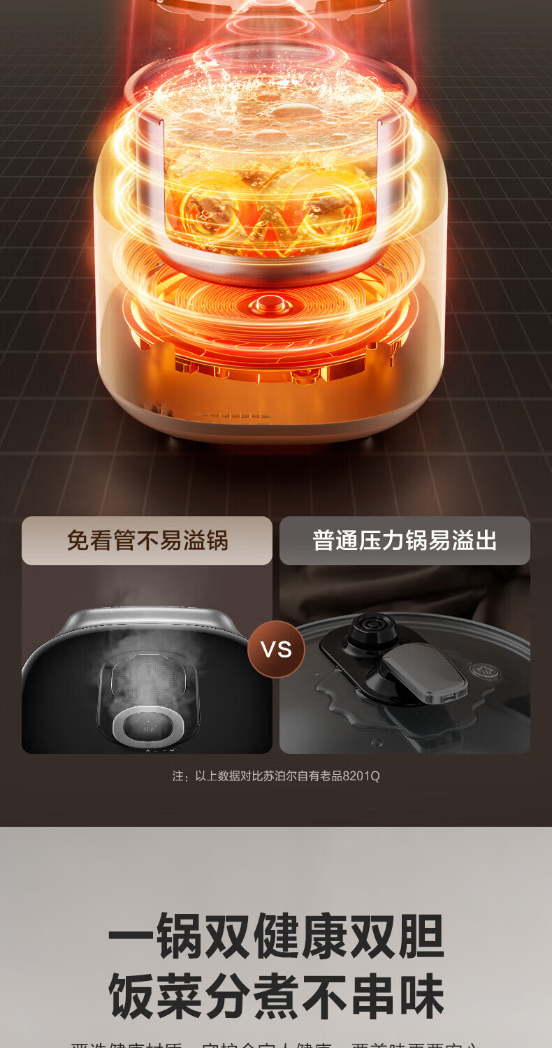 苏泊尔(SUPOR)小方厨IH电压力锅5L智能预约8分钟快速菜0涂层0氟电饭煲猛火高压锅4-6人家用 SY-50YC5010/ 5L /0涂层内胆