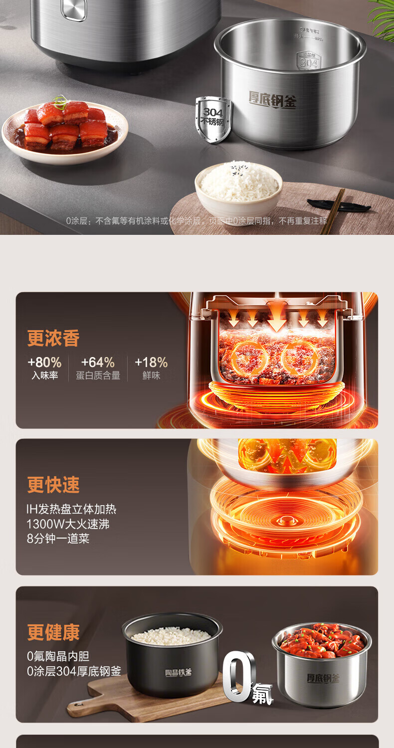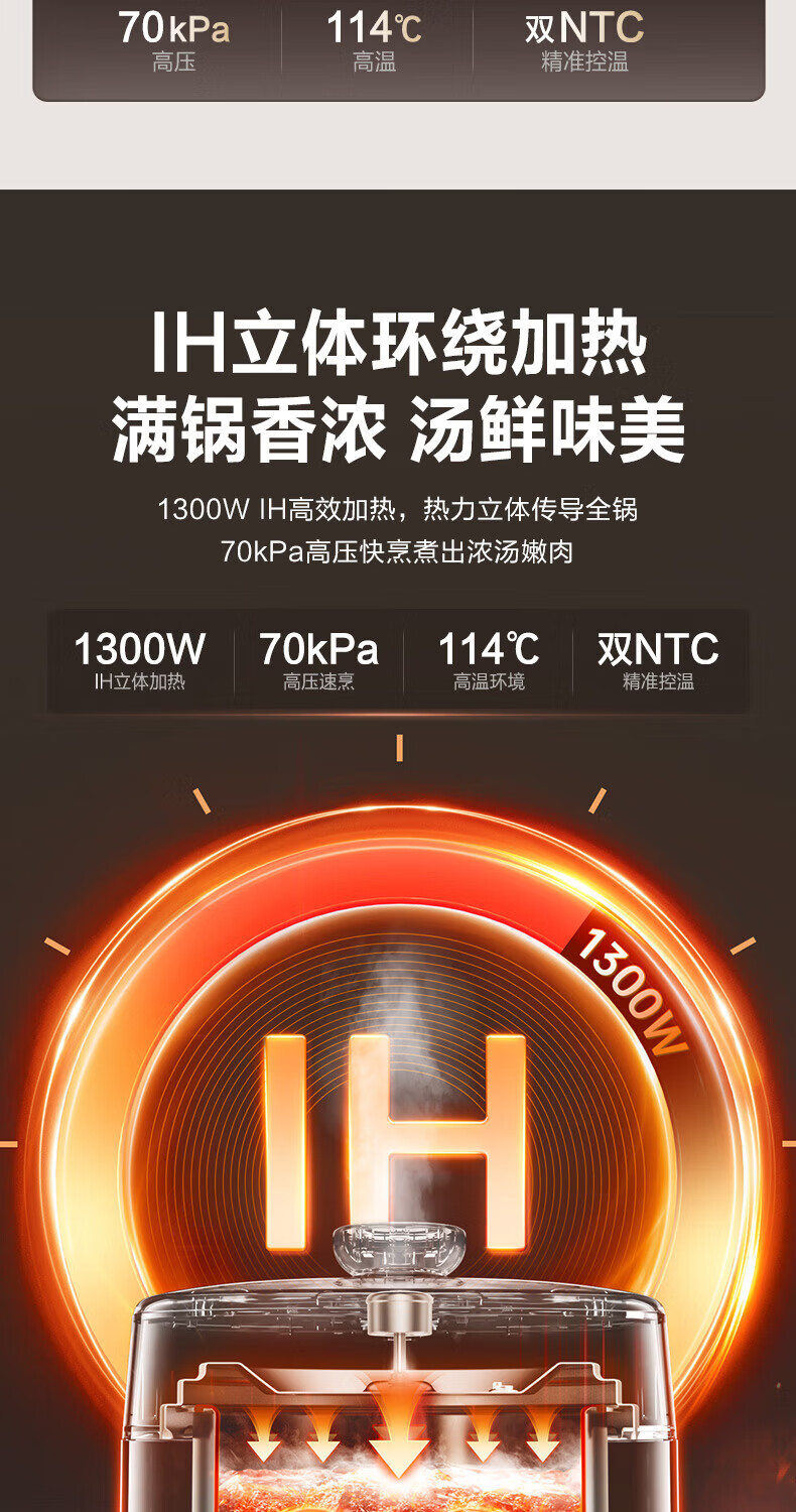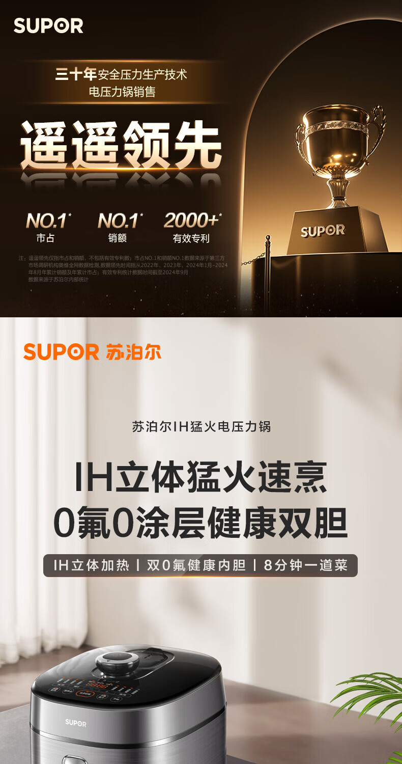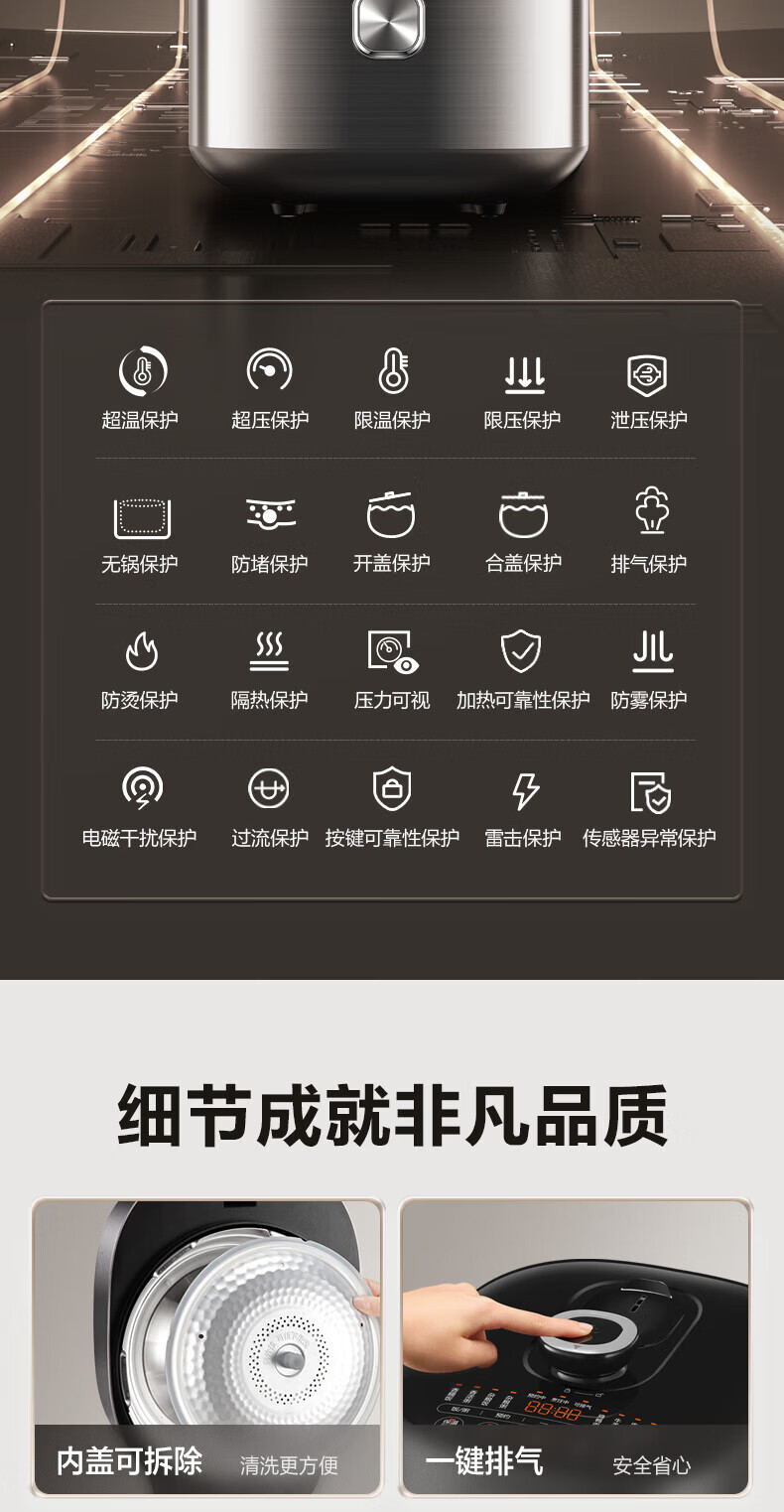 苏泊尔(SUPOR)小方厨IH电压力锅5L智能预约8分钟快速菜0涂层0氟电饭煲猛火高压锅4-6人家用 SY-50YC5010/ 5L /0涂层内胆
