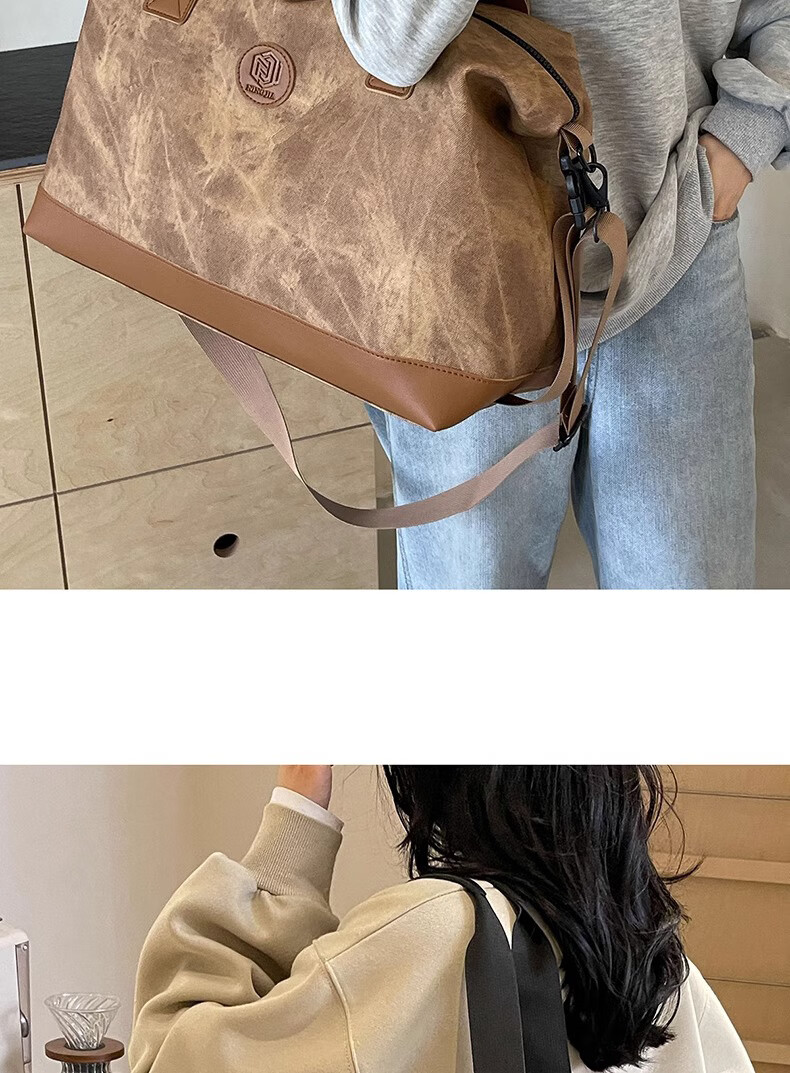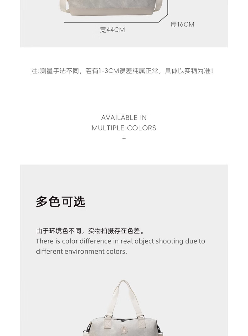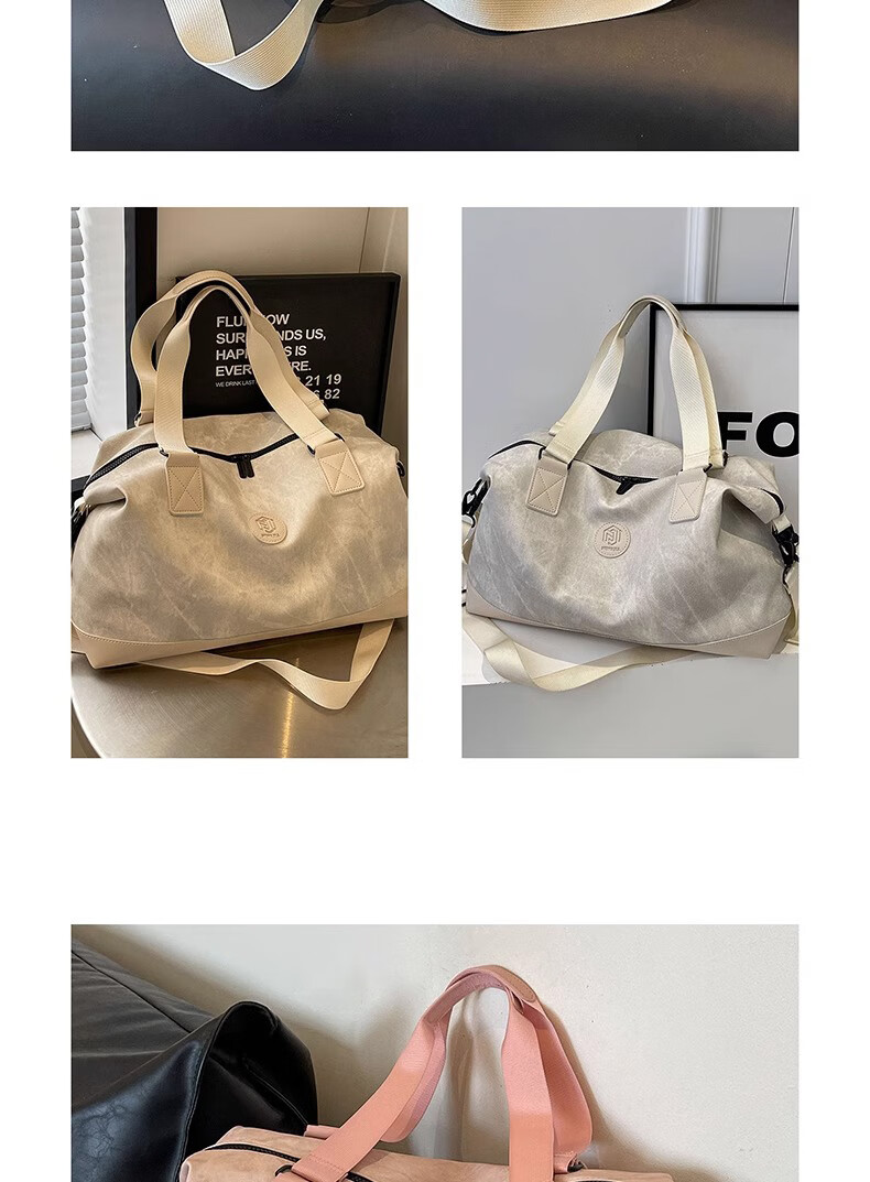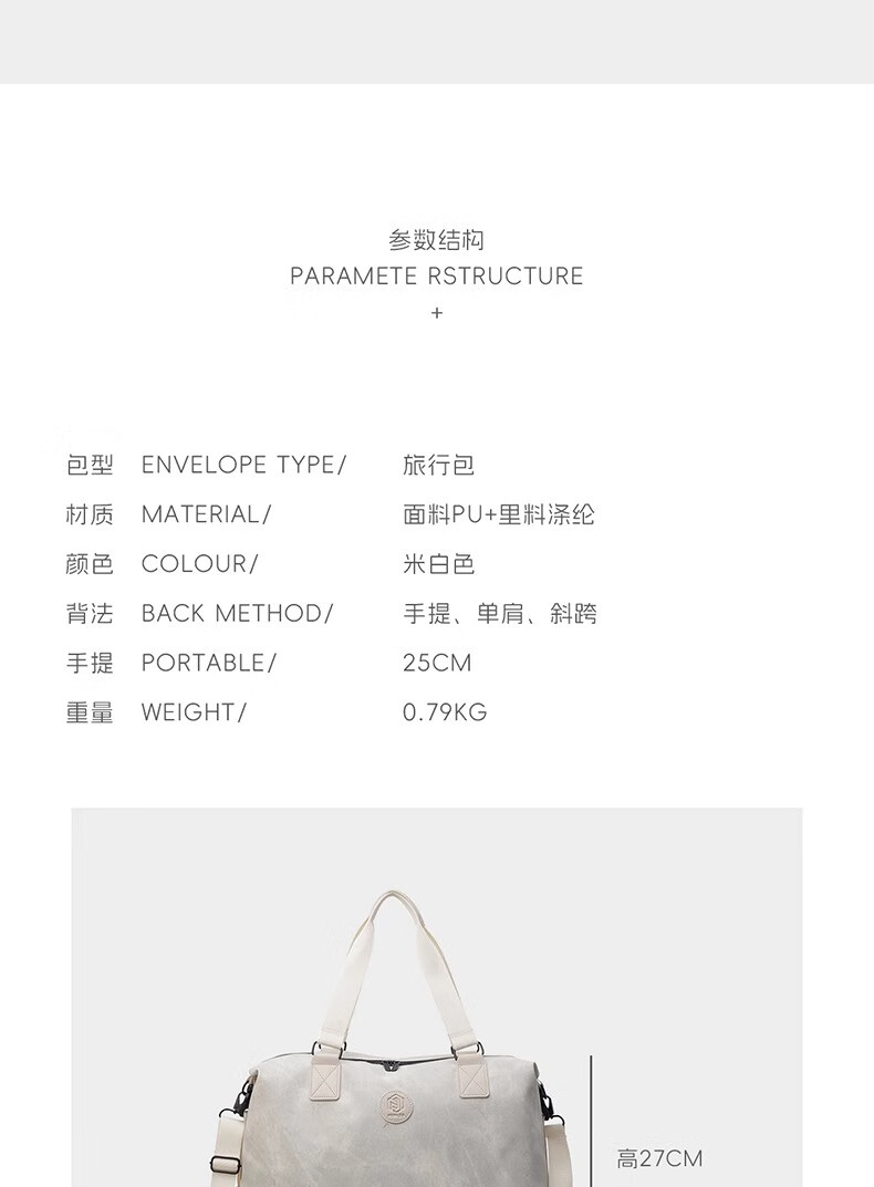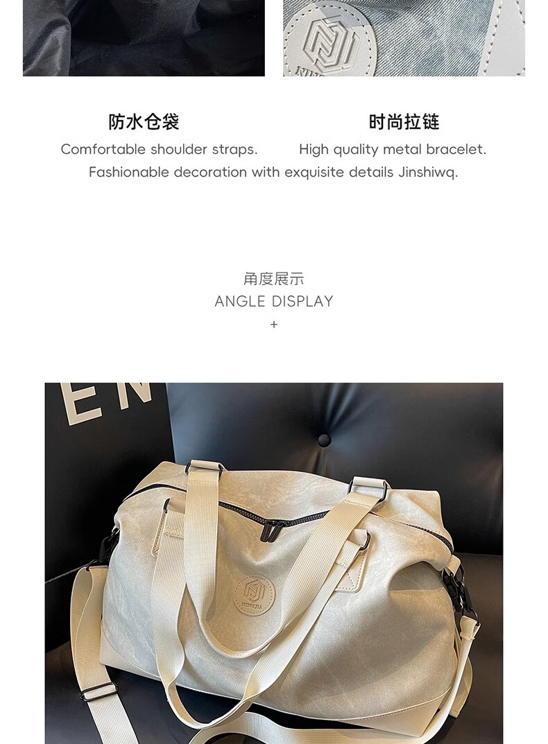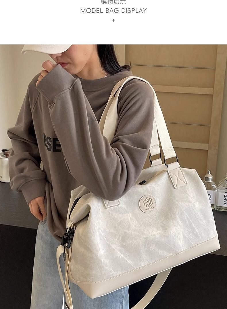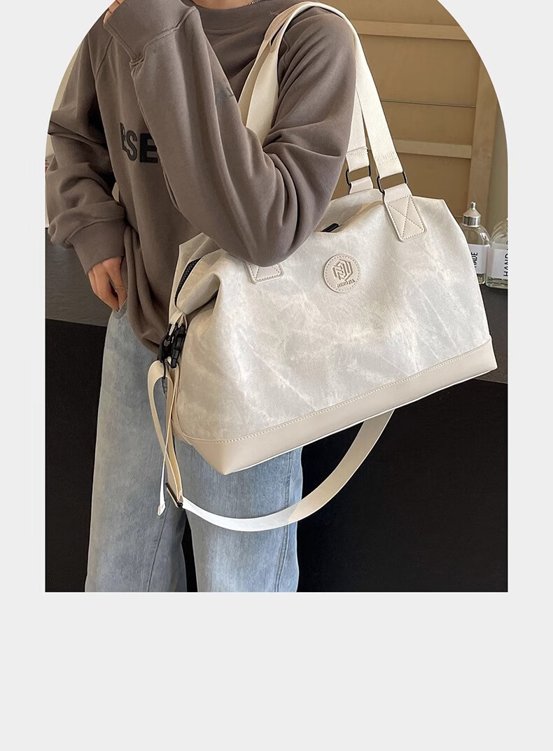尔山集短途旅行包女时尚手提大容量轻便行李袋外出收纳包出差便携行李包 旅行包【米白色】
