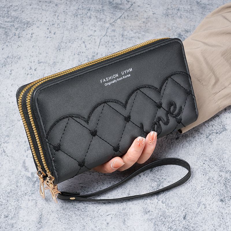 婵玥2024新款大容量钱包女长款韩版时尚多功能手拿包双拉链女士手机包 酒红