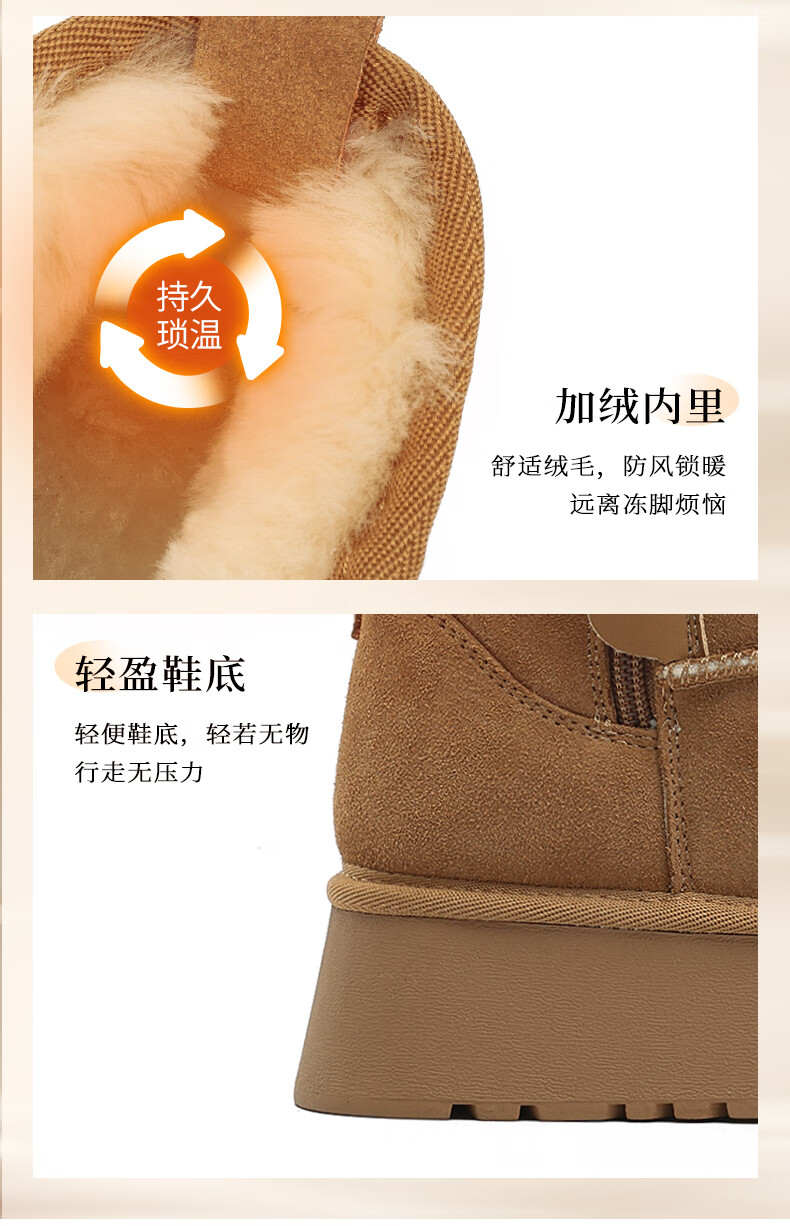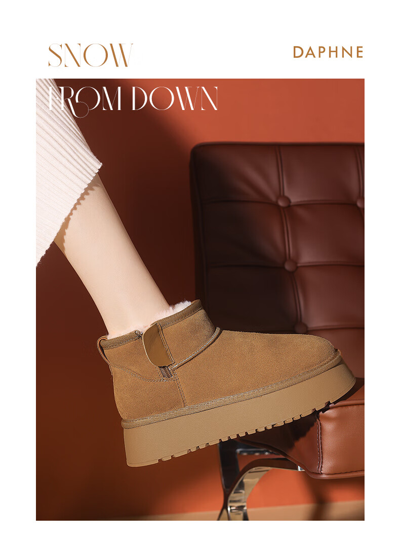 Daphne velvet snow boots for women winter 2024 new bread shoes thick-soled short boots plus velvet thickened anti-freeze cotton shoes for women, camel 5.0cm 35