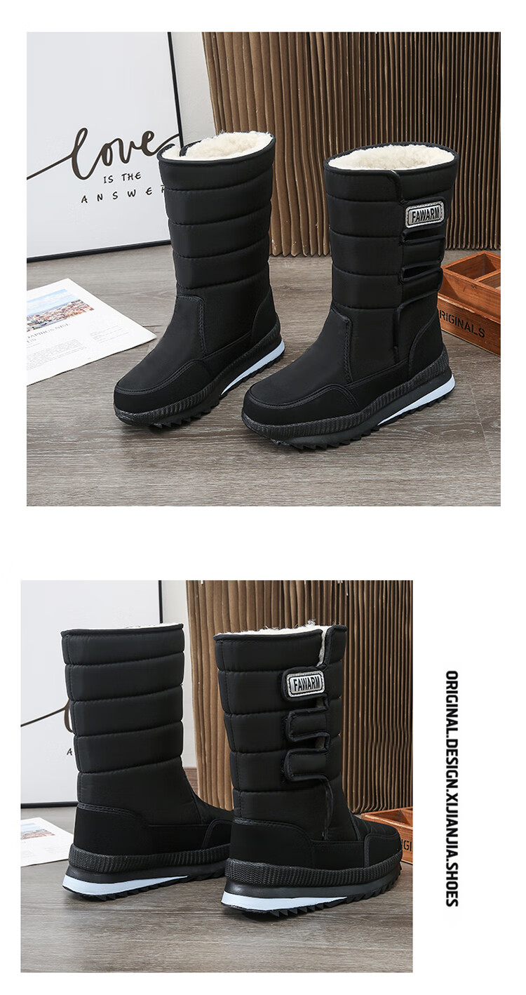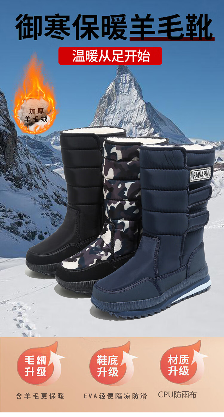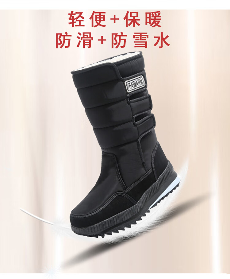 FAWARM保暖冬季长筒雪地靴耐磨加厚厚底防水中老年加绒软底时尚百搭棉靴 D05长筒兰色 40