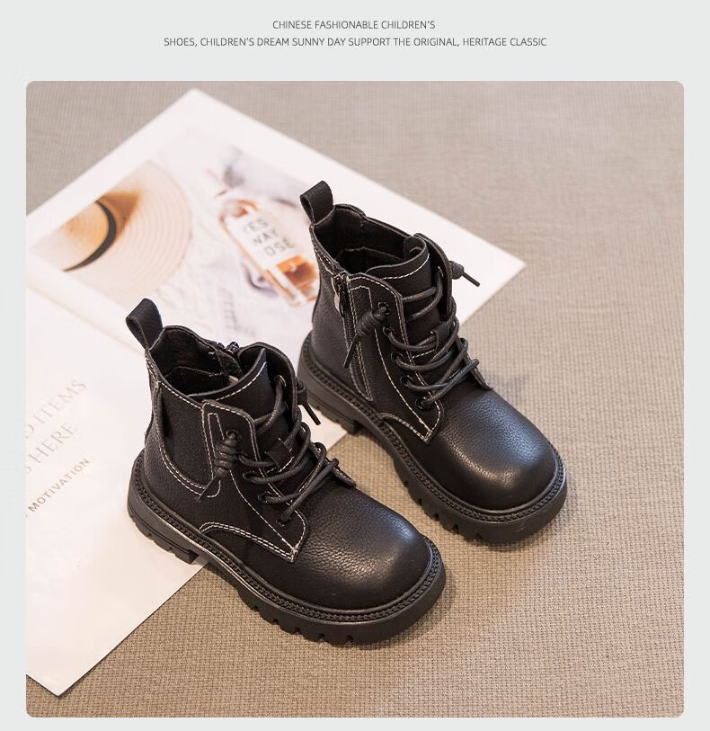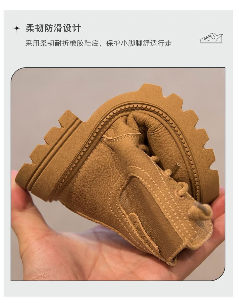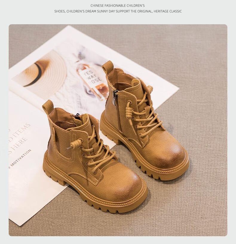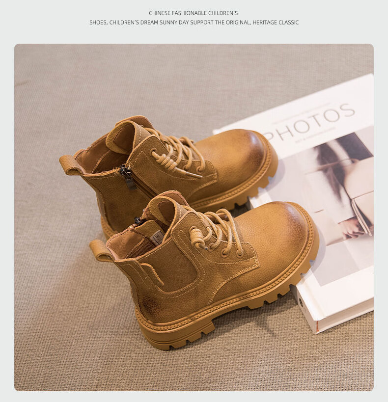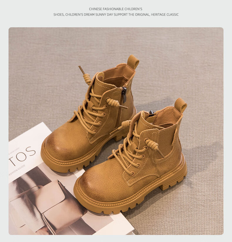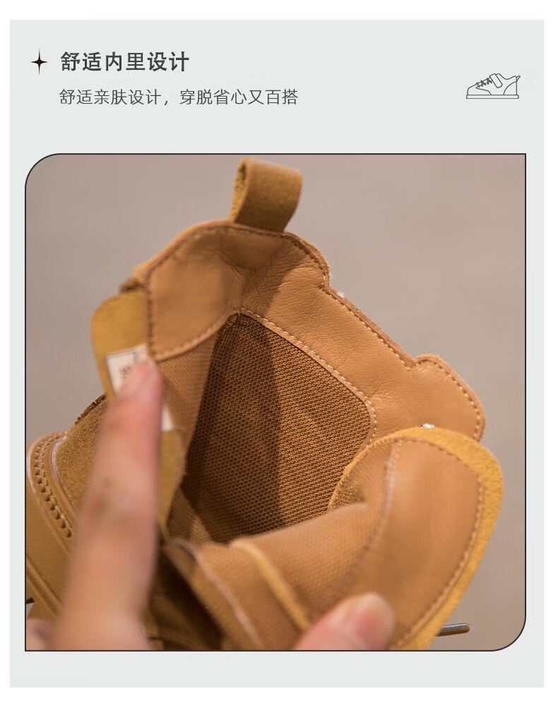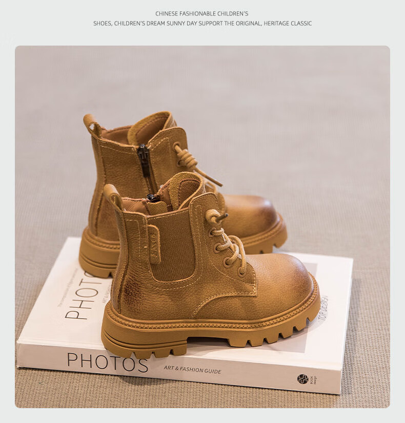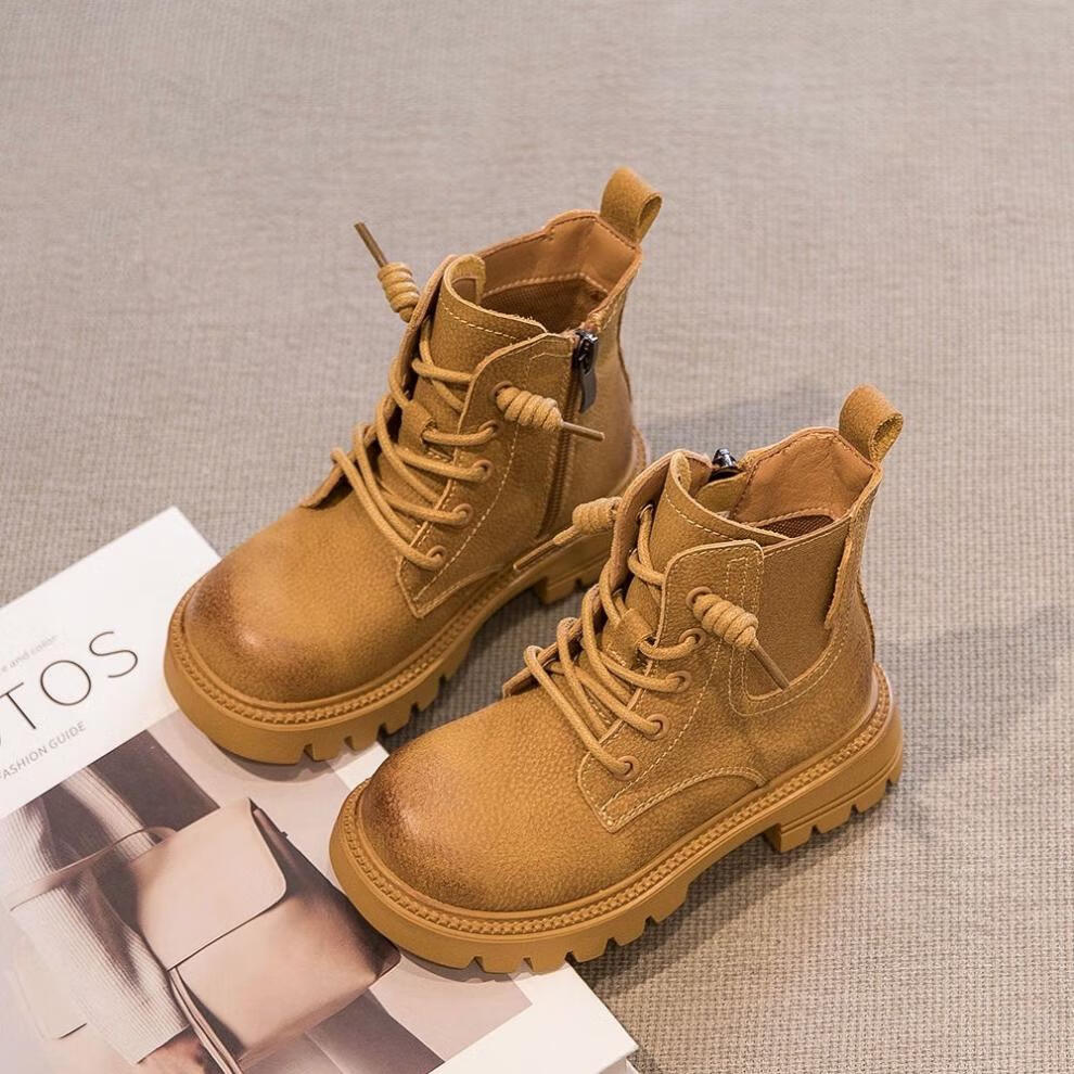 G.duck Little Yellow Duck Genuine Leather Boys' Boots 2024 Spring and Autumn Children's Martin Boots Girls' Short Boots Autumn Boys' Big Yellow Boots Khaki Size 30