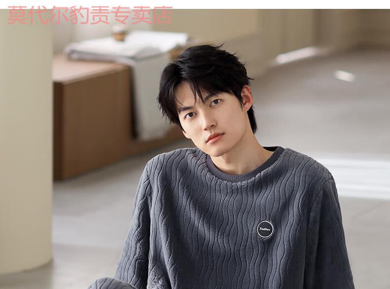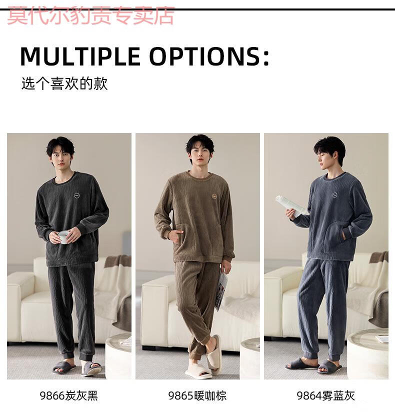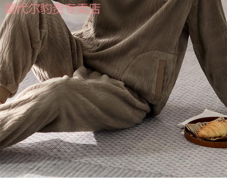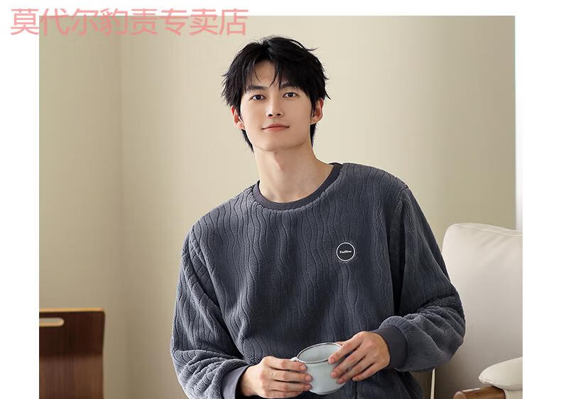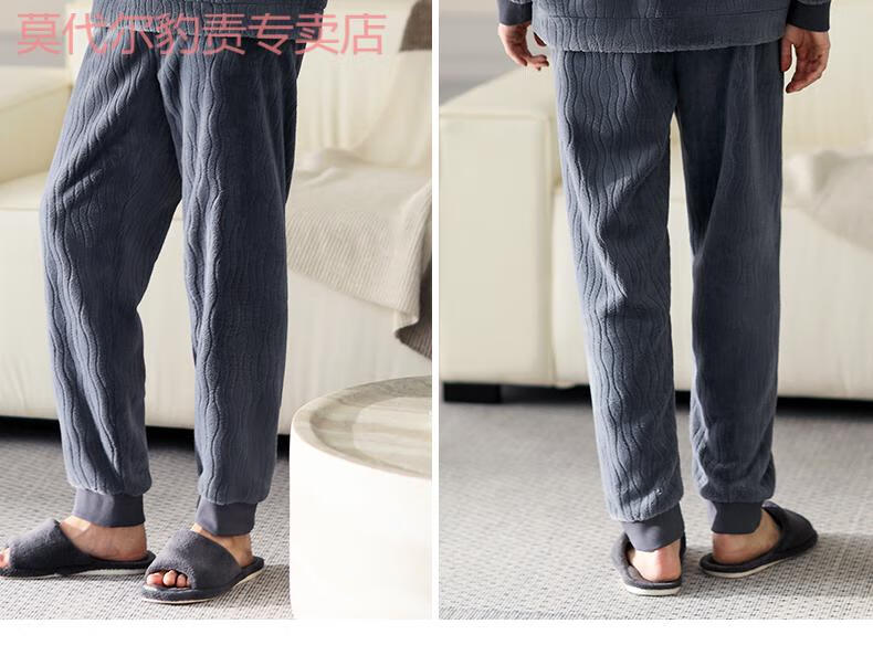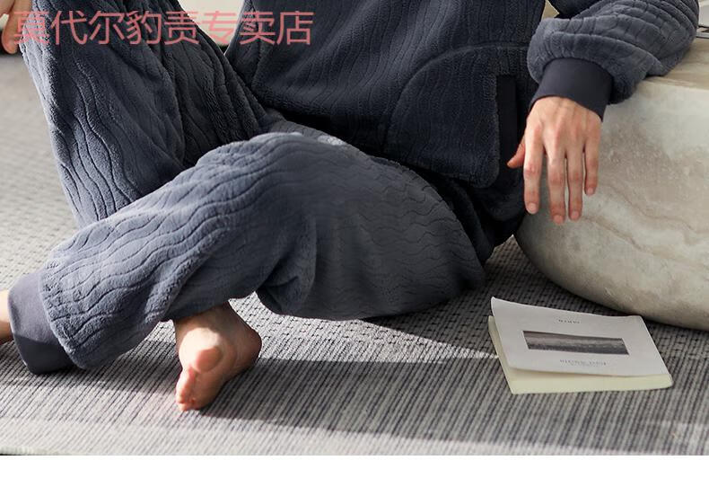 莫代尔睡衣男士冬季珊瑚绒加厚加绒男款秋冬法兰绒可外穿冬款休闲家居服 9864雾蓝灰 M (165)
