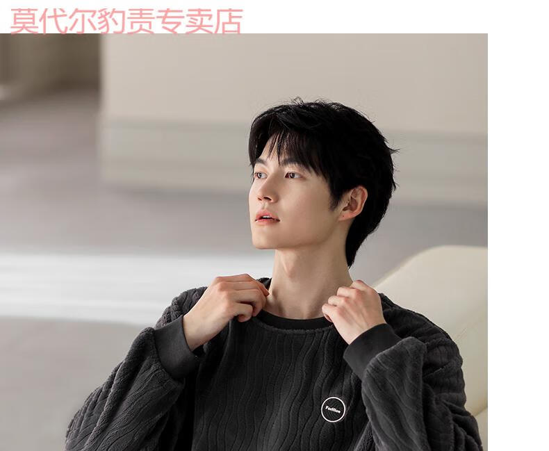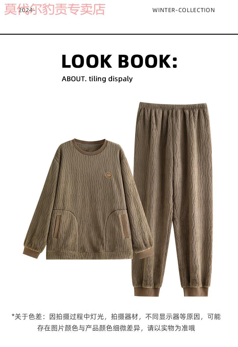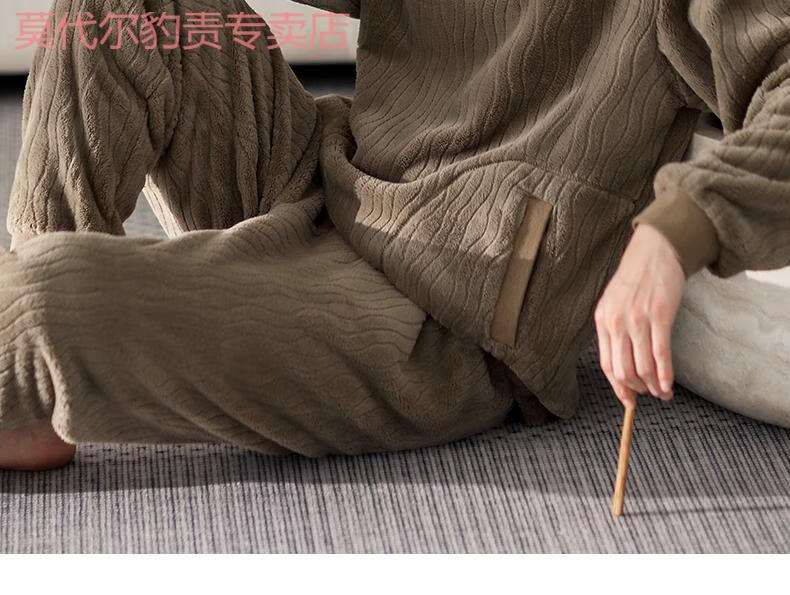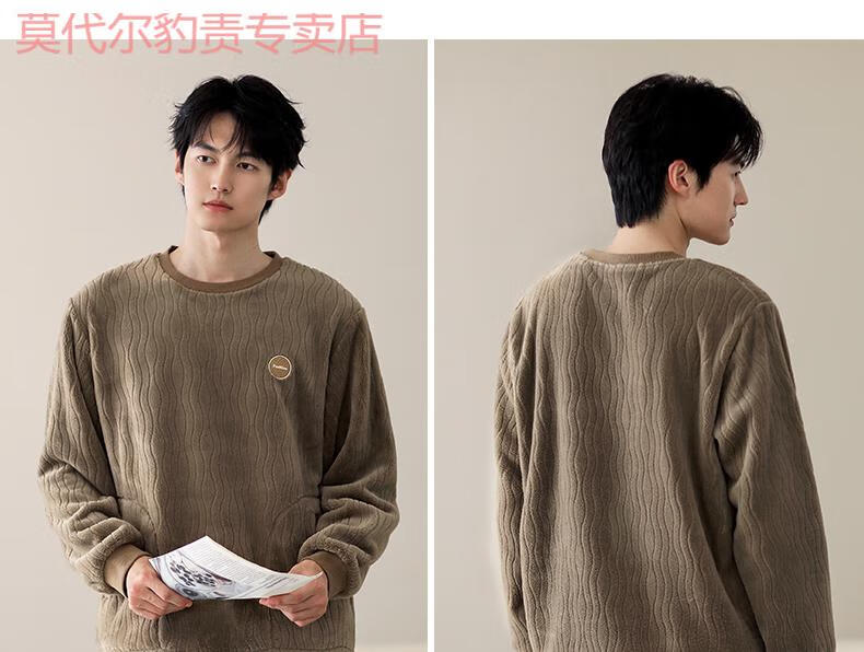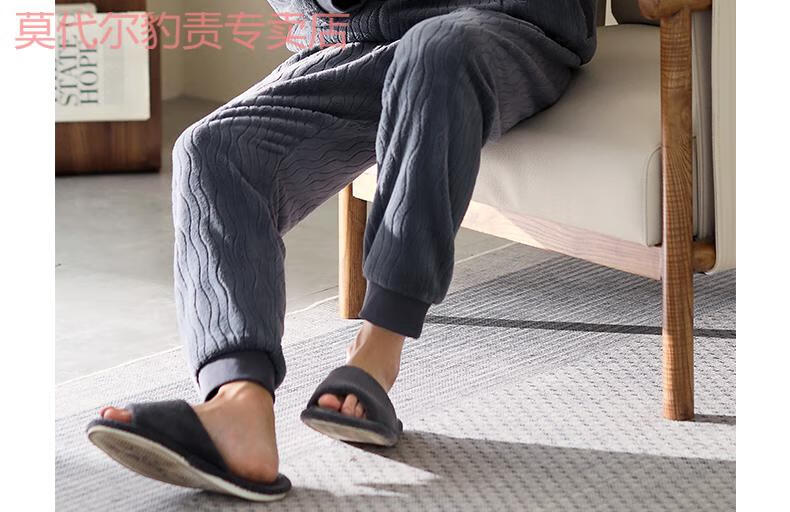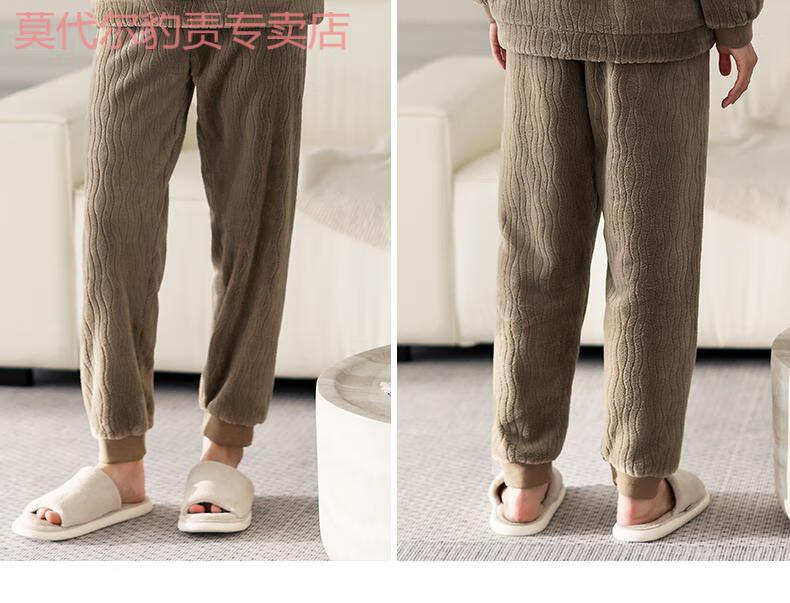 莫代尔睡衣男士冬季珊瑚绒加厚加绒男款秋冬法兰绒可外穿冬款休闲家居服 9864雾蓝灰 M (165)