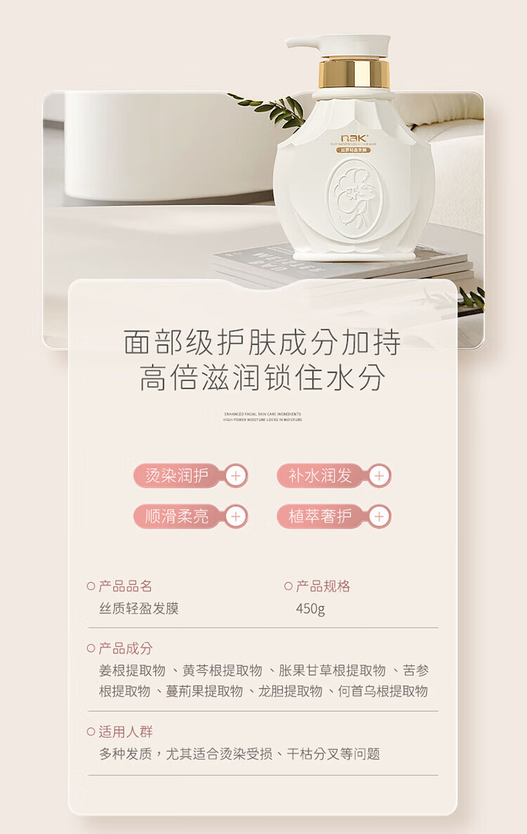 nak丝质轻盈发膜 改善干枯毛躁补水柔顺护发素女士专用留香持久 经典款