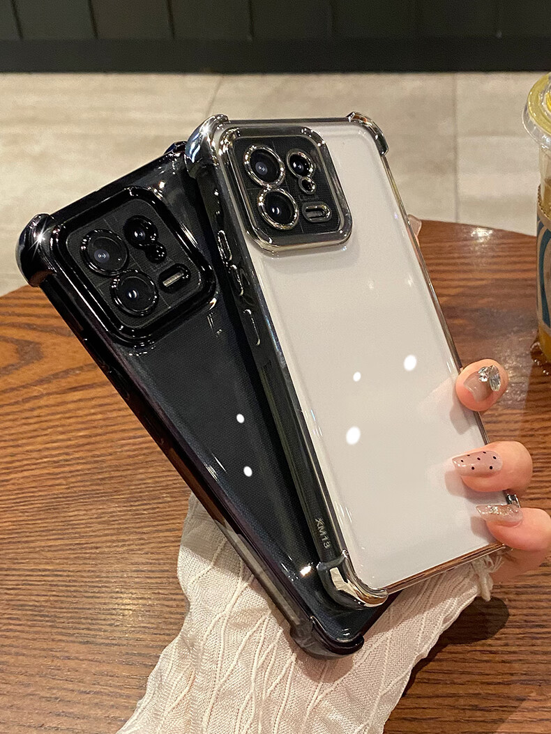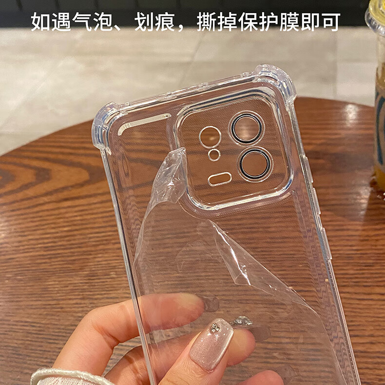 奶小鸭适用小米13手机壳 小米13保护套透明镜头全包超薄气囊防摔耐磨防尘抗指纹简约男女款 带镜头膜【白沙银】气囊防摔丨高透抗氧不黄